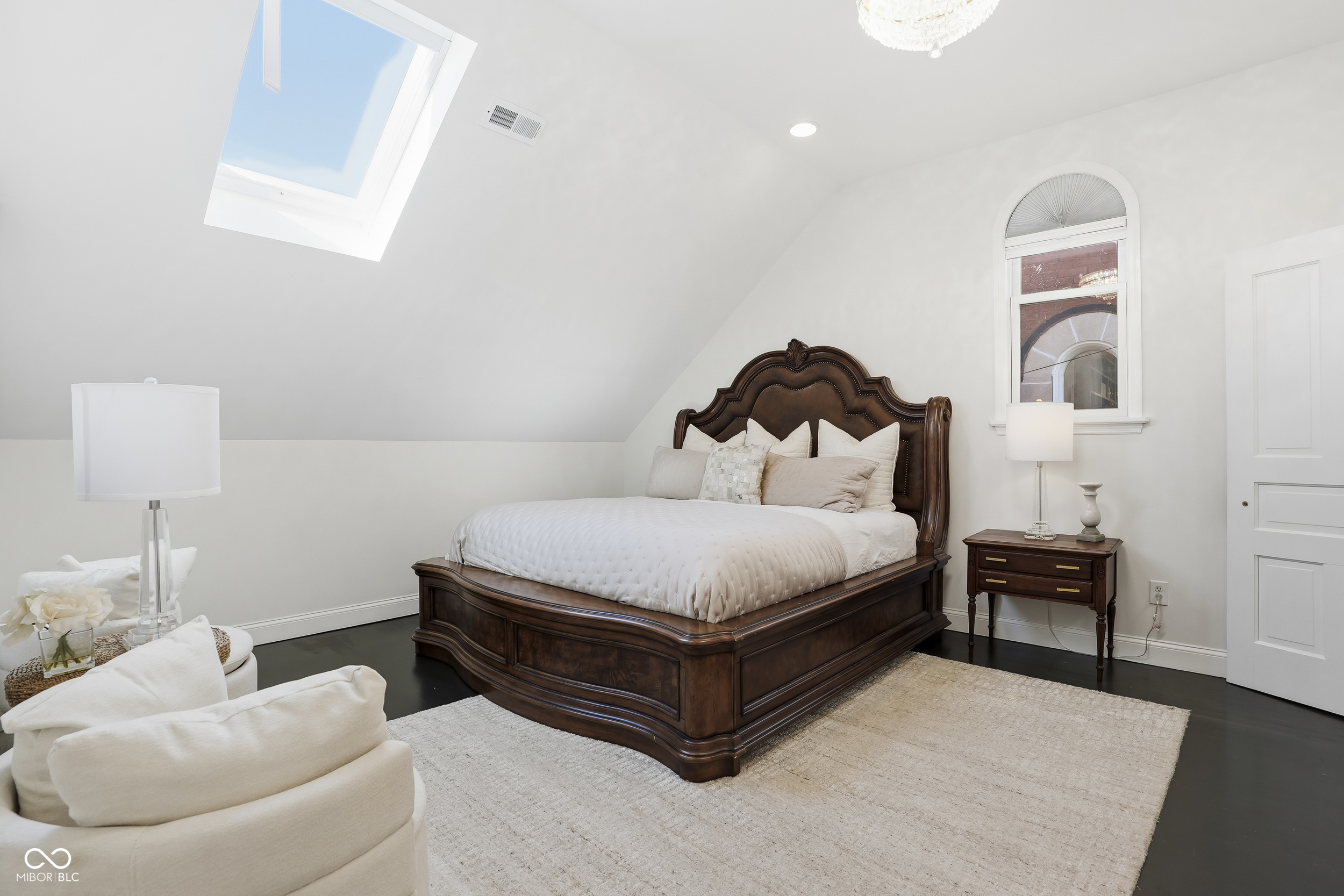 The penthouse at Lockerbie Glove Factory defines sophisticated urban living. The building has the historical significance as the first industrial building converted to residential lofts in Indianapolis. The property retains its historic charm, while the spacious double-sized top-floor residence has recently been enhanced with a modern luxury design. Perched high above the city, the residence offers breathtaking, birds-eye views of Downtown in three directions, highlighted by the iconic skyline from the "ultimate perch"-an extraordinary 800 sq ft private rooftop deck. Light-filled interiors emphasize openness and flow. A spacious great room and kitchen connect seamlessly to expansive outdoor spaces, creating an effortless indoor-outdoor lifestyle perfect for entertaining or everyday living. The recently renovated primary bath is a serene, spa-like retreat. A thoughtfully designed layout with separated living areas provides exceptional privacy and flexibility-ideal for working from home and accommodating returning children or guests. This penthouse is as functional as it is striking. Two interior parking spaces, elevator for your convenience to the secured garage.