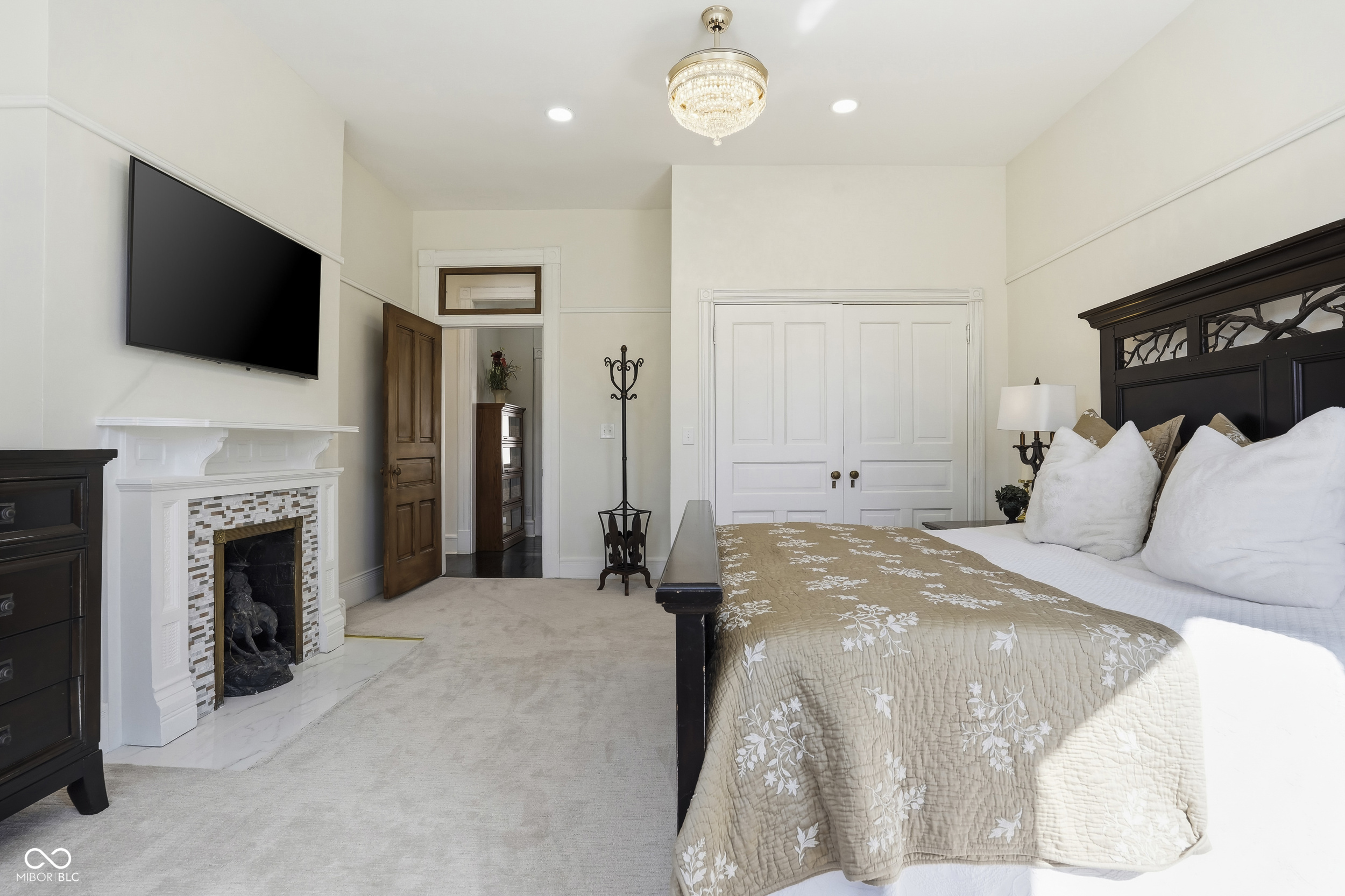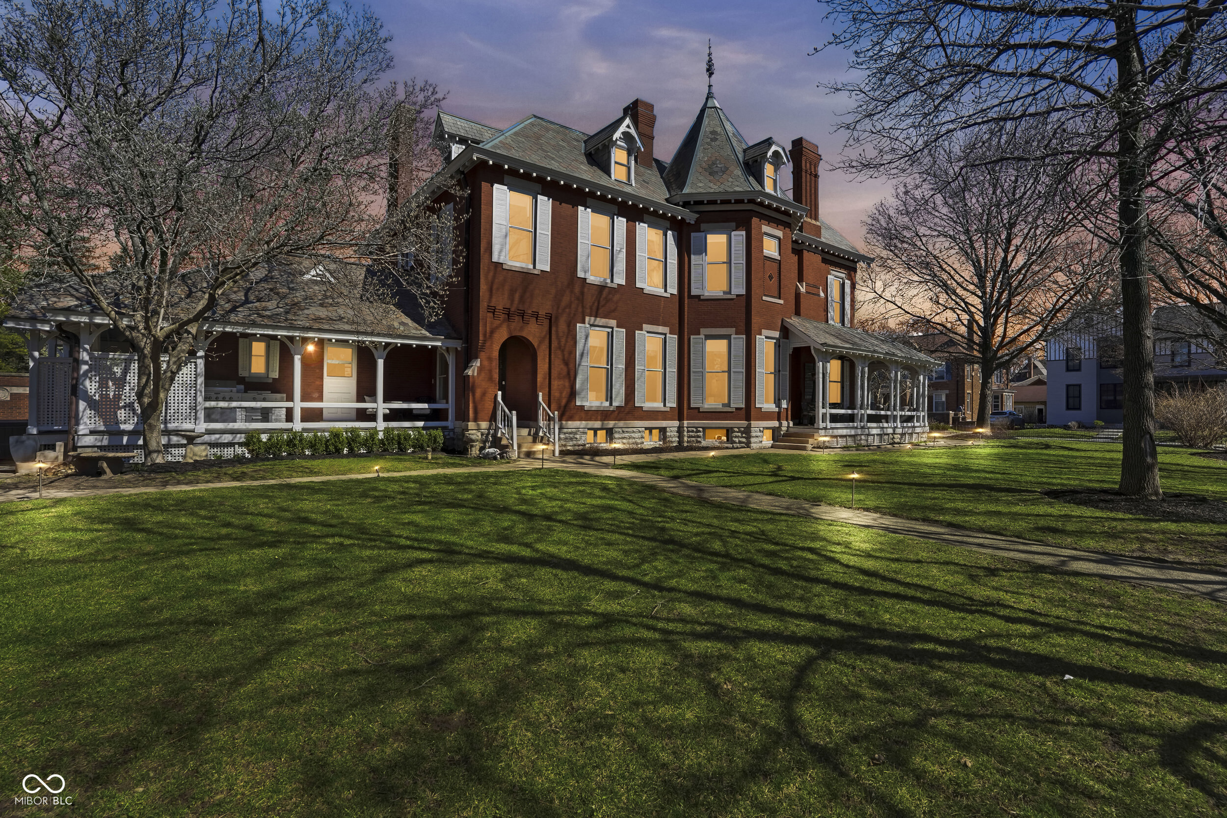 Welcome to the VonHake-Rau house in the historic Old Northside! This completely renovated Queen Anne style home sits on a half-acre lot. Highlights are a main home featuring 4 beds 5 1/2 baths, and elevator, a completely renovated 2100s.f. carriage house that has been converted to a 3 bed 3 full bath two story home w/elevator, and finally, a rare for downtown 4 car garage with an 1,100 s.f. one bed apartment above! As you enter the main home, you'll love the impressive original wooden doors that lead you into the foyer and grand staircase. Den/office to your left with original fireplace and custom built-ins. Two living spaces separated by a cozy 2-sided fireplace offers a great space for entertaining. Original hardwoods and details throughout. The kitchen is light and bright with loads of storage, Dacor S/S commercial grade appliances, and custom finishes. The second floor offers 3 bedrooms, 3 full baths, and laundry room. The 3rd floor is a private retreat w/kitchenette, 2 fireplaces, large custom closets and dual full bathrooms. The wrap-around porch facing the large lush lot with mature trees is another rarity for downtown living. Home also features a back-up generator system. Altogether, this property offers incredible flexibility for multi-generational living, guests, or additional income opportunities. Walkable to Mass Ave, the Cultural Trail, Bottleworks, The Monon, and just an 8 minute drive to the Circle and all downtown offers.