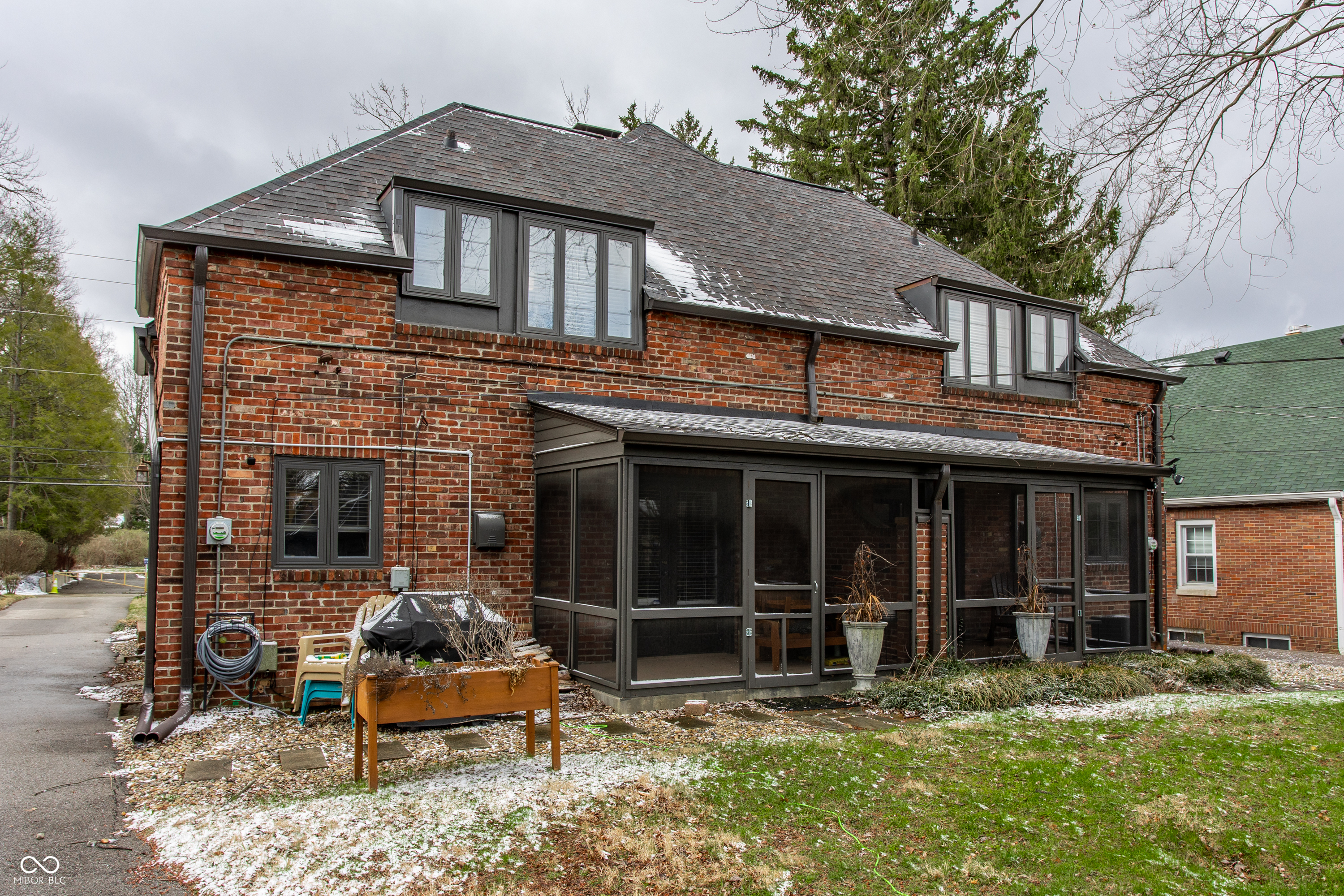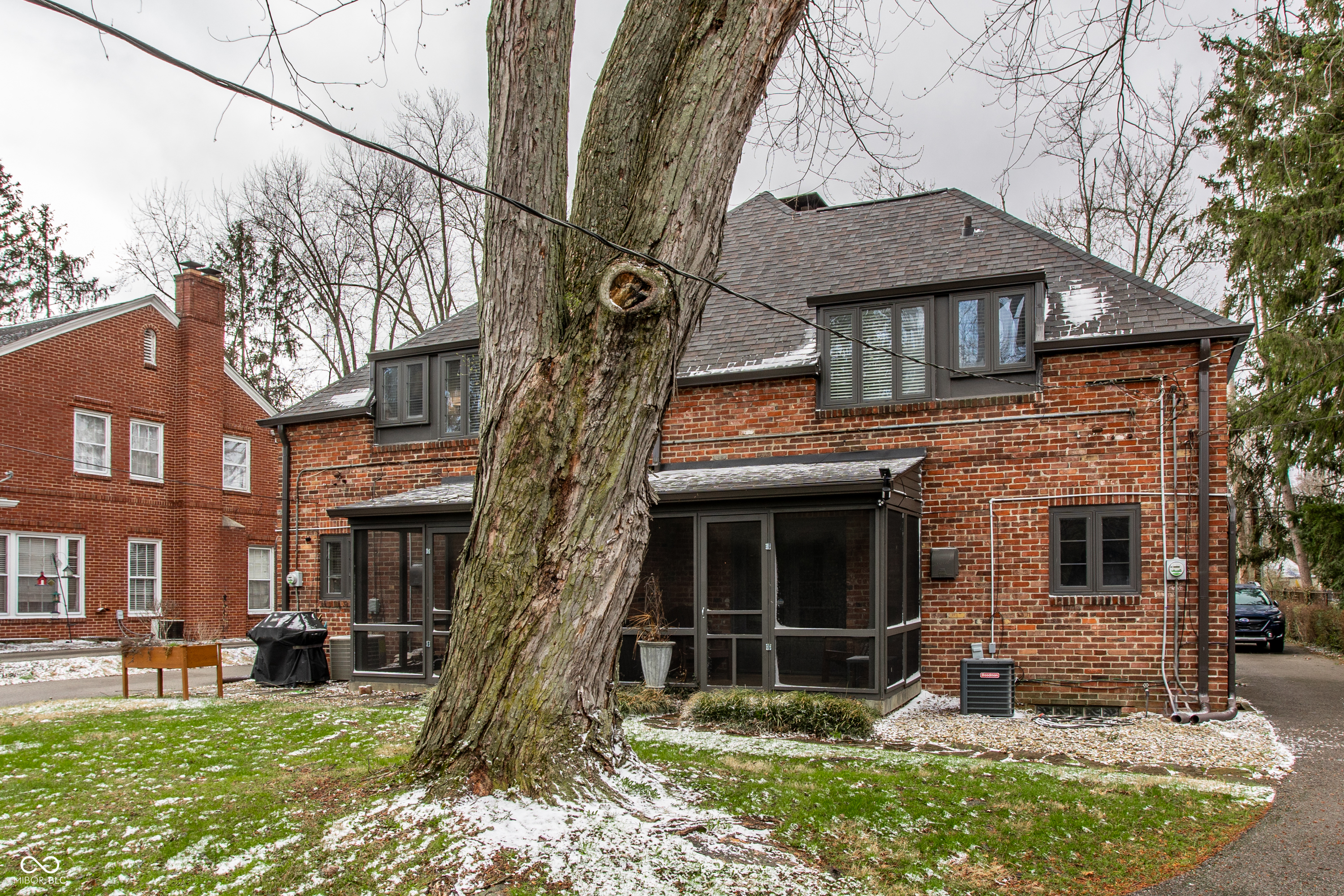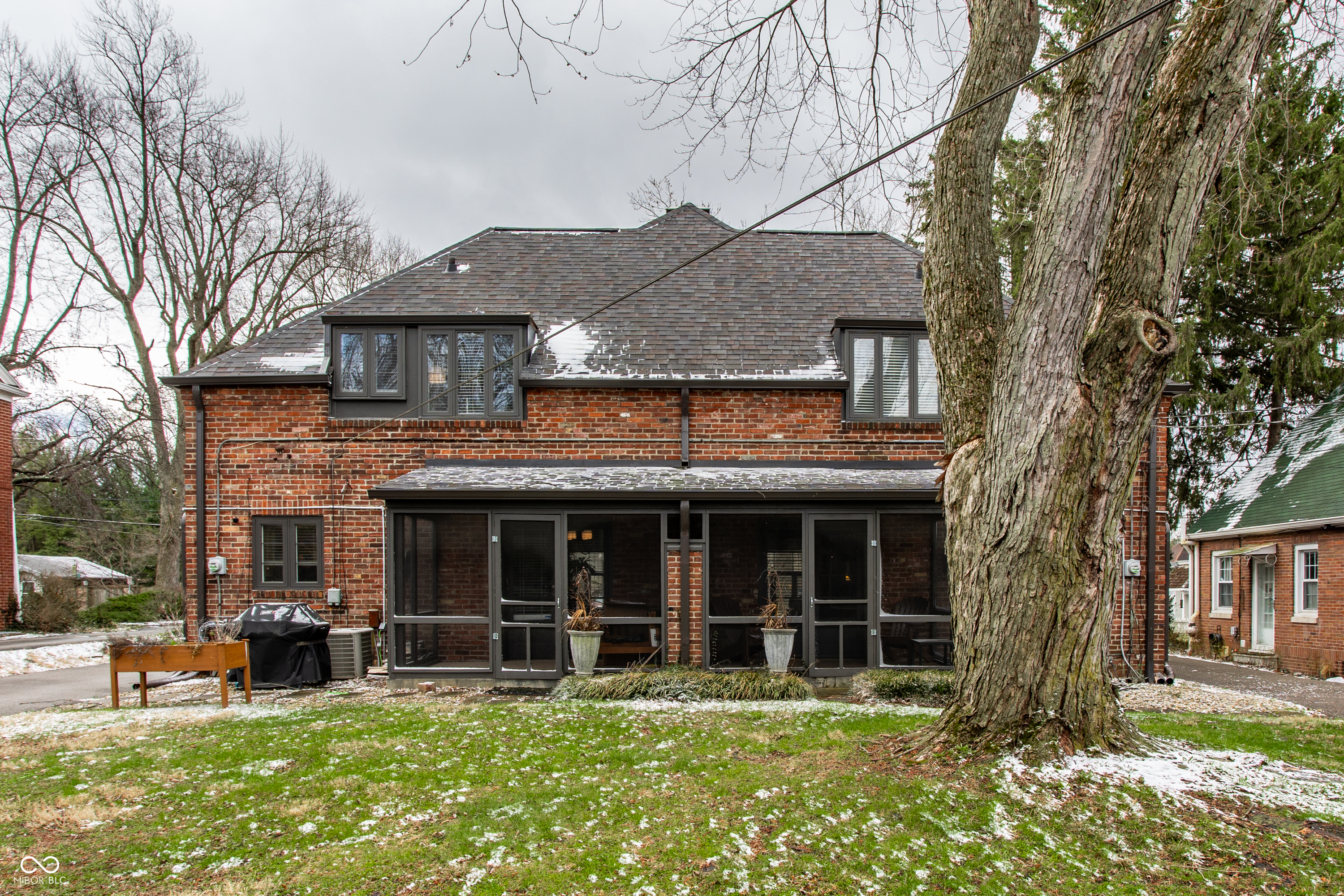 Welcome to timeless Meridian Hills living, where classic 1920s architecture meets modern luxury on nearly half an acre. Step past mature trees and into an inviting home designed for connection, comfort, and elegant entertaining. The sunlit living room with fireplace, beamed family room, and showpiece kitchen with quartz island and bar create the ultimate gathering spaces. Host dinners in the formal dining room or unwind on the screened porch overlooking the lawn. Upstairs, the serene primary suite features a private balcony, custom bath, and personalized walk-in closet. Four additional bedrooms offer endless flexibility for family, guests, or gym. The finished lower level-with daylight windows, full bath, and entertainment bar-delivers year-round fun and retreat. Enjoy organization and convenience from dual laundry chutes, smart security, and a heated 3-car garage with dog/car wash station. Enjoy walkable Meridian Hills with top-rated schools and shopping nearby. Schedule your private tour and experience the rare blend of history, space, and move-in ease-this is the lifestyle you've been searching for.