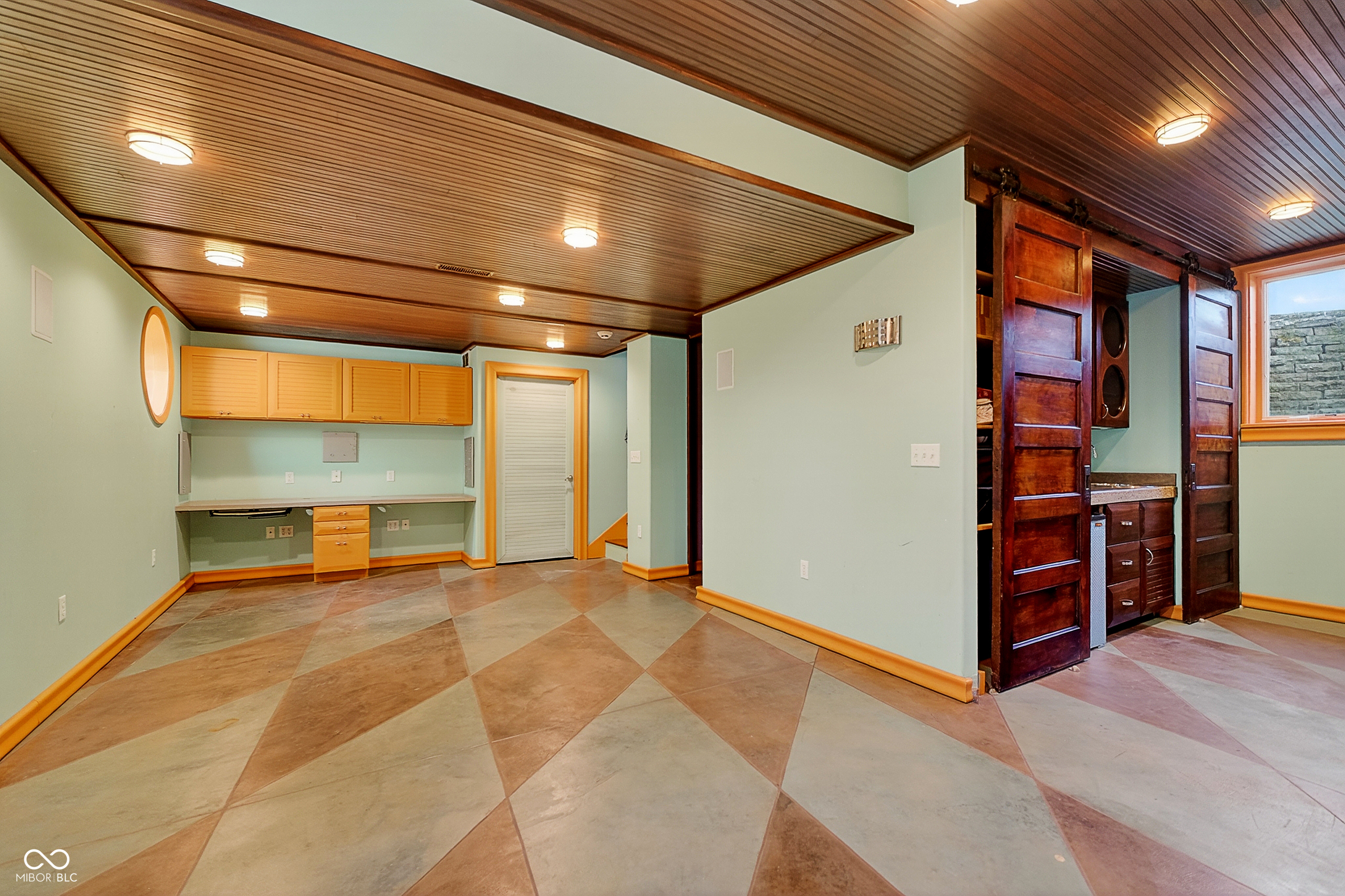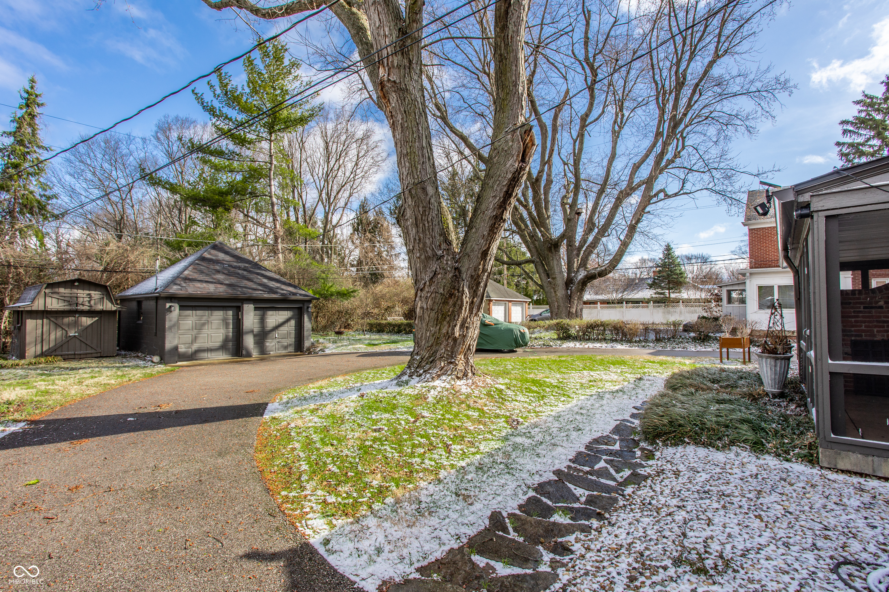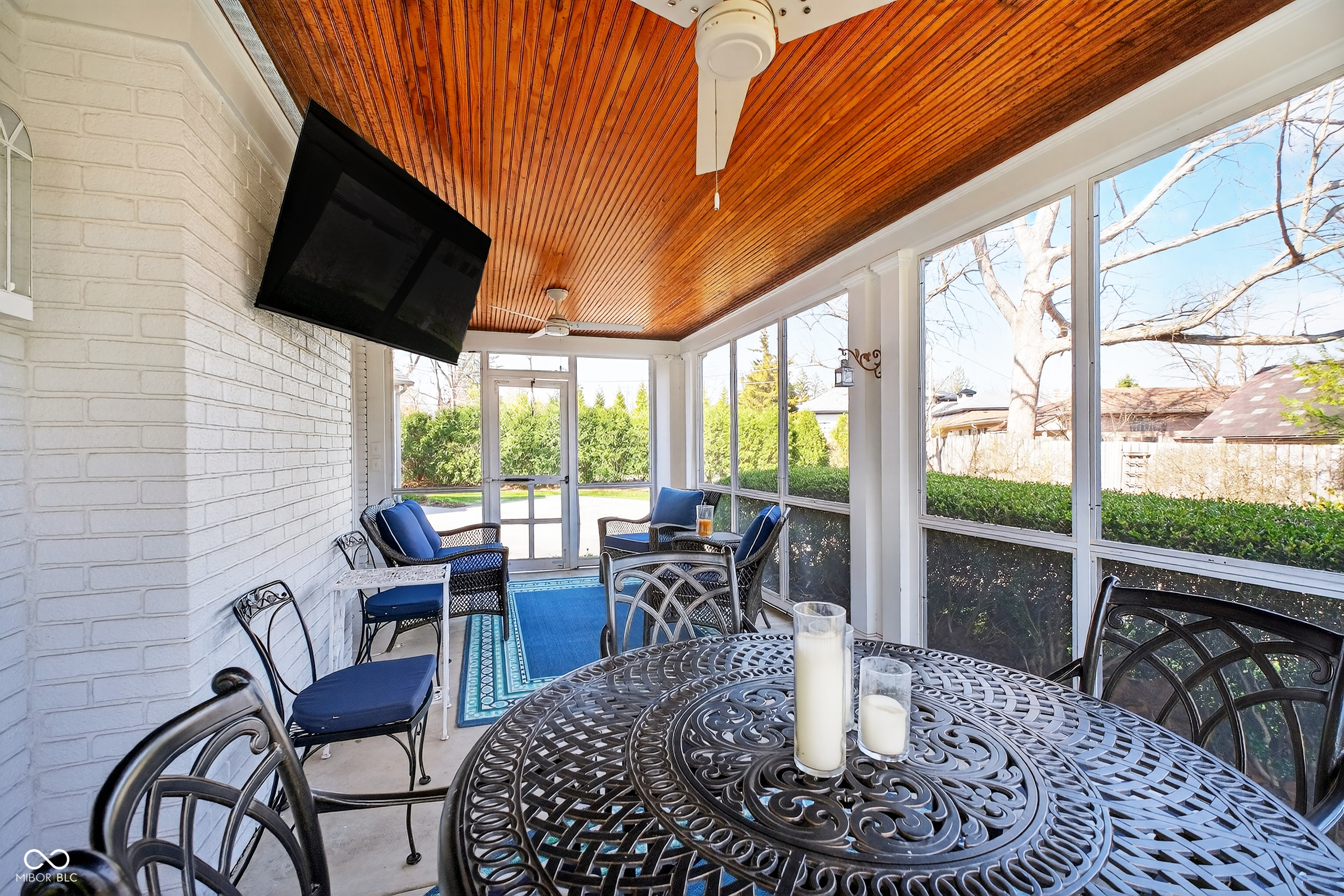 Welcome to timeless Meridian Hills living, where classic 1920s architecture meets modern luxury on nearly half an acre. Step past mature trees and into an inviting home designed for connection, comfort, and elegant entertaining. The sunlit living room with fireplace, beamed family room, and showpiece kitchen with quartz island and bar create the ultimate gathering spaces. Host dinners in the formal dining room or unwind on the screened porch overlooking the lawn. Upstairs, the serene primary suite features a private balcony, custom bath, and personalized walk-in closet. Four additional bedrooms offer endless flexibility for family, guests, or gym. The finished lower level-with daylight windows, full bath, and entertainment bar-delivers year-round fun and retreat. Enjoy organization and convenience from dual laundry chutes, smart security, and a heated 3-car garage with dog/car wash station. Enjoy walkable Meridian Hills with top-rated schools and shopping nearby. Schedule your private tour and experience the rare blend of history, space, and move-in ease-this is the lifestyle you've been searching for.