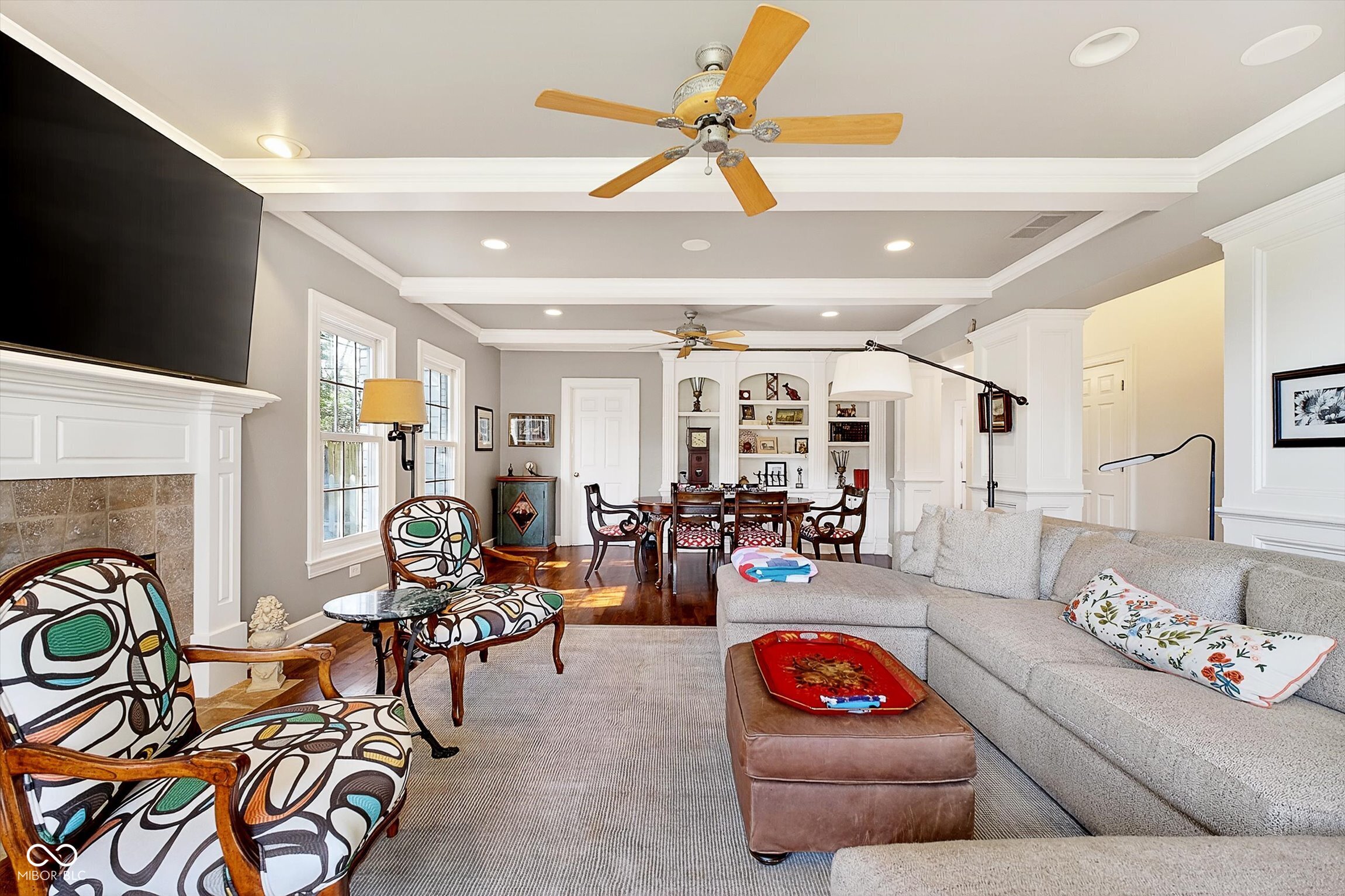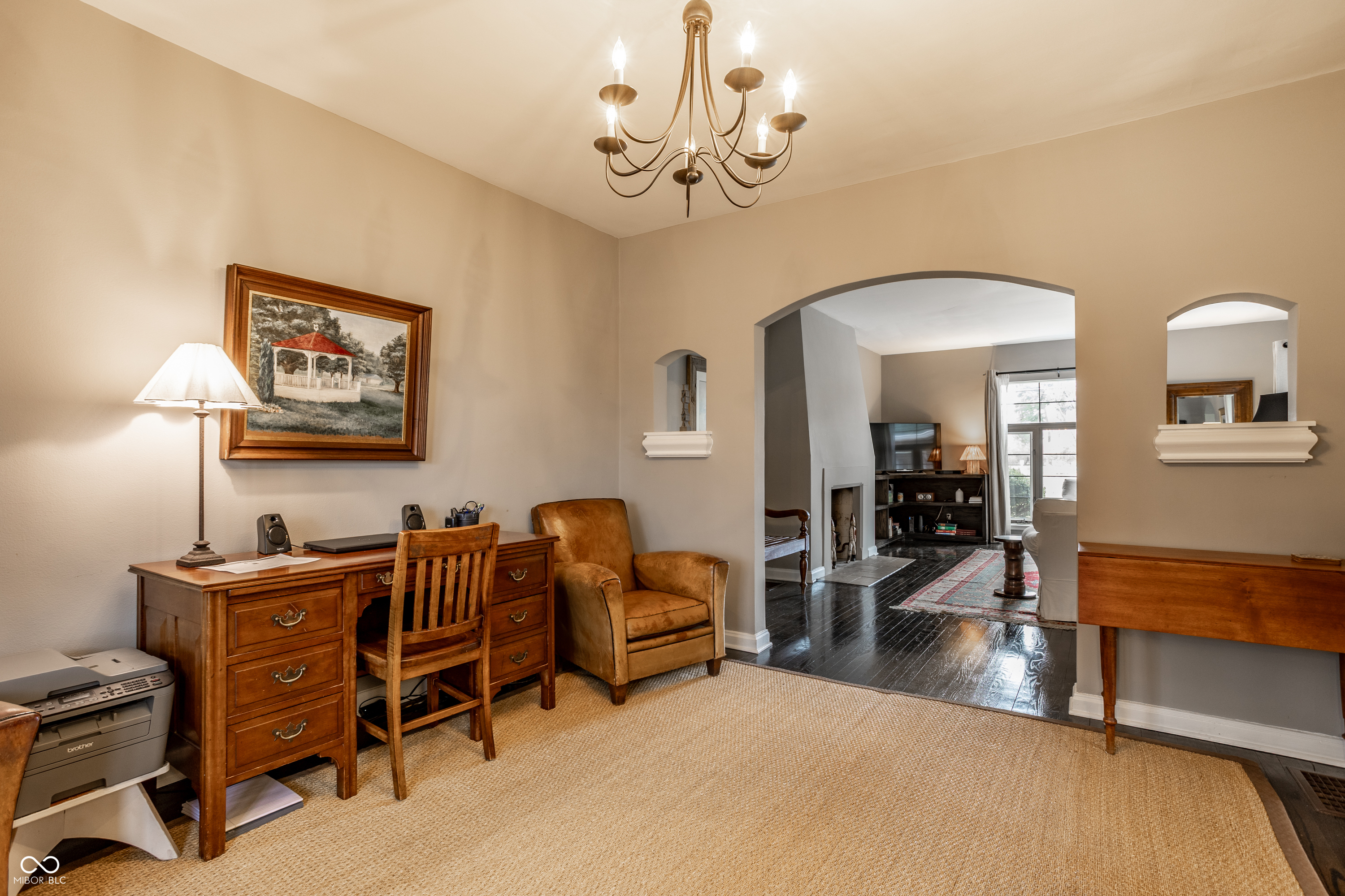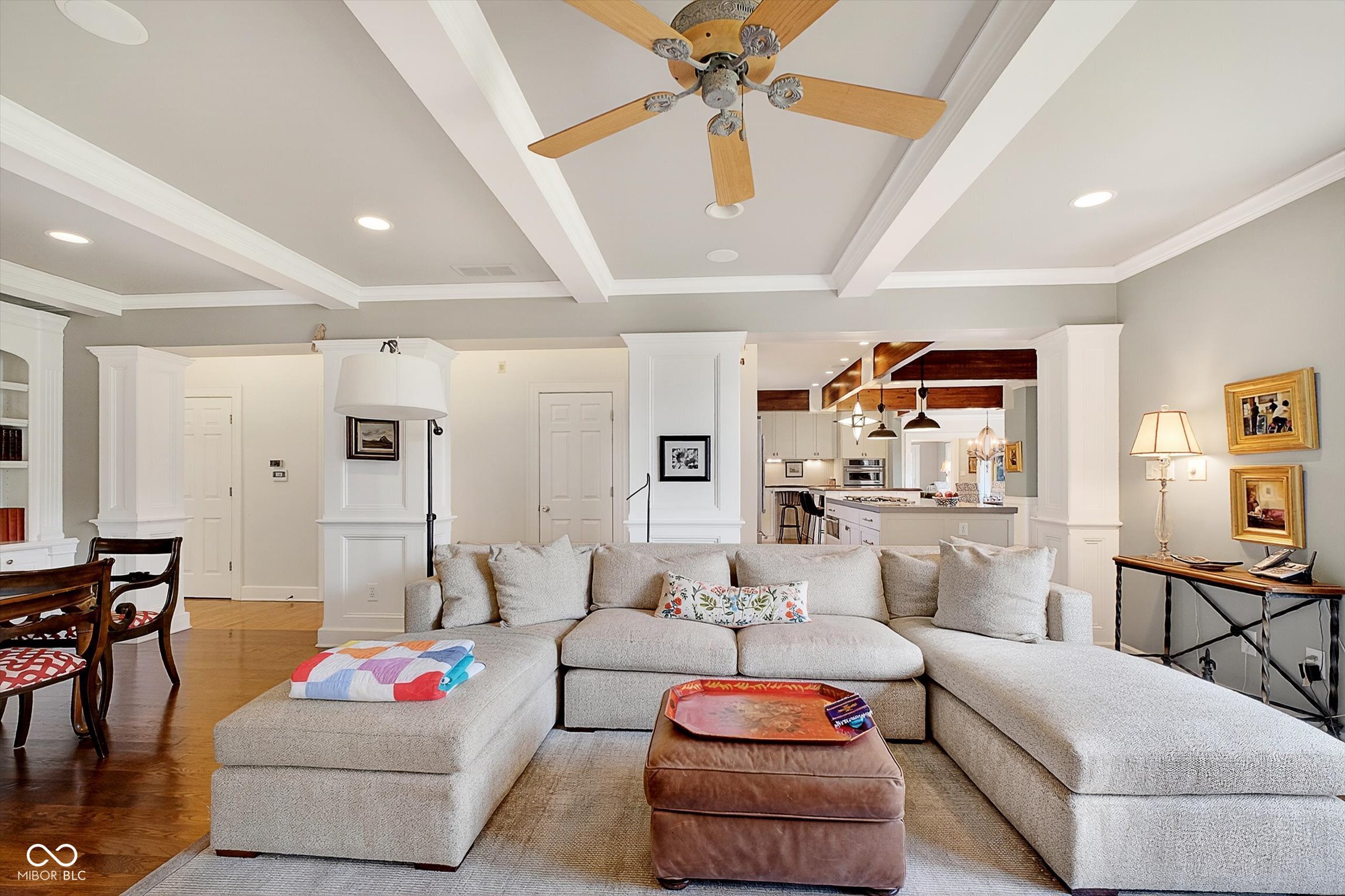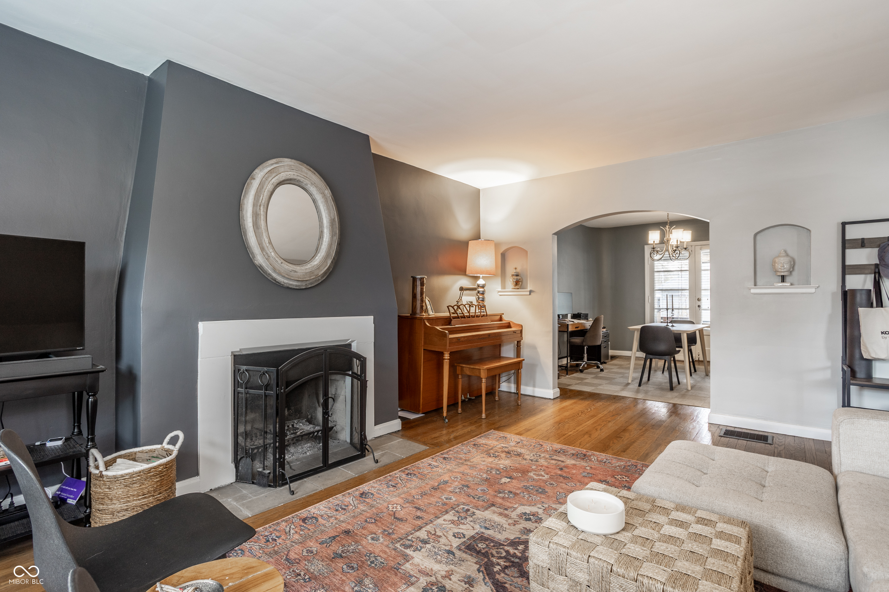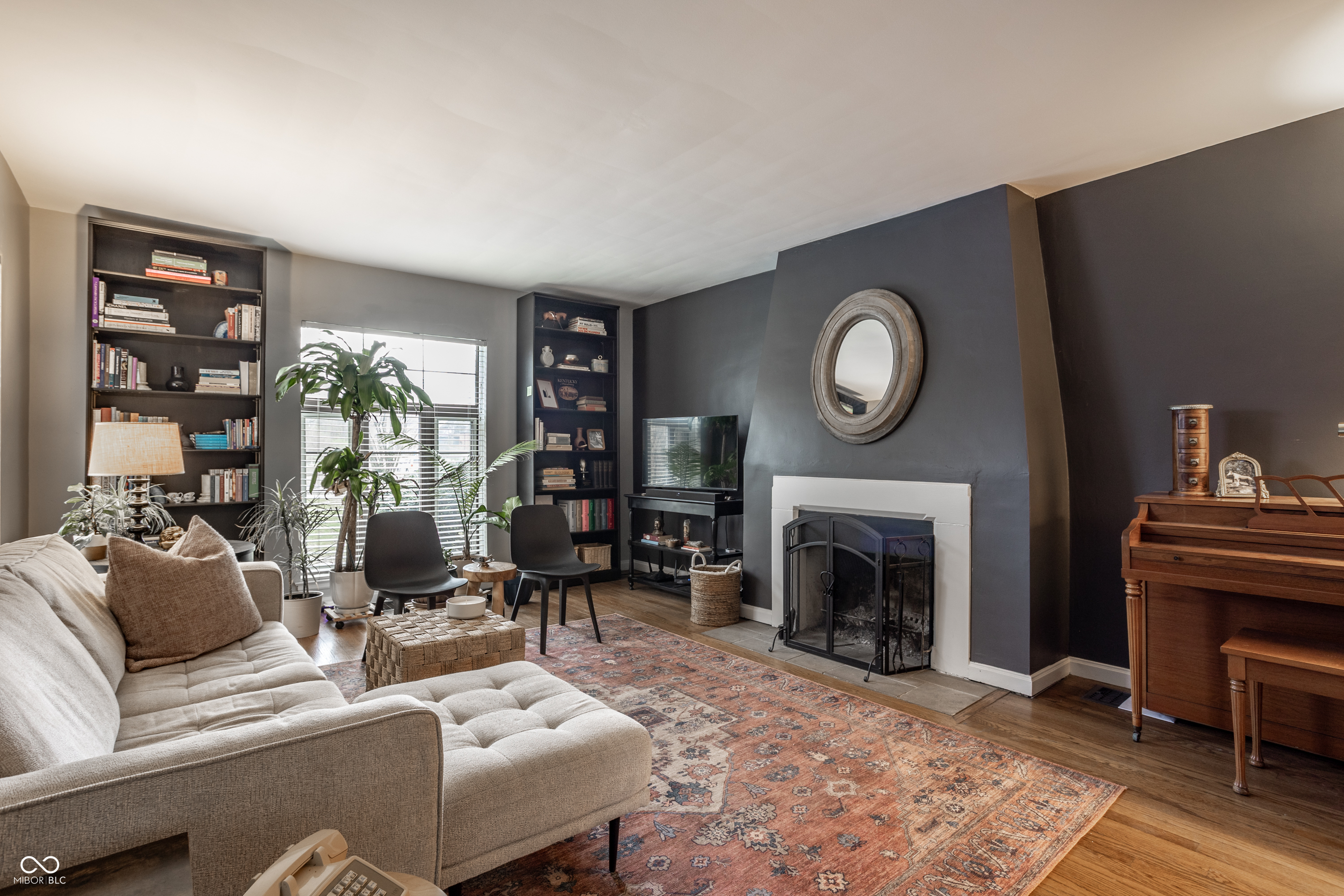 Welcome to timeless Meridian Hills living, where classic 1920s architecture meets modern luxury on nearly half an acre. Step past mature trees and into an inviting home designed for connection, comfort, and elegant entertaining. The sunlit living room with fireplace, beamed family room, and showpiece kitchen with quartz island and bar create the ultimate gathering spaces.