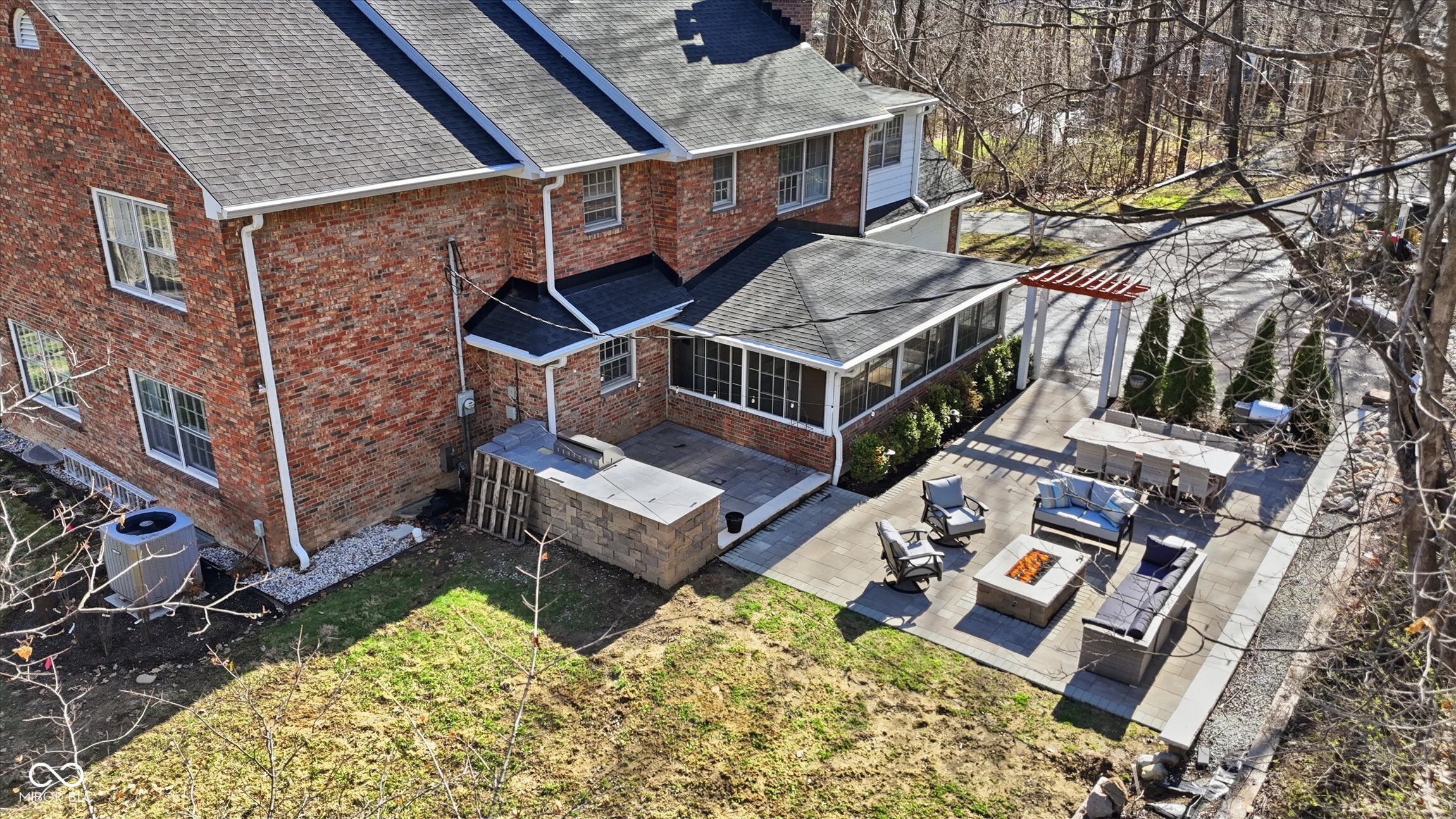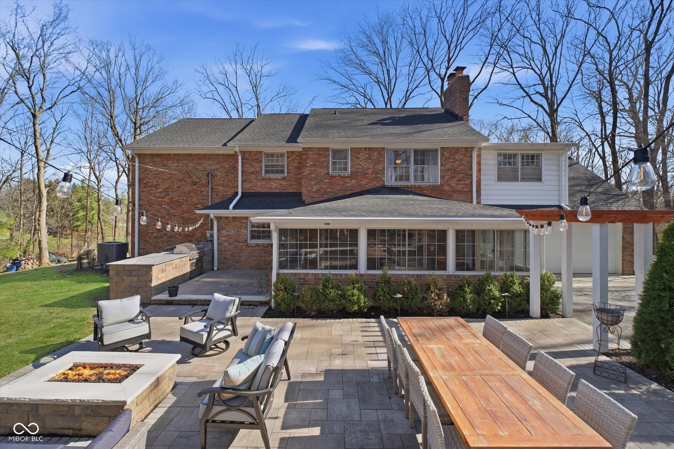 The essence of refined living awaits at 6203 Hillcrest LN in INDIANAPOLIS, an attractive single family residence presented in great condition sitting atop Hillcrest Lane, overlooking Hillcrest Country Club! The heart of the home, a magnificent living room, exudes character with its elegant crown molding and a distinguished wood wall. Thoughtfully designed built-in shelves offer both aesthetic appeal and practical storage, while a captivating fireplace provides a focal point for warmth and gathering. Culinary creativity finds its perfect canvas in the kitchen, featuring wood cabinets and a gas stovetop. A beautiful backsplash adds a touch of artistry, complemented by a generously sized kitchen island and a convenient kitchen bar, creating ideal spaces for both preparation and casual interaction. Four well-appointed bedrooms provide serene personal havens throughout the home. Three full bathrooms and an additional half bathroom ensure comfort and privacy for all occupants. One of these peaceful bedrooms benefits from a private ensuite bathroom, and a thoughtfully designed bathroom showcases a spacious double vanity alongside an inviting tiled shower, and beatuiful dressing room off the primary bedroom. Embracing the splendor of its expansive 1.4 acre lot, this property extends its allure to the outdoors with a charming patio and a bright sunroom. An inviting outdoor living space encourages relaxation and enjoyment, complemented by a delightful fire pit perfect for evening gatherings and a dedicated outdoor dining area along side a built in grill. This impressive two-story residence, with a beautiful finished basement with new carpet and full bathroom adds a designed living area, embodying a timeless appeal. Come enjoy the quiet evenings in the woods, your sport and entertainment needs of neighboring Hillcrest Country club!