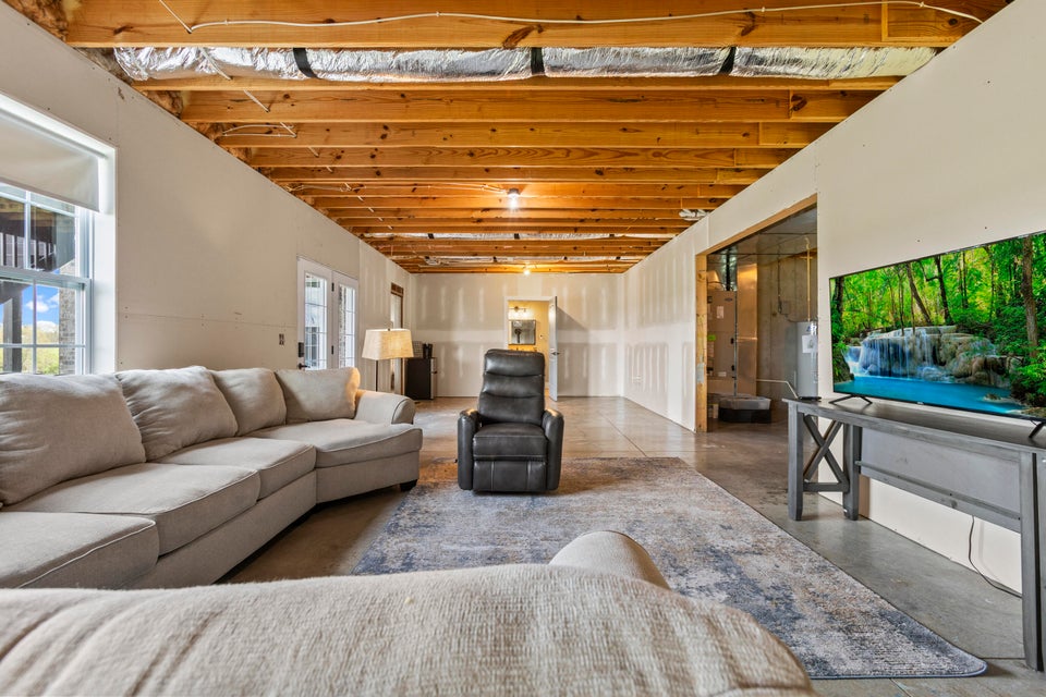 Sellers willing to contribute up to 10,000 towards buyers closing costs or rate buy down with an acceptable offer. Room to Roam with Endless Possibilities! This charming brick ranch, sitting on just over 7 acres (most of which is fenced in), offers the perfect blend of space, comfort, and country charm, just 10 mins south of I-64 Exit 35. Recent updates include geothermal HVAC system for energy savings, Florida-room off the dining area, private hot-tub area, new custom kitchen cabinets and granite countertops, new flooring, and finished walk-out basement to add even more living space. Outdoor grilling area offers a spacious area for entertaining and overlooks the half-acre pond and much of the property. Huge 55X53 tobacco barn has been re-sheeted and newly built 50X50 commercial grade workshop/garage are both ready for whatever you need. Room for horses, gardening, fishing, relaxing or entertaining. Come experience country living in a great location!