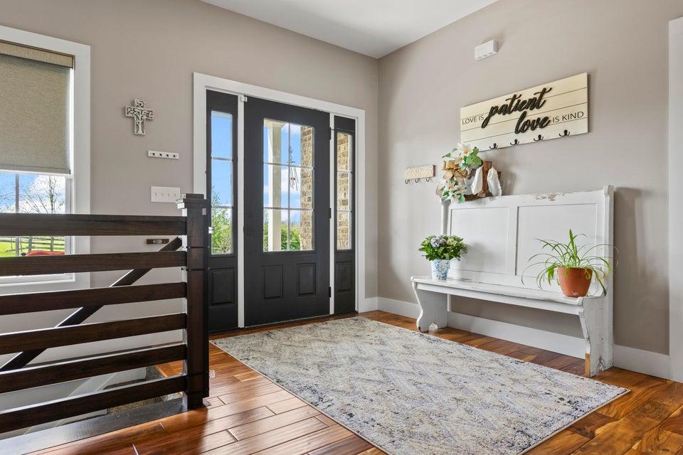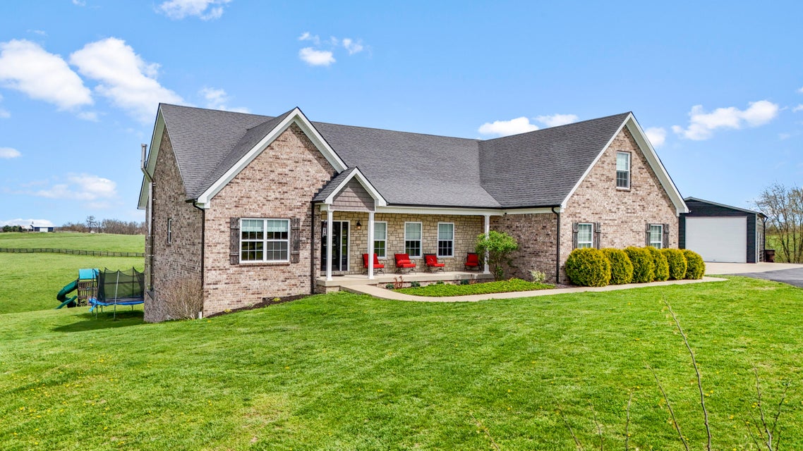 Inspired by timeless Southern architecture and designed from the renowned Palmetto plan by William Poole Designs of Wilmington, North Carolina, this remarkable Georgetown estate blends classic elegance with the peaceful beauty of Kentuckys countryside. Situated on 11.02 scenic acres, the property welcomes you with a long approach and stunning views of rolling farmland before revealing the homes stately double front porches and classic Antebellum design. From the moment you arrive, the welcoming arms brick staircase introduces the homes architecture and setting, creating a sense of quiet sophistication rarely found so close to Lexington and Georgetown. Inside, more than 4,100 square feet of thoughtfully designed living space offers a balance of gracious entertaining areas and comfortable everyday living. A dramatic entry foyer with soaring ceilings and a sweeping staircase immediately sets the tone, while rich hardwood floors, detailed millwork, cased openings, and thoughtfully placed pocket doors add depth, character, and a sense of timeless craftsmanship throughout the main level. The spacious great room features built-in cabinetry and a fireplace, opening beautifully into the heart of the home. The kitchen offers elegant cabinetry, granite countertops, a large center island, double ovens, gas range, and generous eat-in dining space, all designed to make gathering effortless. Large windows frame views of the surrounding countryside and allow natural light to fill the home. The first-floor primary suite provides a private retreat complete with an ensuite bath featuring a soaking tub, separate shower, and walk-in closets. Additional rooms on the main level include a formal dining room ideal for hosting and a dedicated home office overlooking the property. Upstairs, additional bedrooms and baths provide comfortable accommodations for family or guests, while the homes layout ensures both privacy and connection throughout. Outdoor living is just as impressive. Expansive porches and a large rear deck provide the perfect vantage point for enjoying peaceful mornings, sunset views, and the wide-open landscape that surrounds the property. The home also includes over 2,000 square feet of unfinished walk-out basement space, offering endless potential for additional living areas, recreation space, or custom finishes tailored to your needs. Additional highlights include: 4 bedrooms 3 full baths and 2 half baths 3-car garage Hardwood flooring throughout main living areas Zoned heating and cooling Covered porches and outdoor entertaining spaces Private rural setting with sweeping countryside views Located on lovely Craig Lane, just minutes from Georgetown, Lexington, the Kentucky Horse Park, and Keeneland, this property offers the rare opportunity to enjoy the tranquility of country living while remaining convenient to everything Central Kentucky has to offer. Whether relaxing on the porch overlooking the land or entertaining friends and family inside, 208 Craig Lane captures the essence of Kentucky estate living. *Some images may include enhanced or edited elements, including twilight sky enhancements, for marketing purposes.*
