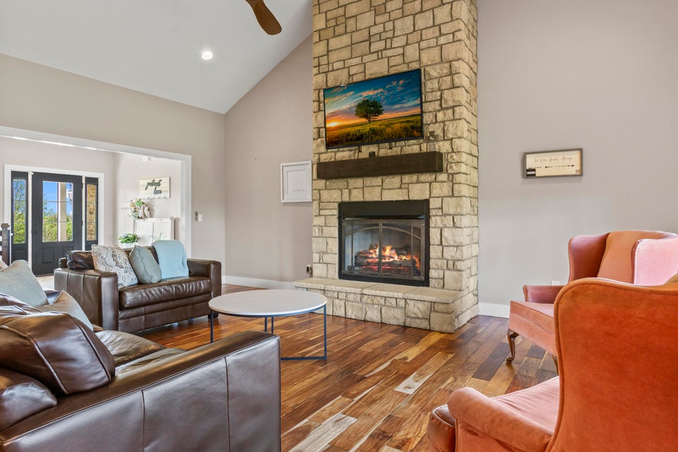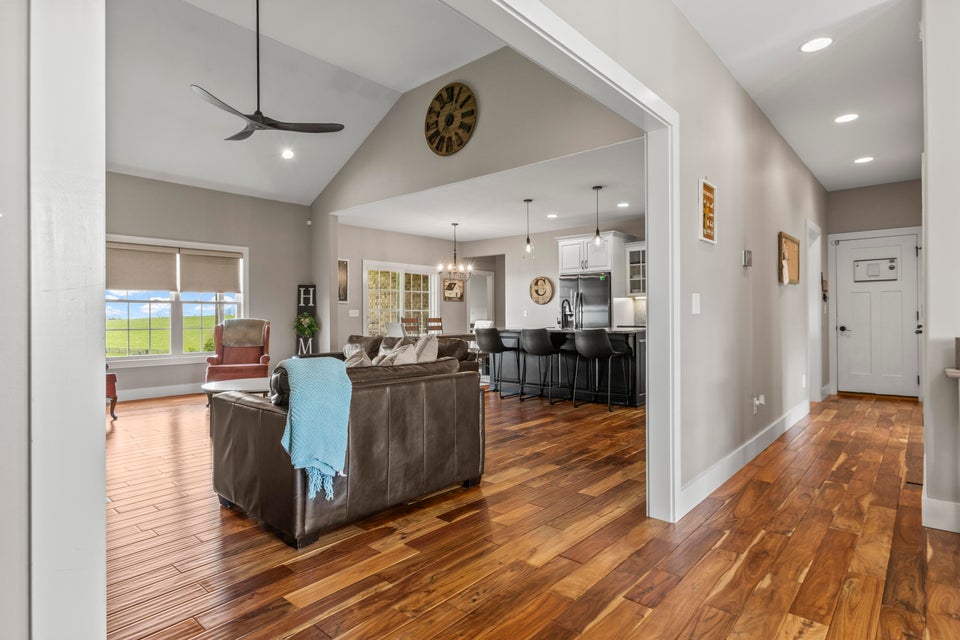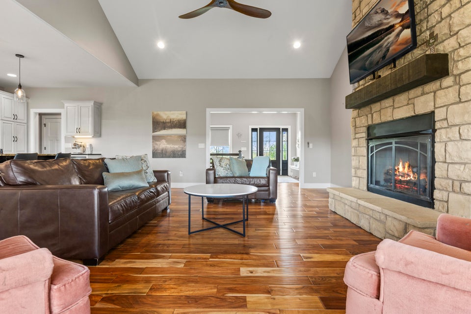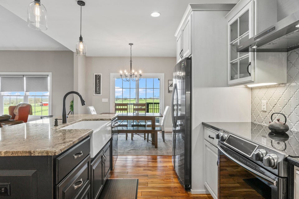 Nestled on just under 10 picturesque acres, this custom-built ranch style home, built in 2018, offers the perfect blend of privacy, space and convenience-located just 10 minutes from downtown. With 5 bedrooms and 5 bathrooms, this thoughtfully designed home provides plenty of room for everyone, including a private en suite bedroom over the garage-ideal for guests, home office or multi-generational living. Large primary en suite privately situated in rear of home, separate from other bedrooms. Large cozy living room with stone fireplace and outstanding views. Gourmet modern kitchen with large island. The lower level provides a partially finished full basement featuring an additional bedroom, full bath, and woodburning stove that is perfect for entertaining, extended stays or extra living space just waiting for your finishing touches. Tons of storage space including a separate emergency shelter room. Outside, find breathtaking views of rolling hills and farmland along with unforgettable sunrises and sunsets that make every day feel like a retreat. Covered front porch and back deck perfect for dining, entertaining or just enjoying the view. Separate from the attached 3-car garage, an additional workshop offers endless possibilities for hobbies, workspace, storage of boats or other recreational vehicles. Pond on property that can be filled if desired. If youve been searching for peaceful country living without sacrificing proximity to town, this one truly checks every box!