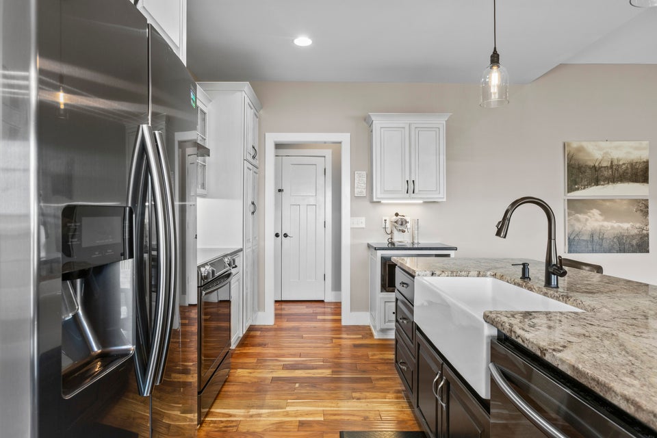 Welcome to your completely remodeled dream home in the highly desired Copperfield neighborhood of Middletown. This stunning property blends modern design with timeless craftsmanship, offering 4 spacious bedrooms, 3.5 full designer bathrooms, and an abundance of custom finishes throughout. Step inside to find engineered hardwood floors flowing seamlessly across the main and upper levels, creating an elegant yet inviting atmosphere. The formal dining room and open-concept living area lead you into a custom-crafted kitchen designed to impress, featuring two-tone cabinetry, quartz countertops, a marble backsplash, and a custom-built range hood. The kitchen includes both gas and electric stove connections, giving you flexibility to suit your cooking style. Every bathroom showcases custom cabinetry, quartz vanities, and premium fixtures, reflecting an unmatched attention to detail. The finished basement expands your living space with a large family room, a third full bathroom, and a second full kitchen complete with granite countertops, perfect for entertaining or accommodating multi-generational living. The oversized two-car garage conveniently connects to the basement for easy access. Step outside to your extended custom deck, overlooking a private wooded backdrop, an ideal retreat for relaxation or gatherings. This home has been professionally waterproofed and upgraded throughout to provide peace of mind and luxury comfort for years to come. From the statement chandeliers to the custom iron stair spindles, every element has been thoughtfully curated. Located in the desirable Copperfield community, which offers amenities such as a swimming pool, kids swim team, tennis courts, and clubhouse. This home truly has it all, luxury redefined. Schedule your private showing today, you wont regret it!