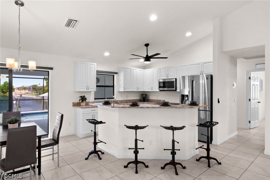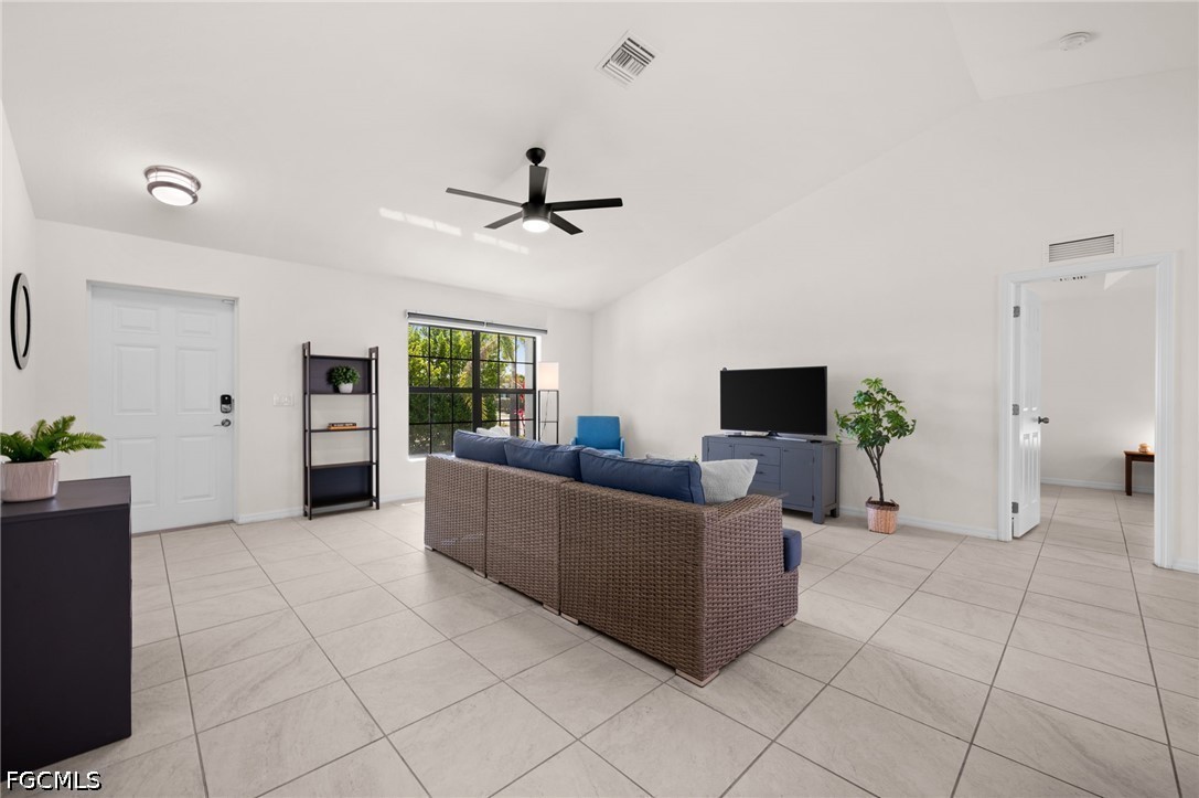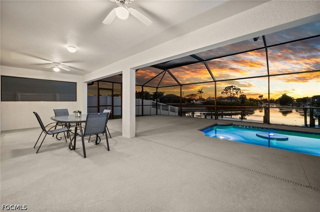 (NO FLOOD INSURANCE REQUIRED!!) Successful Rental Property!! SMART HOME / Indirect Gulf Access -- Heated saltwater pool home in prime SW Cape Coral, offering luxury comfort, water views, smart phone-controlled thermostat, front door lock, irrigation, A/C - heat, pool heater and home security cameras. This 4-bedroom, 2-bath home sits on an indirect gulf access canal lot with a completely fenced yard (new), composite dock (new), and a beautiful canal view. Inside, youll find designer tile flooring, upgraded quartz countertops, and an open concept layout that connects the kitchen, dining, and living areas—great for both daily living and entertaining. The kitchen features a large island, ample cabinetry, pantry, and high-end appliances, with plenty of prep and storage space. The owners suite is a private retreat with sliding doors to the lanai, his-and-hers closets, and an ensuite bath with separate shower and soaking tub. The split-bedroom floor plan vaulted and tray ceilings, and 4th bedroom/flex space add to the homes functionality and comfort. Step outside to an inviting screened lanai and expansive heated saltwater pool (new heater 2024) perfect for sunrise coffee and all-day enjoyment. The property is equipped with hurricane impact windows and doors, automatic irrigation, an attached two-car garage, and brick paver driveway. With a Gulf access canal, no flood insurance required, and a strong list of features, this SW Cape Coral home delivers an exceptional opportunity for boaters and buyers seeking a luxury Florida lifestyle. Whether youre looking for a full-time home, vacation getaway, or an investment property, this one delivers the Southwest Florida lifestyle youve been searching for. Any assessments pending will be paid by seller at closing. This is a successful income producing property!