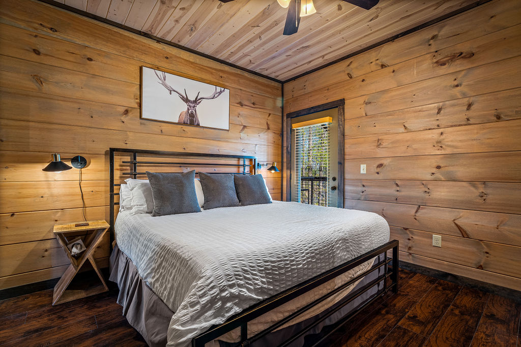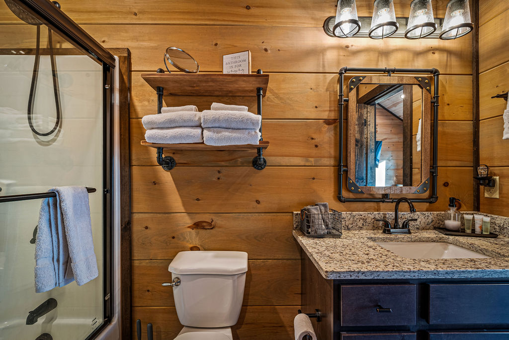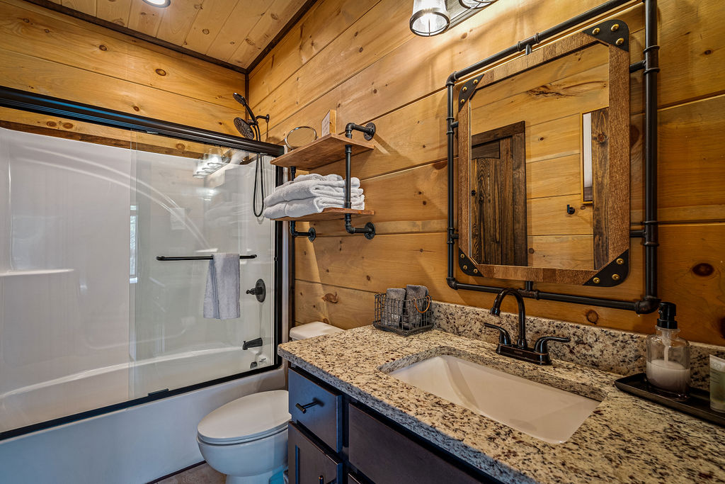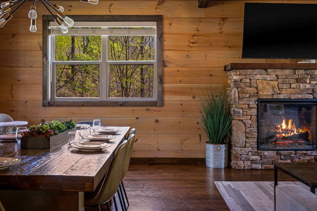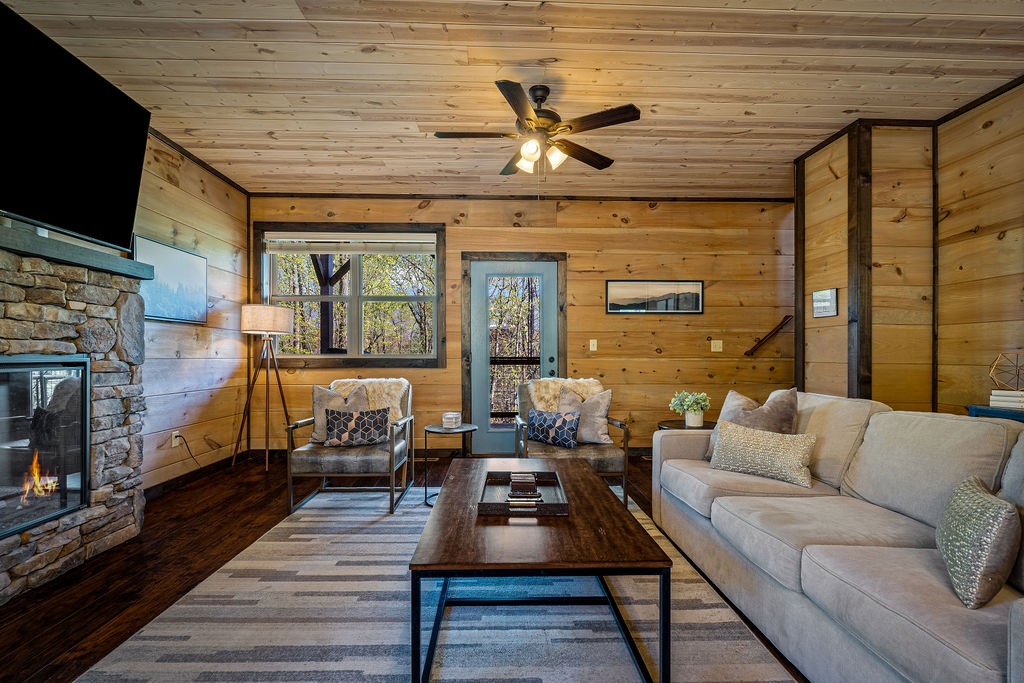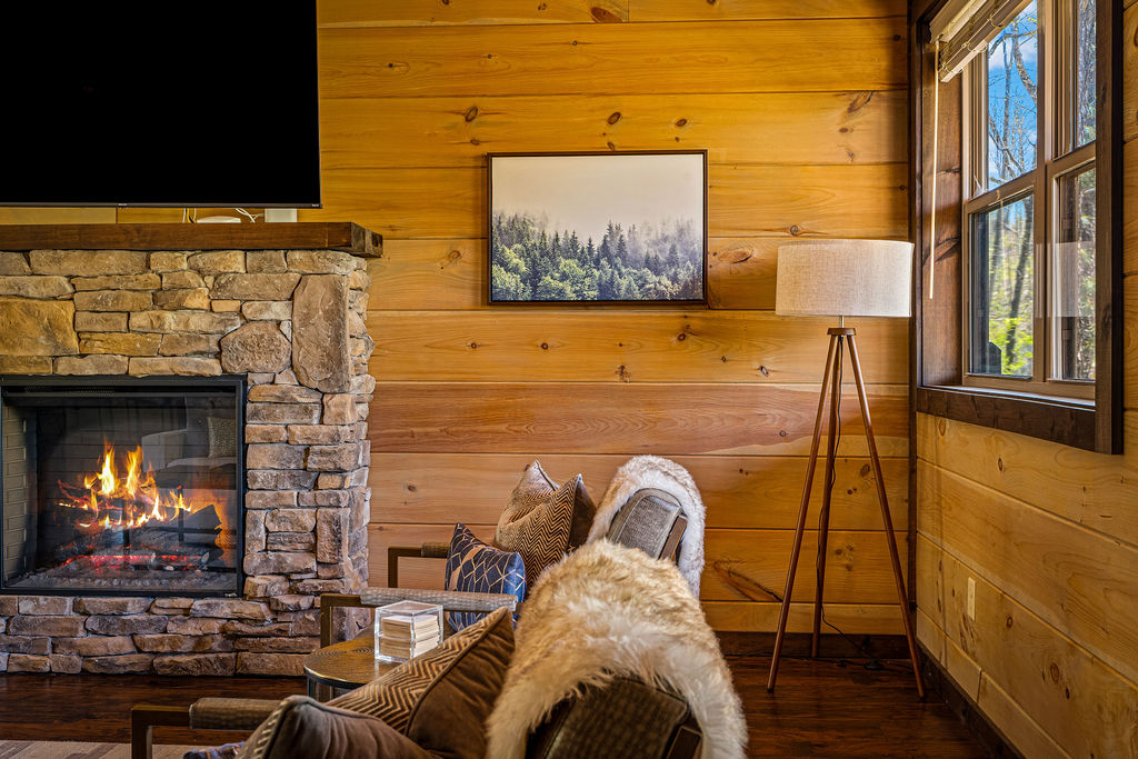 True Smoky Mountain character in one well-executed package. This 3-bedroom, 3-bath cabin delivers space, function and style The main level is anchored by a vaulted great room with a gas fireplace, big windows, open kitchen, large dining area and views of the Smokies. A spacious main-level primary suite features vaulted ceilings, a jetted tub, on-suite bath and deck access.