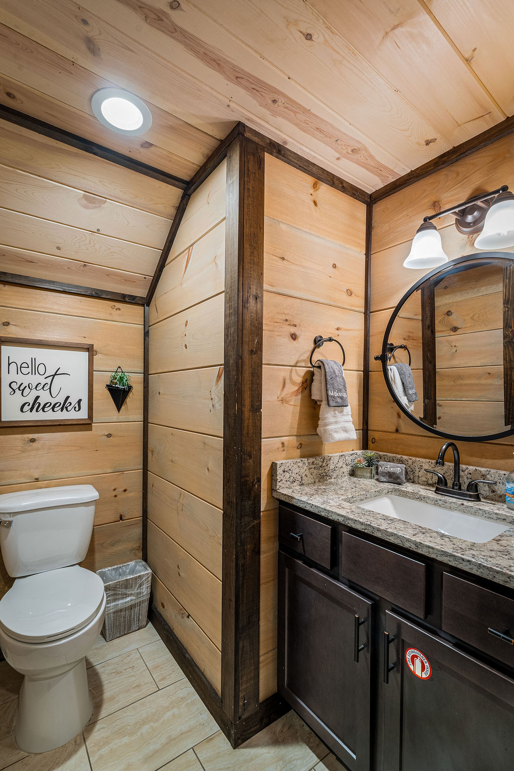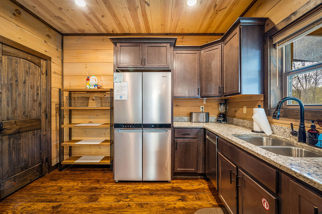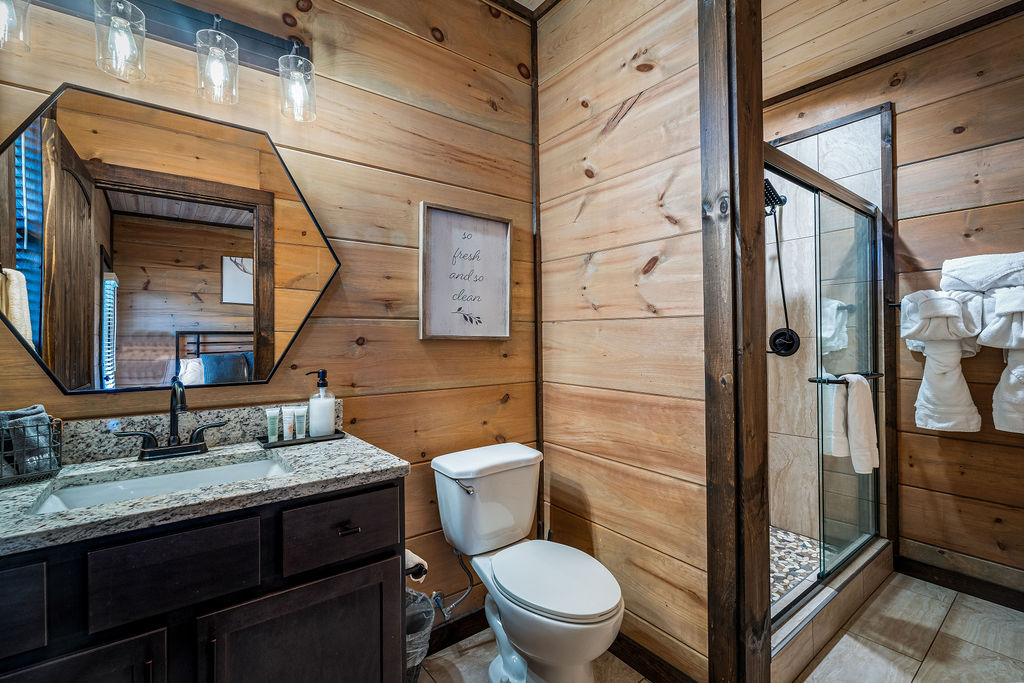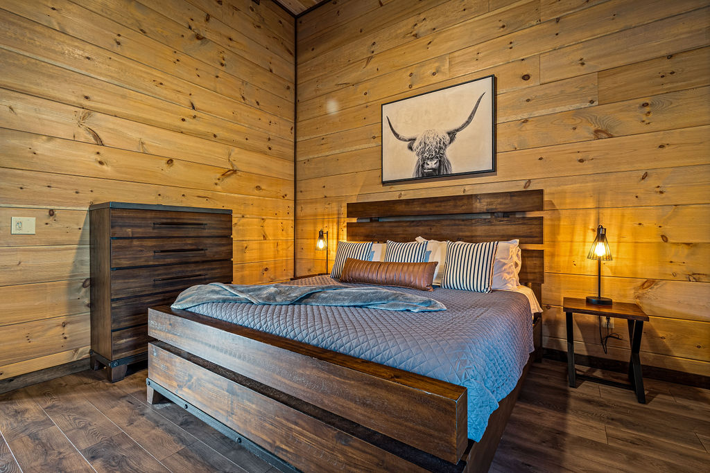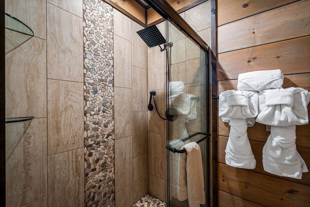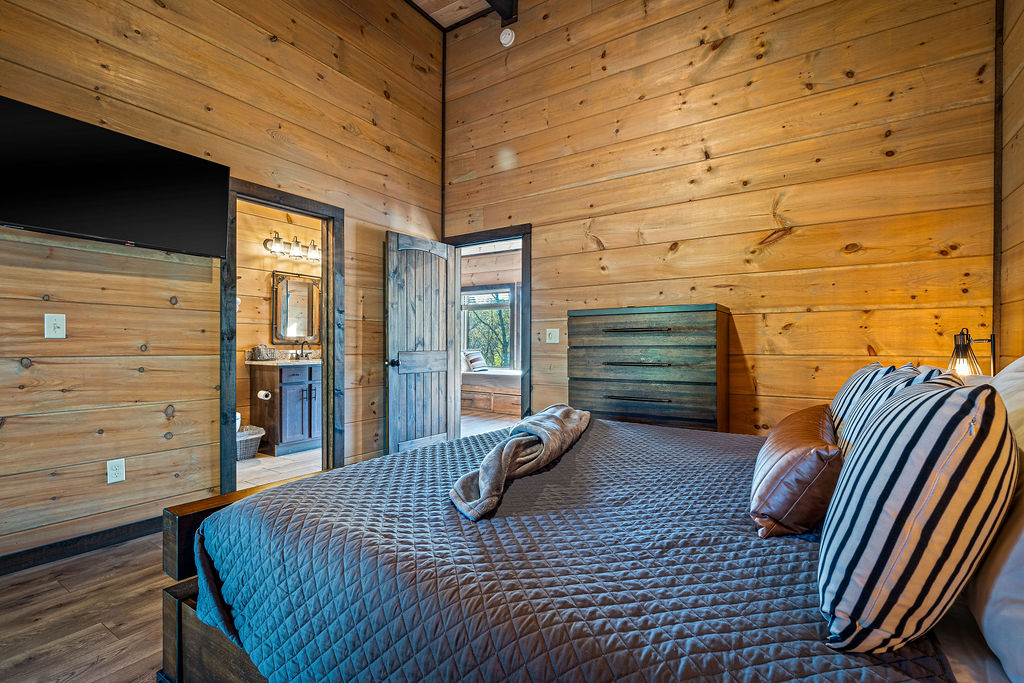 True Smoky Mountain character in one well-executed package. This 3-bedroom, 3-bath cabin delivers space, function and style The main level is anchored by a vaulted great room with a gas fireplace, big windows, open kitchen, large dining area and views of the Smokies. A spacious main-level primary suite features vaulted ceilings, a jetted tub, on-suite bath and deck access.