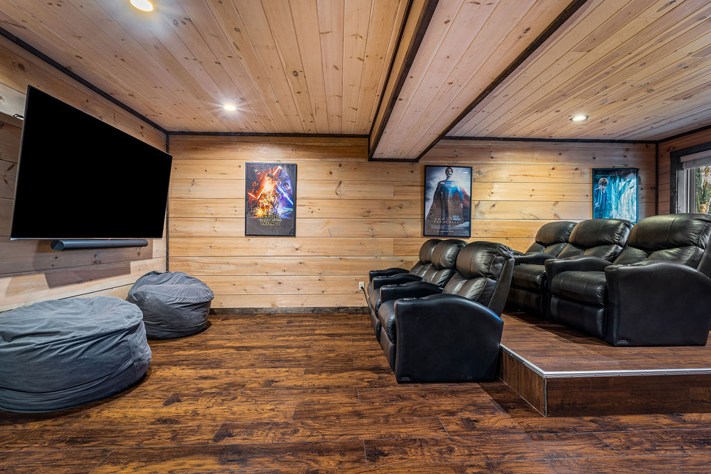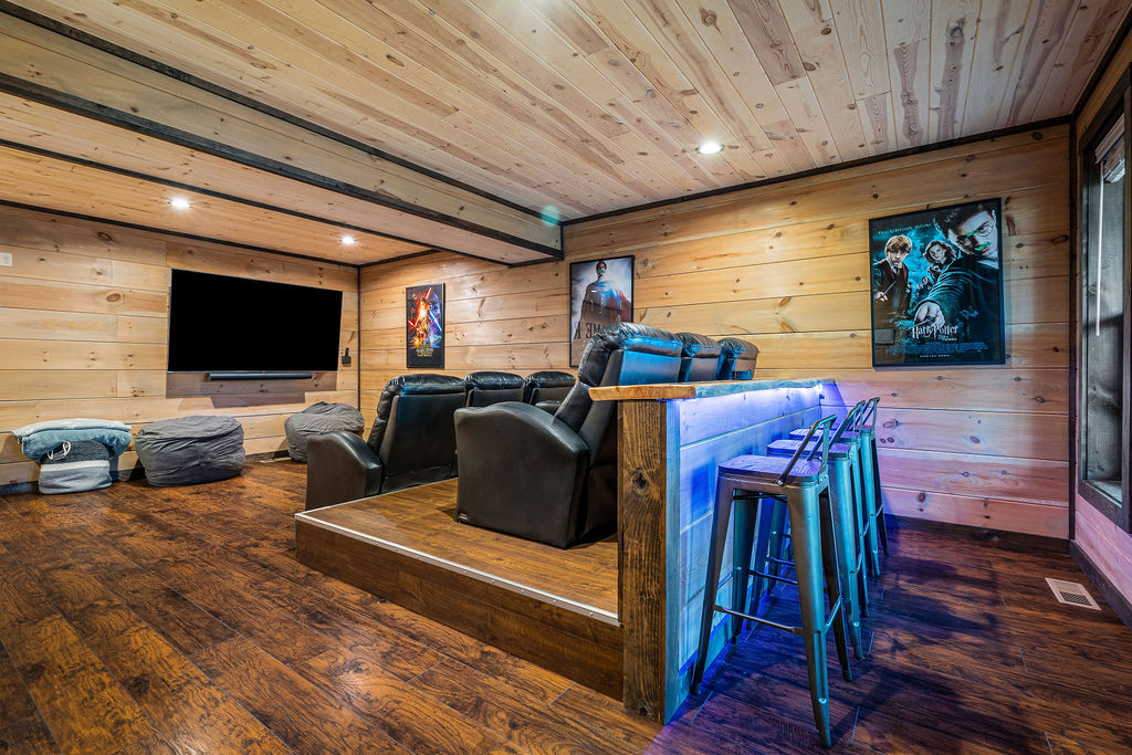 Welcome to Pine Top Escape, a stunning rustic-modern mountain retreat is over equipped with everything to make a successful STR! Decked out with games, massive theater, entertainment on all three levels of covered deck! Perfectly situated in the highly desirable Cobbly Nob Village with seasonal views. Recently constructed and impeccably maintained, this spacious 3-bedroom, 3.5-bathroom cabin plus large loft offers three levels of thoughtfully designed living space ideal for relaxing, entertaining, or enjoying family time. Youll appreciate seasonal mountain views and peaceful seclusion amid breathtaking Smoky Mountain landscapes, while being just minutes from all the excitement and attractions of the area. Inside, tasteful decor complements a fully equipped kitchen with a cozy coffee and tea station, a dining room that comfortably seats ten, and a spacious living area perfect for gatherings. The main floors king bedroom includes an ensuite bathroom and private deck access. Step outside to the front porch with classic rocking chairs or unwind on the back deck featuring a hot tub, gas grill, and outdoor dining area. The upper level loft provides versatile space with four twin XL beds, a dedicated workspace with monitor and charging station, and a relaxing living area with a smart Roku TV. Two additional bedrooms, a king and a queen, each offer ensuite bathrooms, private deck access, and ample space to stretch out. An in-room washer and dryer add to the homes convenience. The massive lower level is an entertainment haven, boasting a theater room with an 85 smart TV, six plush leather recliners, bean bags, and a custom bar. The adjoining game room features a pool table, foosball, air hockey, shuffleboard, and a retro arcade with over 60 games. Step outside to a cozy lower deck with lounging space and a bed swing, plus a convenient half bath. This fully furnished, turnkey cabin provides effortless transition for its new owners. Owners and their guests also enjoy premier community amenities including three seasonal pools, pickleball and tennis courts, a security office, and a nearby golf course, 24 hour security, and snow removal. Dont miss this exceptional opportunity to own a beautiful mountain retreat that perfectly balances luxury, comfort, and outdoor adventure. Schedule your showing today!
