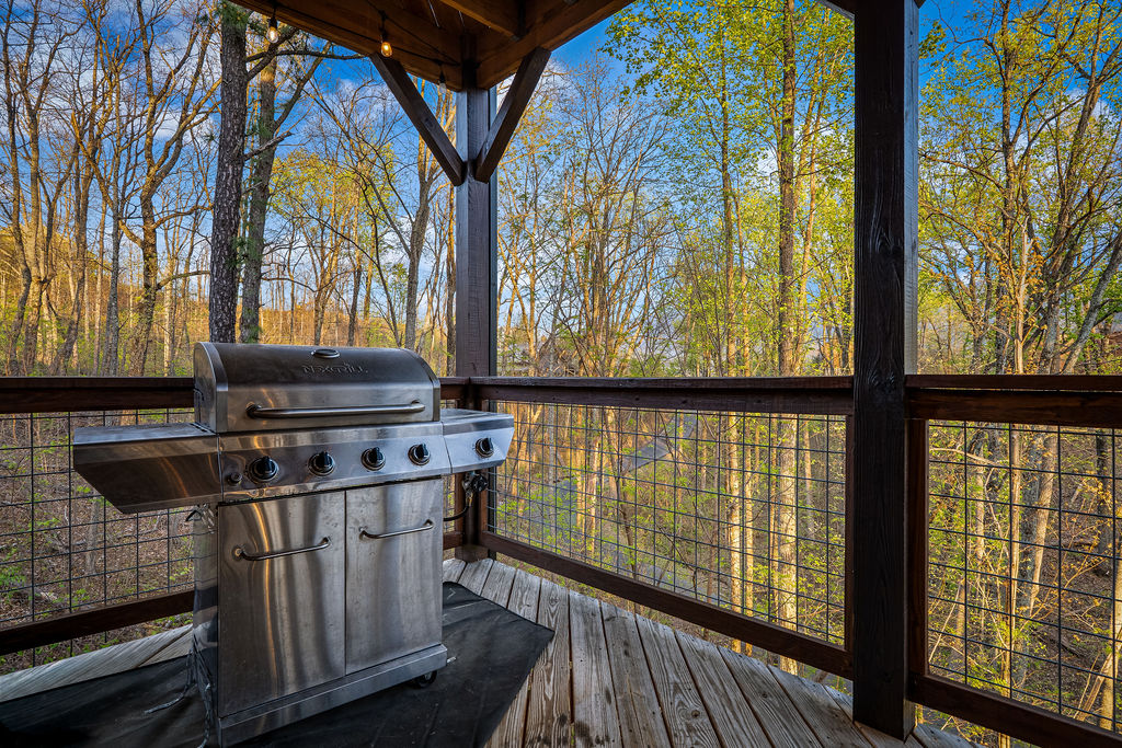 True Smoky Mountain character in one well-executed package. This 3-bedroom, 3-bath cabin delivers space, function and style The main level is anchored by a vaulted great room with a gas fireplace, big windows, open kitchen, large dining area and views of the Smokies. A spacious main-level primary suite features vaulted ceilings, a jetted tub, on-suite bath and deck access. The deck spans the length of the cabin with generous seating, a gas grill and a front-row seat to Mount LeConte. Downstairs, two additional split bedroom suites are paired with a game room and a built-in bunk alcove, creating flexible sleeping and gathering spaces. The walkout screened patio extends the living area outdoors, where you'll find a private hot tub. Warm pine finishes run throughout the interior. Positioned on a corner lot with level parking, this home offers the practicality buyers appreciate: city water, sewer, and gas, on-grade slab foundation, National Park views, and proximity to Gatlinburg. One of the best things about the location is its walkable access to Mills Park, Anna Porter Public Library, Gatlinburg Community Center, Rocky Top Sports World, the trolly stop, and it's just a mile away from the Arts and Crafts loop. This is a cabin that balances Smoky Mountain atmosphere with everyday convenience — a combination that's increasingly hard to find in Gatlinburg-and there is no HOA.