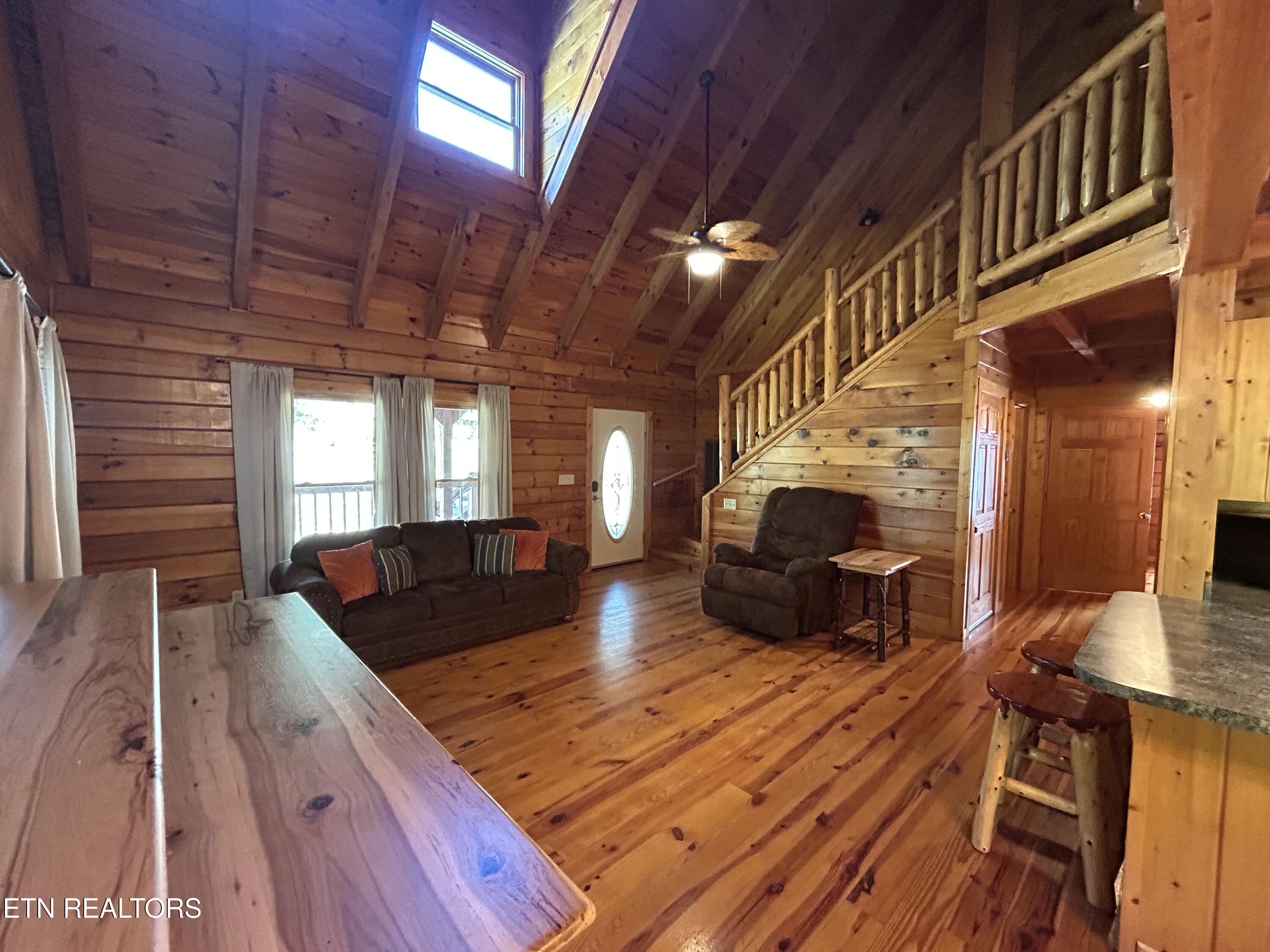 Cozy Log Cabin sitting on 21.01 Acres. Unrestricted opportunity for a nice Cabin Rental of prime for development. 3 Bedrooms, 2 full baths. Family room is vaulted and aloft overlooking it all. Enjoy a full wrap around porch, partially screened and overlooking an active mountain stream. Dollywood is a short 10 minute drive away and plenty of attractions, shopping and excellent restaurants nearby.