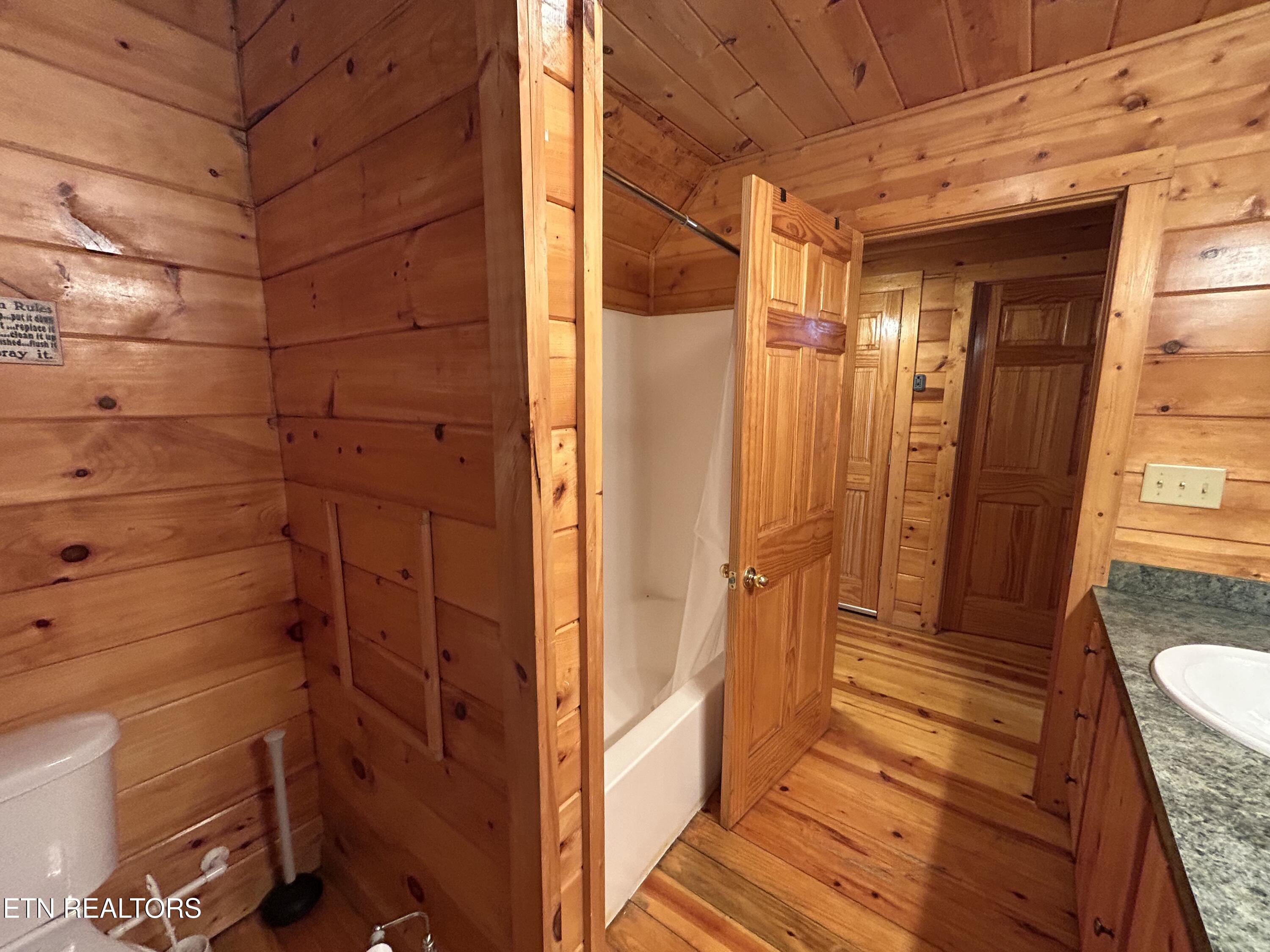 Cozy Log Cabin sitting on 21.01 Acres. Unrestricted opportunity for a nice Cabin Rental of prime for development. 3 Bedrooms, 2 full baths. Family room is vaulted and aloft overlooking it all. Enjoy a full wrap around porch, partially screened and overlooking an active mountain stream. Dollywood is a short 10 minute drive away and plenty of attractions, shopping and excellent restaurants nearby. Easy to show.