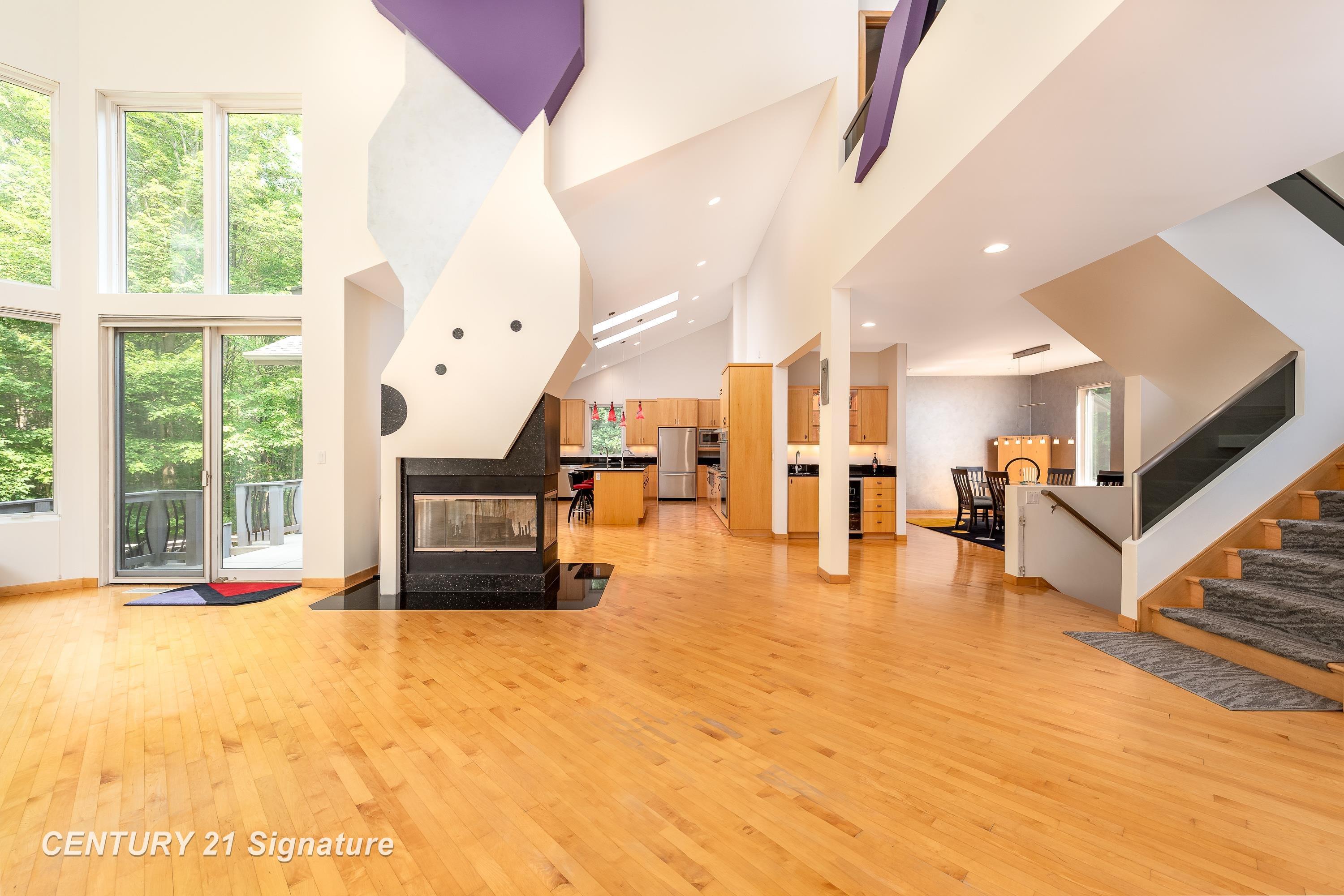 A true architectural statement, this Bill Phillips‹“designed estate stands among the most exceptional homes currently on the market. Set on 5.54 private, wooded acres, the residence offers four bedrooms and 4.5 baths, blending refined elegance with thoughtful, high-end functionality throughout. The custom main-floor primary suite is a private retreat, exuding understated luxury. Highlights include a personal fireplace, private deck, and a spa-inspired bath complete with its own fireplace, soaking tub, expansive shower, and exceptional closet space‹” with bespoke shoe storage. Every detail has been curated to support a sophisticated, yet livable lifestyle. Designed with both entertaining and everyday comfort in mind, the main living areas overlook the serene acreage beyond. Extra-thick Canadian maple flooring flows throughout the home, providing a warm, timeless foundation that beautifully supports transitional dÁÂcor. A striking three-way gas or wood-burning fireplace anchors the space, while floor-to-ceiling windows flood the interior with natural light. The gourmet kitchen is nothing short of stunning, featuring Dacor professional-grade appliances, expansive granite countertops and backsplash, a designer hood vent, generous pantry space, and a custom cookbook cabinet. Dining options are equally impressive, offering seamless transitions from the statement island to a quiet eat-in area, and on to the formal dining room. A butler's pantry with upscale wine refrigeration, abundant storage, and refined lighting provides a second serving area ideal for entertaining. The finished lower level extends the home's versatility, offering a fourth bedroom with private access to a full bath, a dedicated fitness room, workshop, walk-out access to the back patio, and tremendous storage. From construction quality to the strategic sourcing of materials, this home reflects a level of professional design and craftsmanship that is both evident and enduring. The oversized three-car garage easily accommodates more than vehicles, while plans for future expansion are already in place: a designated pole building site with underground electric and a prepared driveway await. Outdoor living is equally remarkable. Four decks invite you to relax, entertain, or simply observe the deer and turkeys that frequent the property‹”all while enjoying complete privacy and natural beauty. Perfectly positioned just seven miles from shopping, medical offices, and schools, this estate delivers the rare balance of luxury living and peaceful seclusion. A home of this caliber, scale, and setting is seldom available. Ideally suited for executives and buyers relocating, this property offers the exceptional design, refined finishes, and convenient proximity to essential amenities that discerning buyers seek. It is a rare opportunity to transition seamlessly into luxury living without compromise.