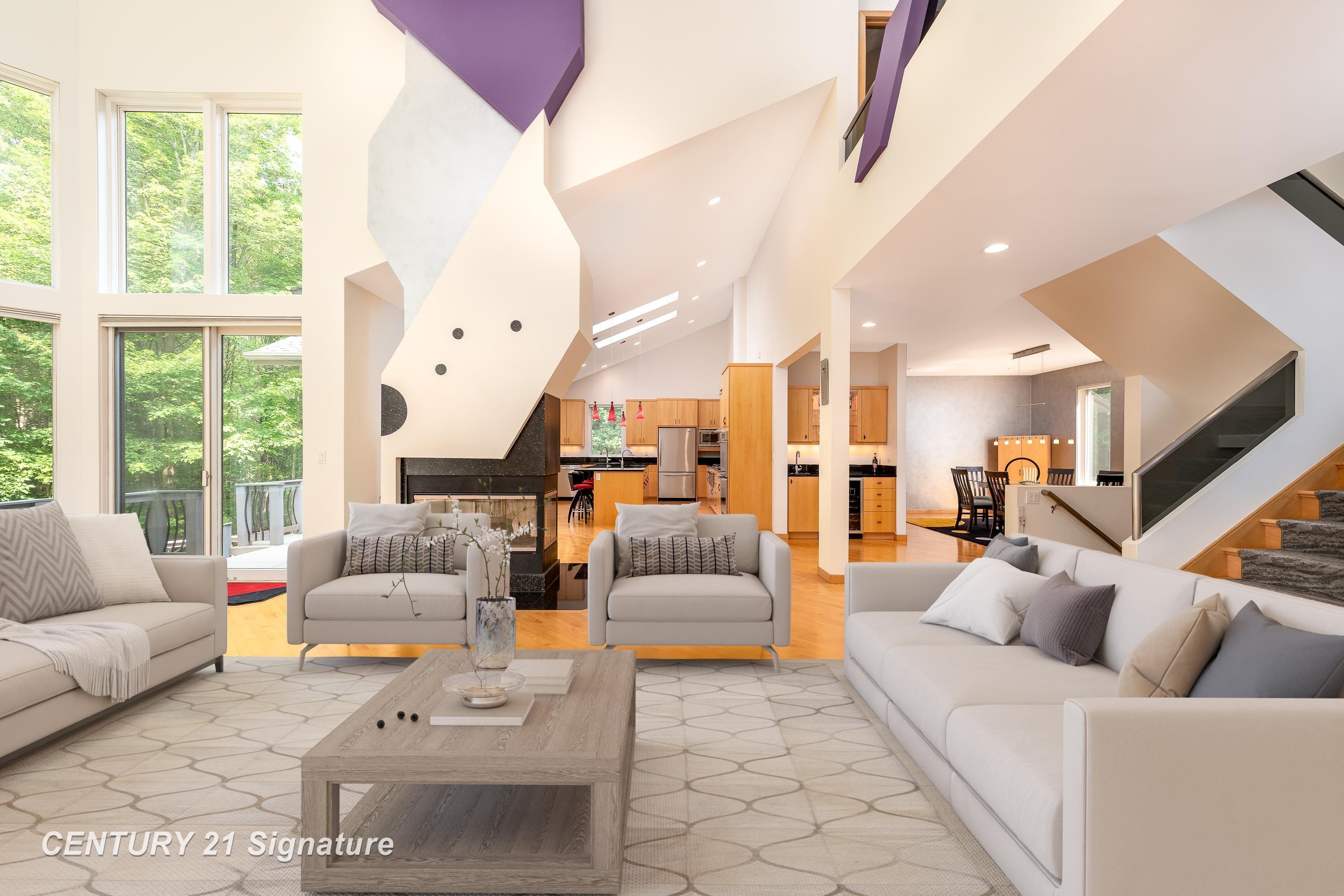 One-of-a-kind architectural gem designed by Bill Phillips, this expansive ranch sits proudly on a large corner lot and offers the perfect blend of luxury, comfort, and timeless design. Boasting over 4,000 sqft of total living space, this exceptional executive home features 5 bedrooms, 3 full baths, 2 half baths, and a 3-car garage‹”providing generous room to live and entertain both inside and out. Step inside to an open floor plan with hardwood flooring throughout most of the main level. The spacious sunken living room is a stunning centerpiece, featuring vaulted ceilings, walls of windows, and a cozy gas fireplace that fills the space with natural light and warmth. Adjacent to the living room is a versatile flex space ideal for a sitting area, reading nook, or music room. The chef's kitchen is designed to impress, boasting a large island, double ovens, gas cooktop, newer stainless steel appliances, granite countertops, and abundant cabinetry. The spacious primary suite offers a private retreat with vaulted ceilings and sliding doors leading to the backyard. The ensuite bath features a double-sink vanity, jetted tub, separate shower, and a bidet-equipped toilet. Just next to the primary suite is another bedroom currently used as a home office, perfect for flexible living. The newly finished lower level features a huge 500 sqft family room with oversized egress windows, a laundry room, and an impressive gym with extensive storage shelves. Three additional bedrooms and two full baths provide plenty of space for family and guests. The 3-car garage offers abundant storage and includes a Tesla charging station. Outside, enjoy a sprawling deck, professional landscaping, and a private backyard‹”perfect for relaxing or entertaining. Recent updates provide peace of mind, including: new roof and skylights (2022); fully remodeled basement (2021); furnace, water heater, and central A/C (2021); all new Andersen basement windows (2021); new kitchen hood (2021); and new refrigerator (2024). Conveniently located near schools, shopping, and dining in a wonderful neighborhood, this home truly has it all. Call for your private tour today!