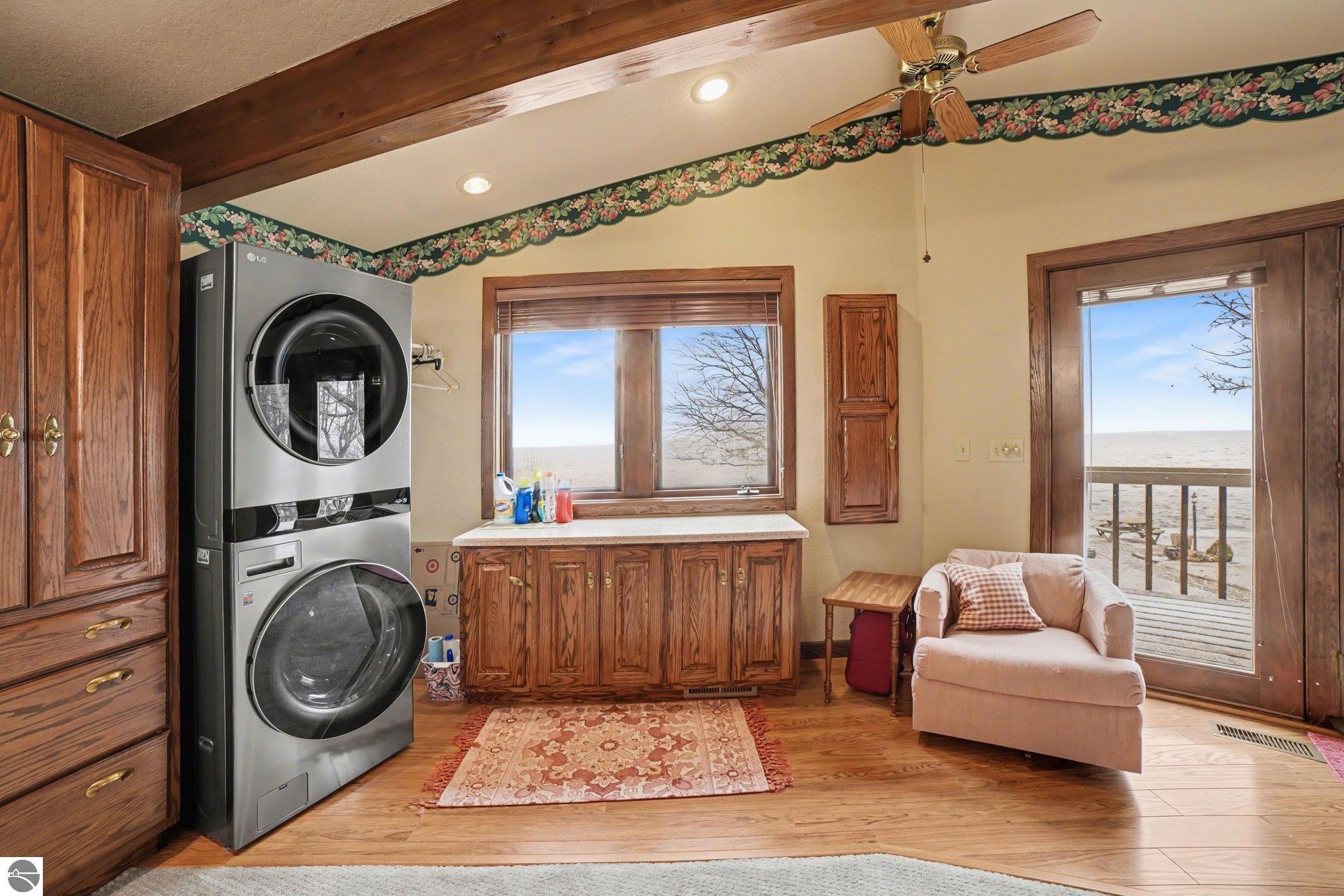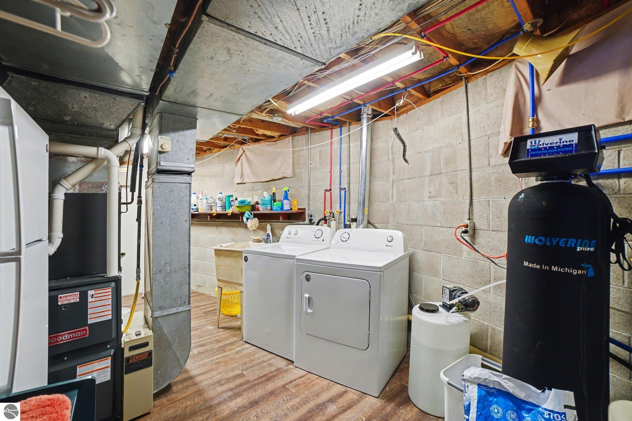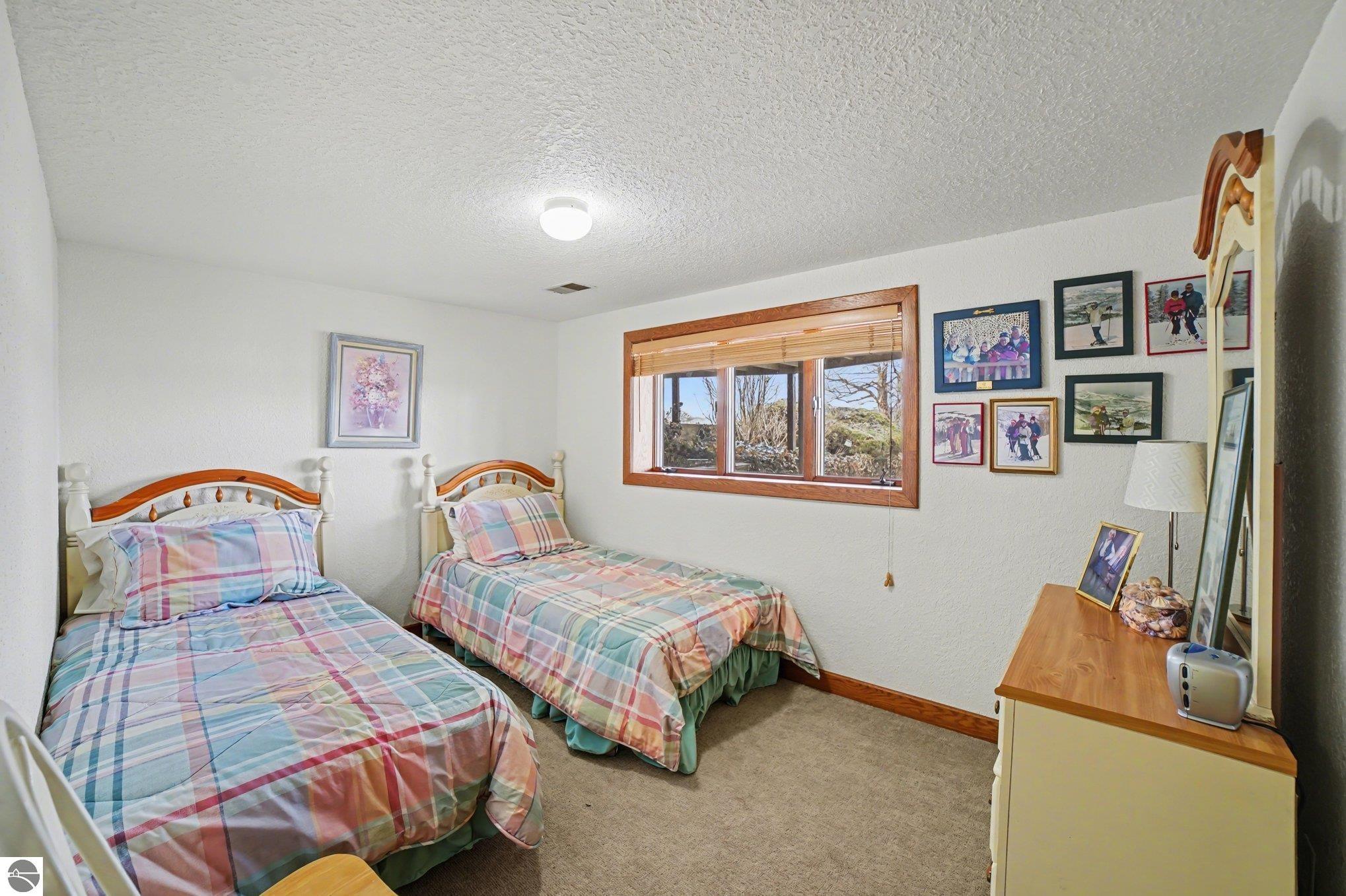 This 4-bedroom, 3.5-bath exquisite Tudor home sits on 10.5 wooded acres with a pond, frontage on hole #6 of the Pleasant Hills golf course and is just a couple of minutes from the Mt. Pleasant city limits. The home features a spectacular kitchen with an island, granite countertops, top of the line commercial grade Wolf gas range, and Sub-Zero refrigerator. Other wonderful features include two primary suites on the upper level with walk in closets, a mostly finished basement with egress windows and with wet bar, wine cellar, beverage fridge, and a main floor with woodburning fireplace in living room, formal and informal dining, sunroom, and laundry room. The home is heated with an energy efficient open loop geothermal system, and the indoor heat pump was replaced in 2023. Recent updates include new roof with gutters and downspouts in 2022 and a water filtration system. So, whether you are an outdoor enthusiast, golf enthusiast, or just like peace and quiet, this property and home will meet all of those needs and more!