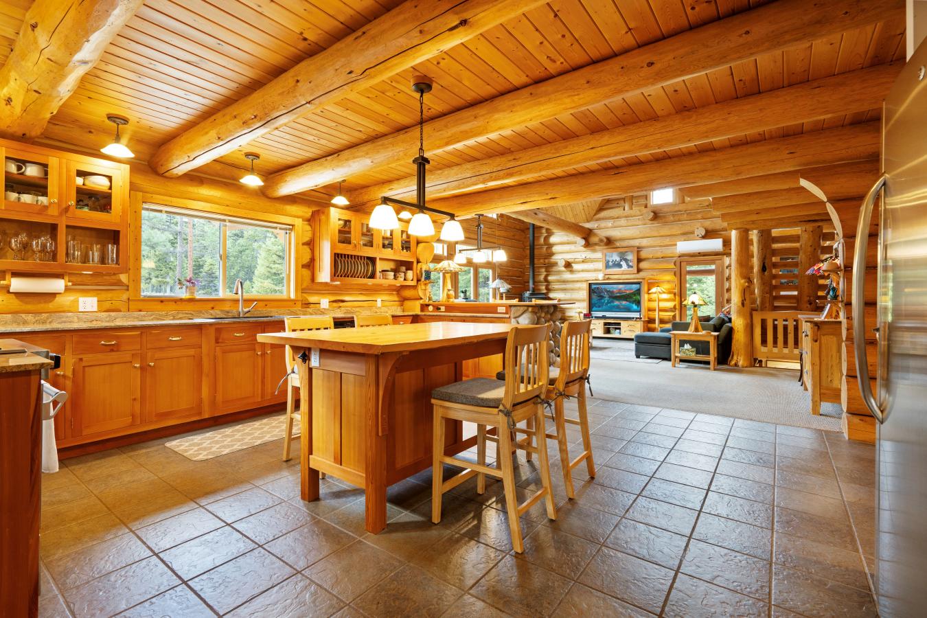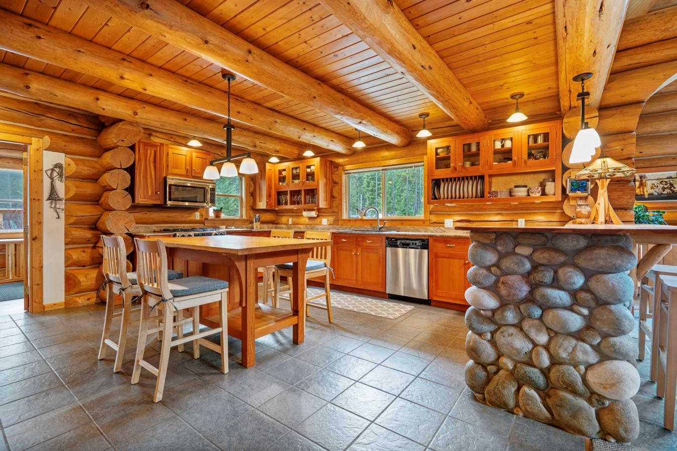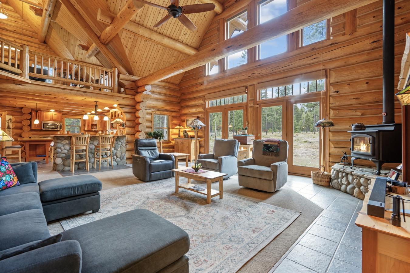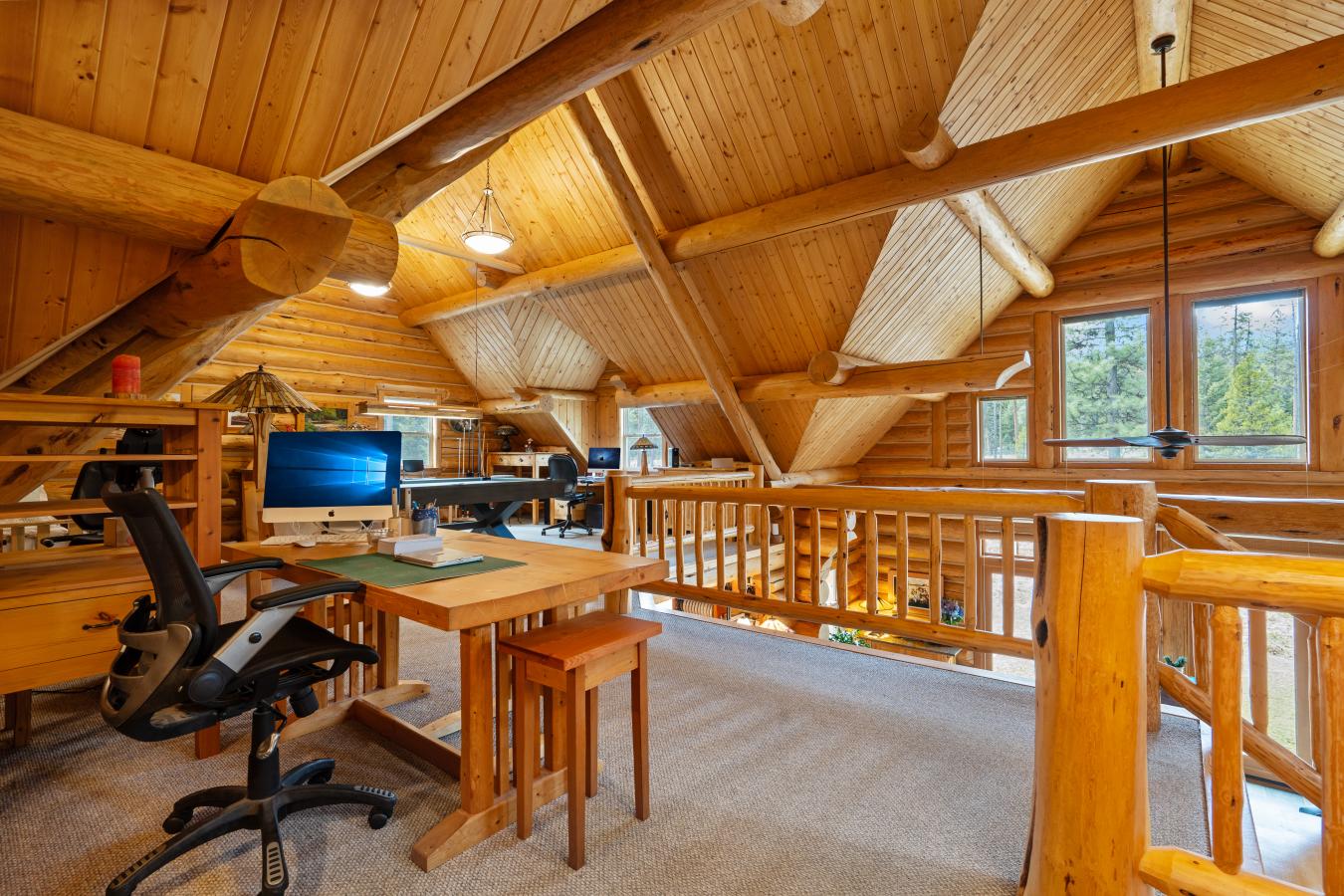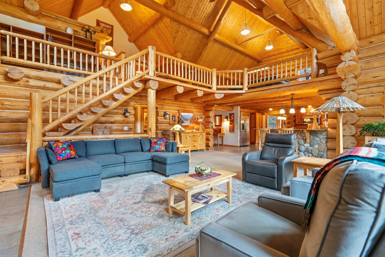Nestled on 33-acres with panoramic views of Glaciers Rocky Mountains across the valley below, this stunning log home offers a rare opportunity for both business & personal enjoyment. Designed with lodge-like charm, the main residence has 5 bed, 3 bath, 4,860SF, huge great room, vaulted ceilings, floor-to-ceiling rock fireplace, & second living area in the walk-out basement.