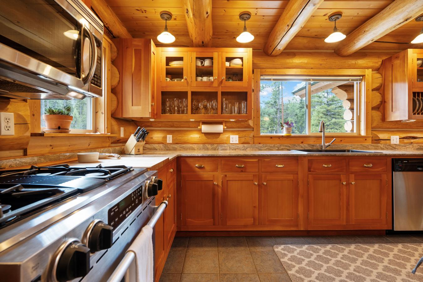 Pure Wilderness & Big Views on 20 Acres. Bordering Forest Service, this private 3-bed, 3-bath, 2,486 SF log-sided home offers a true off-grid lifestyle. Surrounded by towering larch trees and overlooking a seasonal pond, the property showcases Glacier National Park views that feel close enough to touch. The home features warm wood finishes throughout, vaulted ceilings, a bonus room, family room, and a spacious living area. A portion of the original log cabin adds rustic charm. Enjoy granite counters, LVP flooring, a main-level primary suite, high end appliances, covered deck, balcony, enclosed porch, and outdoor sitting areas. A large garage/shop, woodshed, and additional shop provide ample storage. Solar panels, generators, an inverter, and lithium-ion batteries ensure reliable off-grid power. Located just minutes from Tepee Lake and west of Glacier National Park, with abundant wildlife & outdoor recreation at your doorstep. You will love this property!