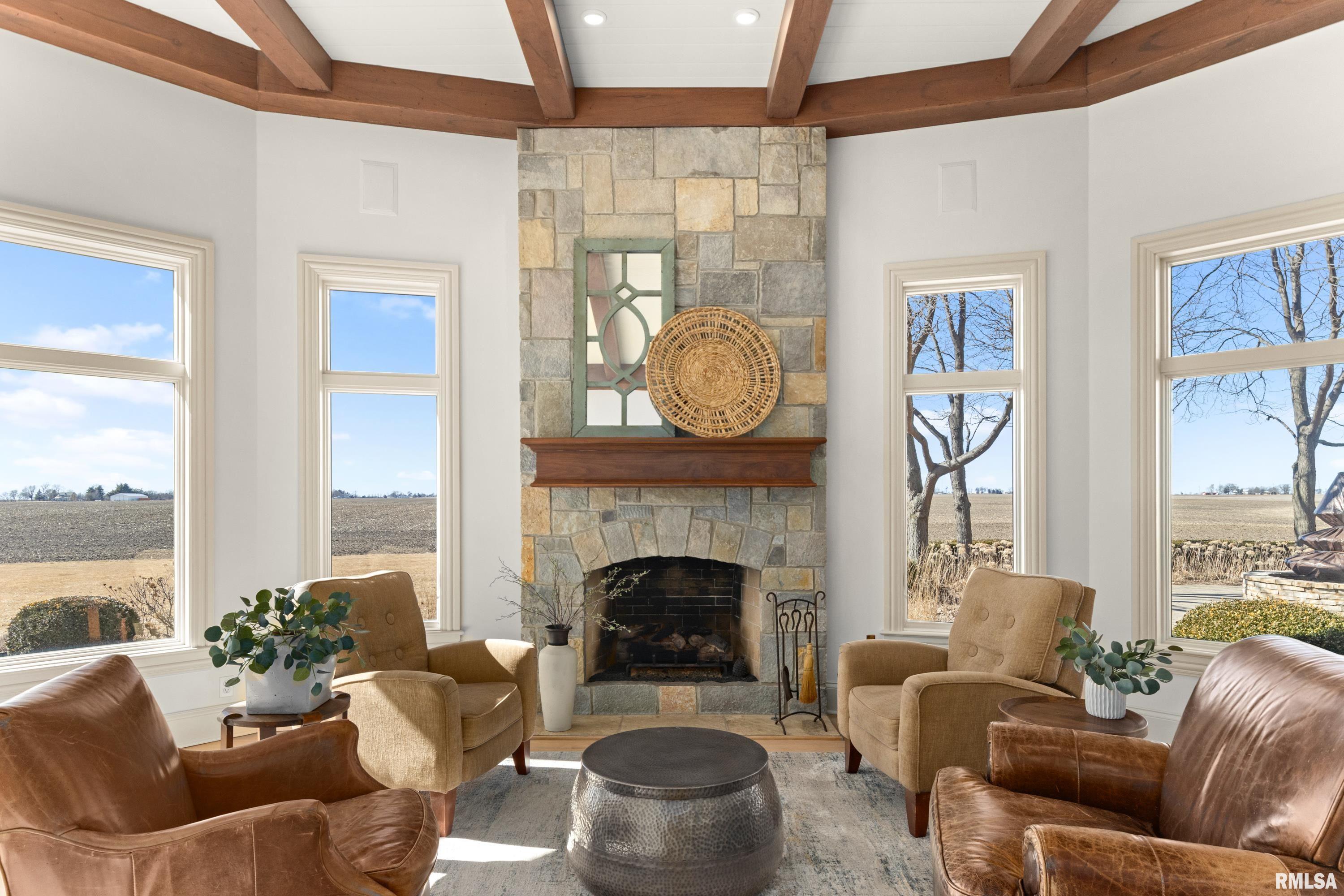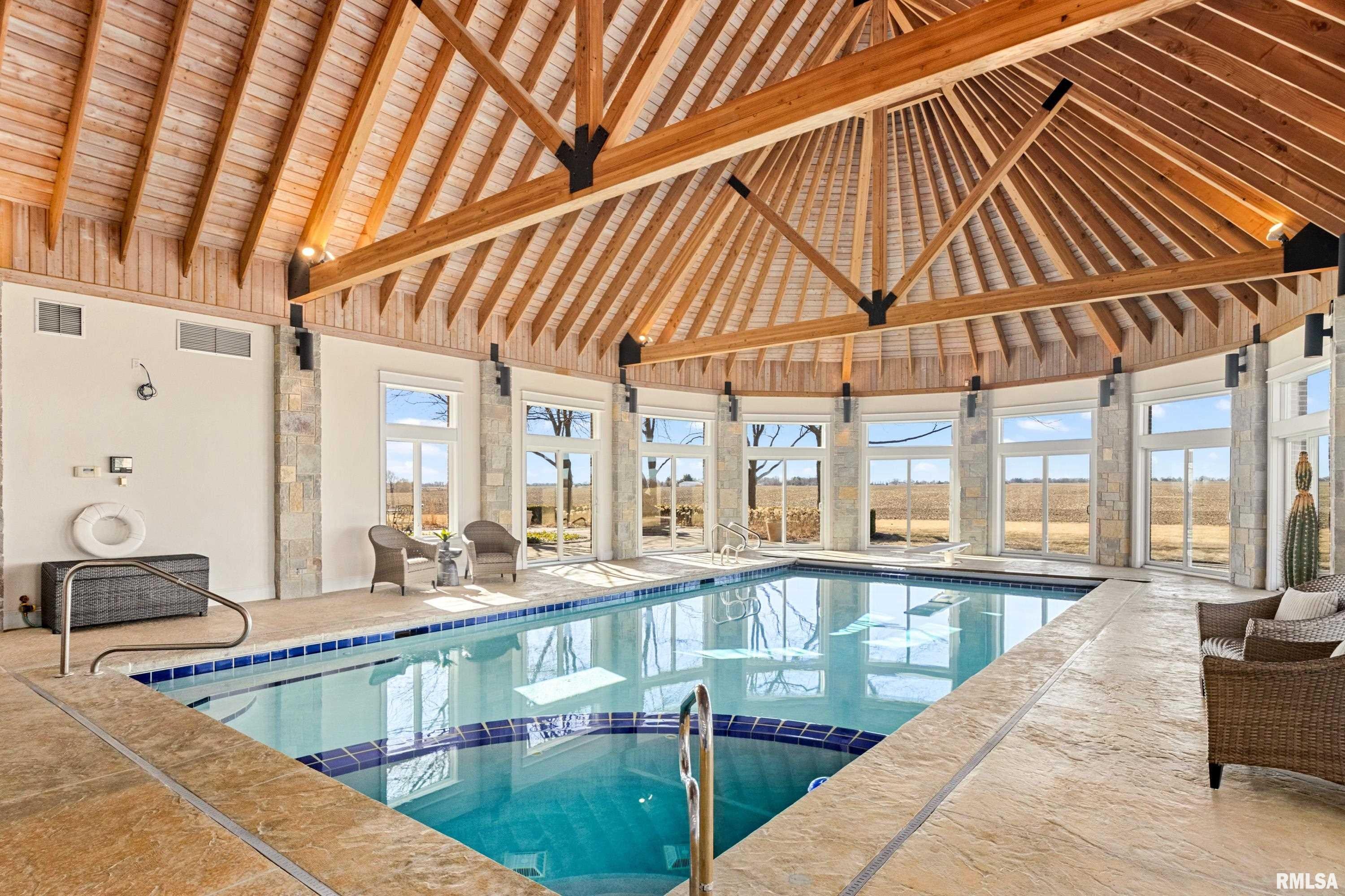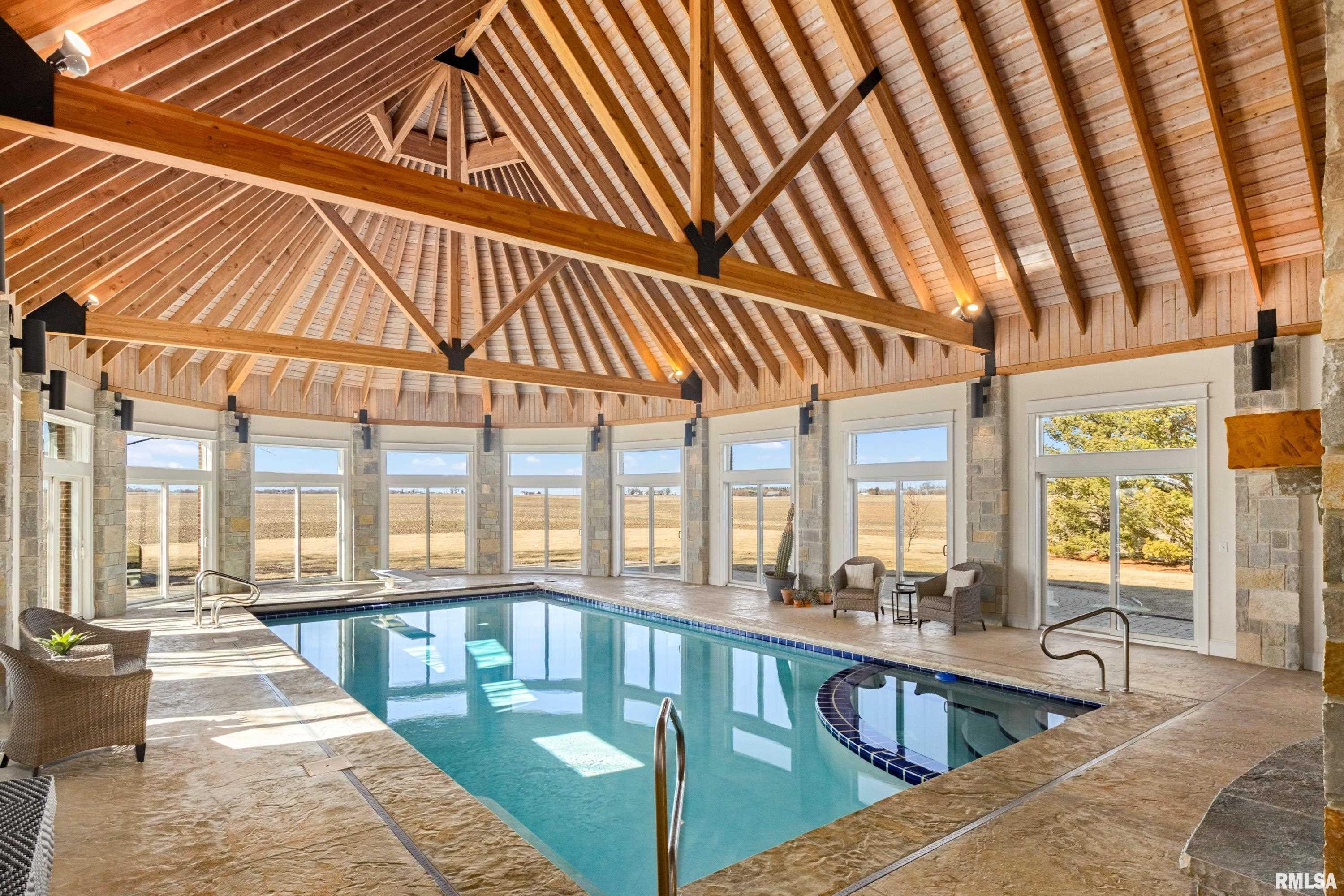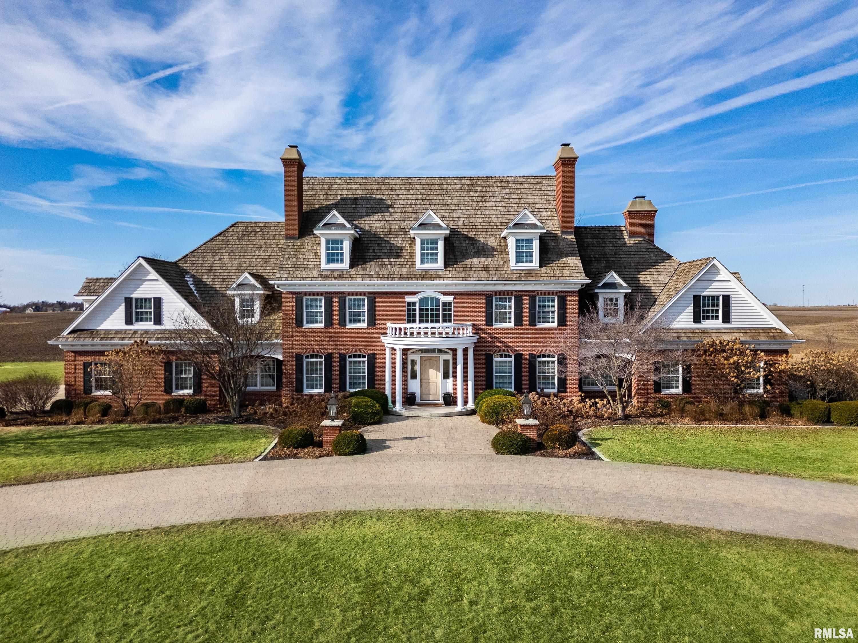 A rare opportunity to own this one owner custom built Georgian Colonial Estate offering refined craftsmanship, architecture, design & exceptional scale on 5.2 private acres! Meticulously maintained all brick residence w/cedar accents features 4 full masonry fireplace & chimney systems, over 10,000 sq ft finished living space incl. finished basement, extensive custom millwork, Andersen windows, many recent updates, open flr plan yet inviting cozy spaces to enjoy! Solid Mahogany front dr opens to a grand 2-story foyer w/sweeping curved staircase setting the tone for the quality found throughout. Main level showcases refinished maple hardwood flrs, 10 ceilings w/12 ceilings in hearth rm w/exposed wood beam tongue & groove ceiling, frpl, expansive views of backyard w/access to back patio areas. Completely renovated Chefs Kitchen in 24 w/custom cabinetry, quartz countertops, high end appl, lg island w/seating, pantry, all centered between great rm, dining areas & hearth rm! Formal living/piano rm w/frpl is another beautiful space to enjoy! Very inviting climate controlled indoor pool rm to be enjoyed year around w/30 vaulted ceiling, 2nd kitchen, dining/gathering space, 2 full BA & laundry. 2nd story features 9 ceilings, primary suite w/attached study/office, 2 ensuites, 4th BR shares full BA, lg laundry rm & bonus rm above garage w/charming dormers & flexible living space. 3rd level offers future expansion potential! Ideal location between Peoria & Bloomington!