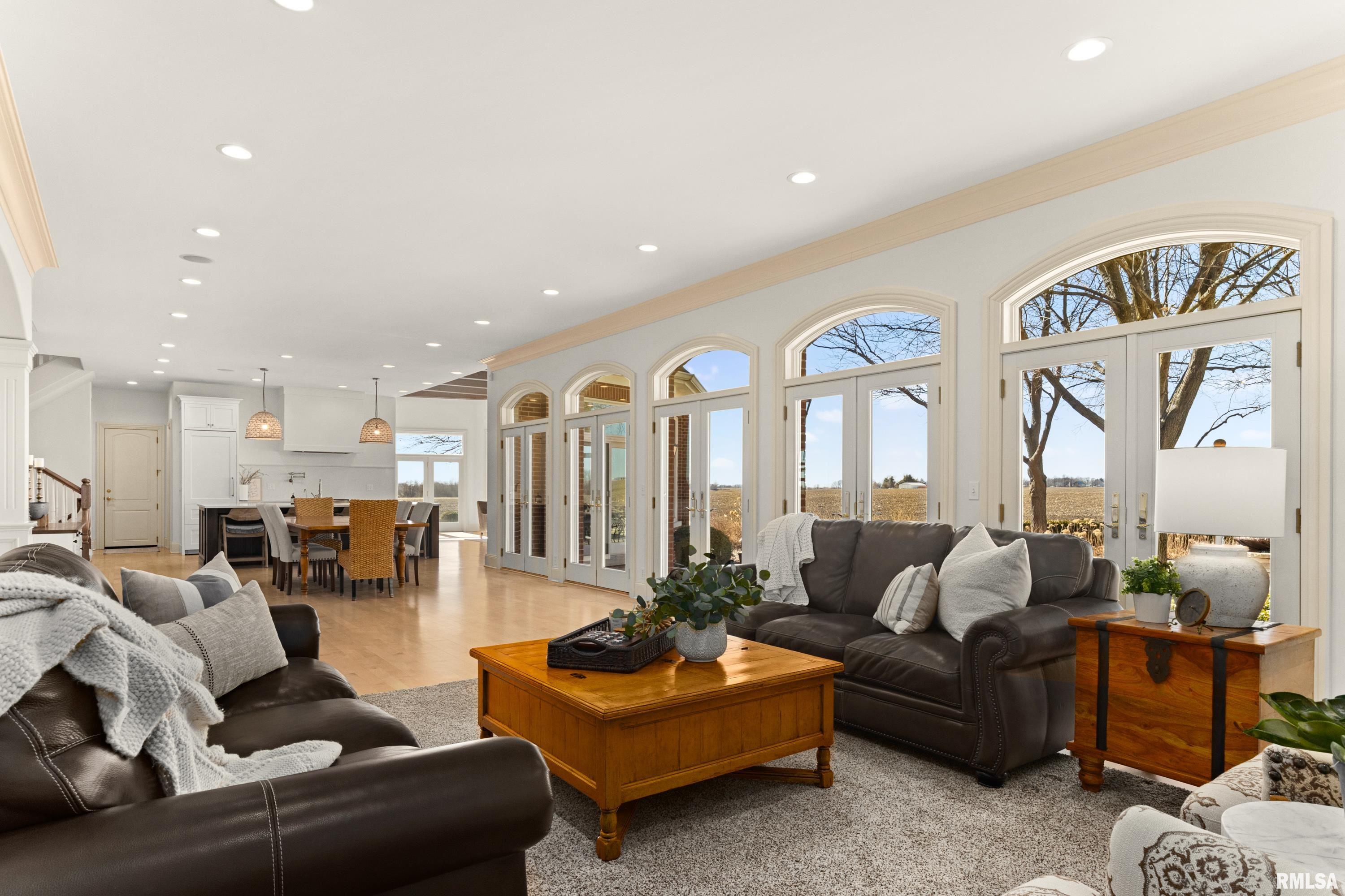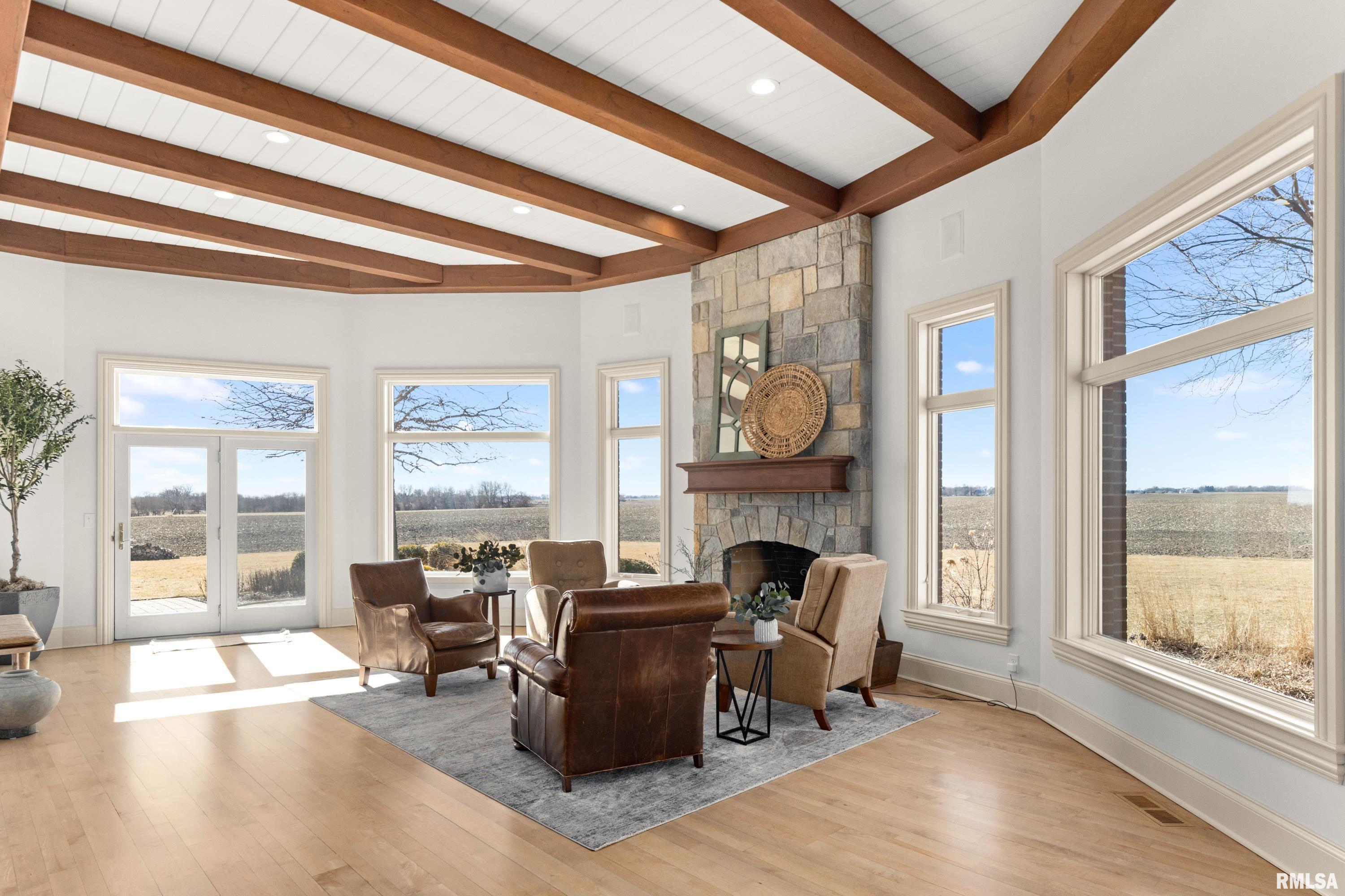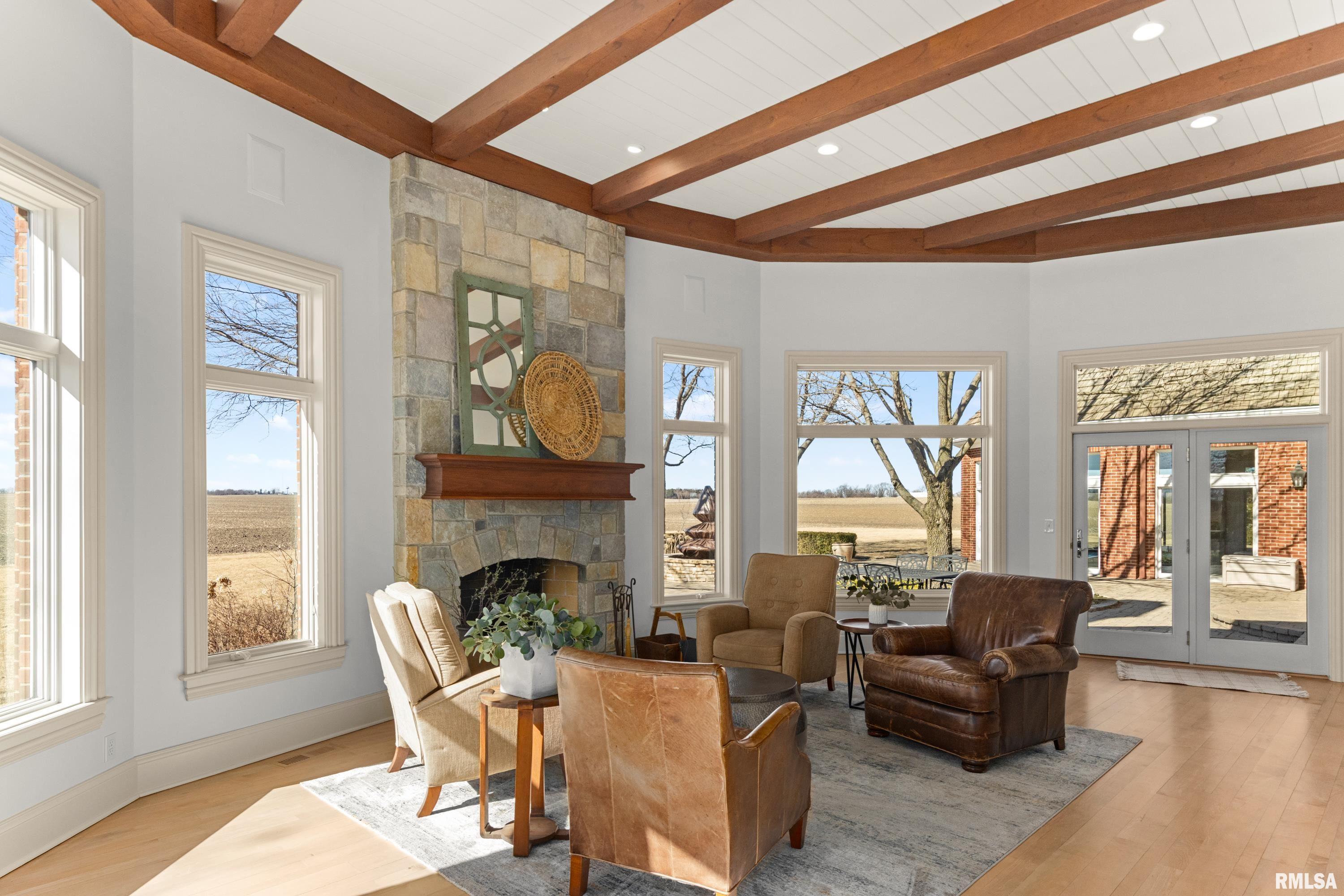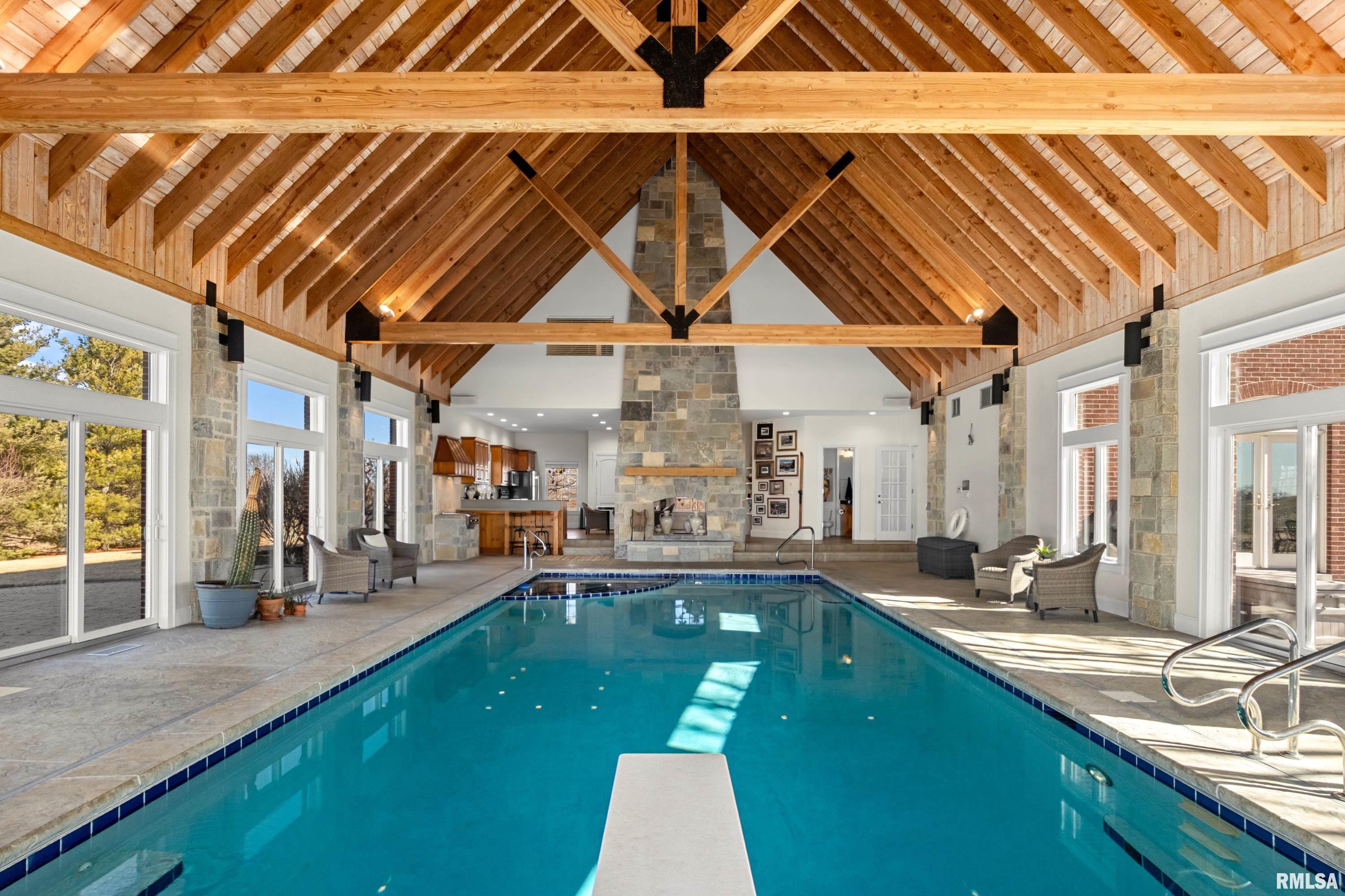 A rare opportunity to own this one owner custom built Georgian Colonial Estate offering refined craftsmanship, architecture, design & exceptional scale on 5.2 private acres! Meticulously maintained all brick residence w/cedar accents features 4 full masonry fireplace & chimney systems, over 10,000 sq ft finished living space incl. finished basement, extensive custom millwork, Andersen windows, many recent updates, open flr plan yet inviting cozy spaces to enjoy! Solid Mahogany front dr opens to a grand 2-story foyer w/sweeping curved staircase setting the tone for the quality found throughout. Main level showcases refinished maple hardwood flrs, 10 ceilings w/12 ceilings in hearth rm w/exposed wood beam tongue & groove ceiling, frpl, expansive views of backyard w/access to back patio areas. Completely renovated Chefs Kitchen in 24 w/custom cabinetry, quartz countertops, high end appl, lg island w/seating, pantry, all centered between great rm, dining areas & hearth rm! Formal living/piano rm w/frpl is another beautiful space to enjoy! Very inviting climate controlled indoor pool rm to be enjoyed year around w/30 vaulted ceiling, 2nd kitchen, dining/gathering space, 2 full BA & laundry. 2nd story features 9 ceilings, primary suite w/attached study/office, 2 ensuites, 4th BR shares full BA, lg laundry rm & bonus rm above garage w/charming dormers & flexible living space. 3rd level offers future expansion potential! Ideal location between Peoria & Bloomington!