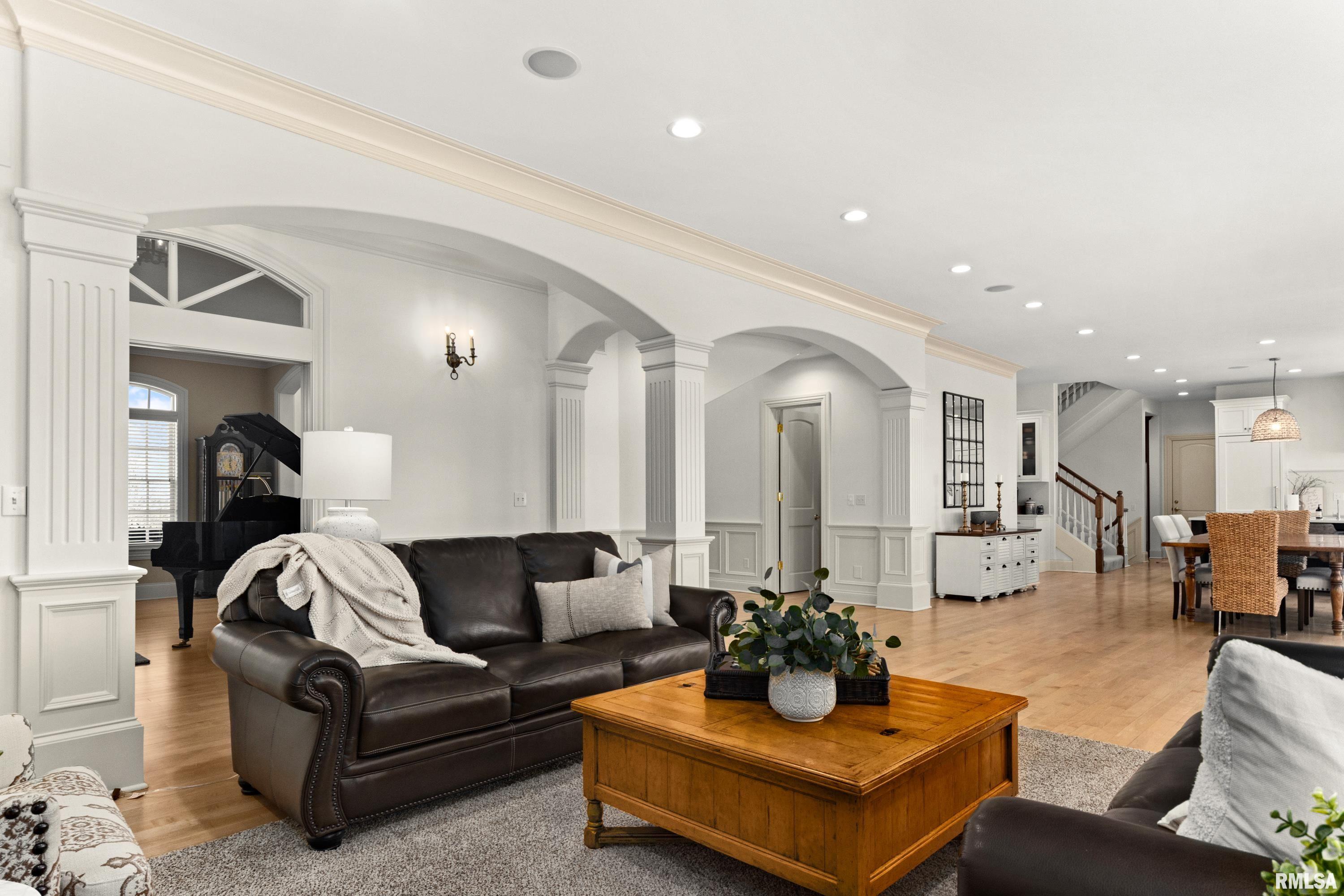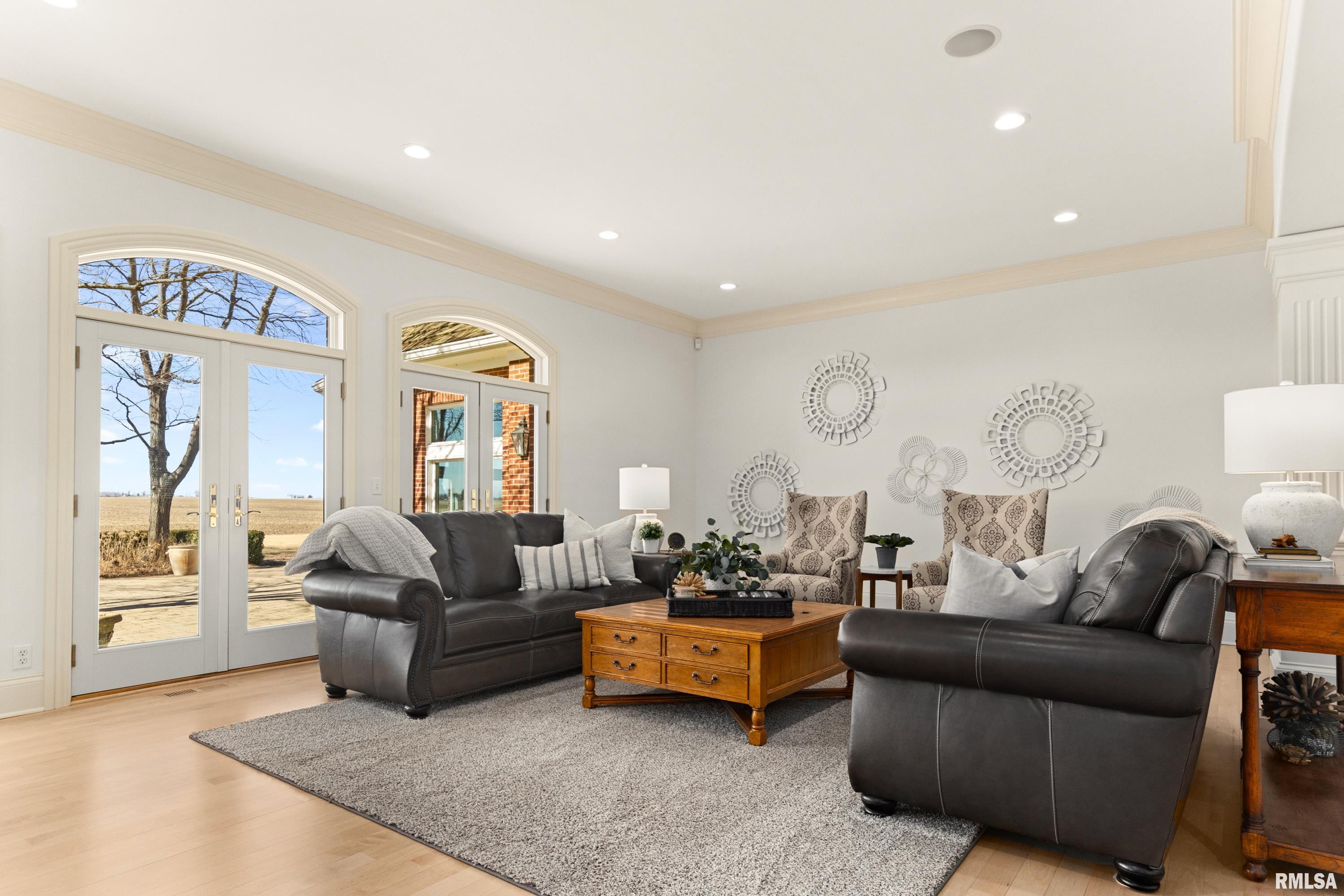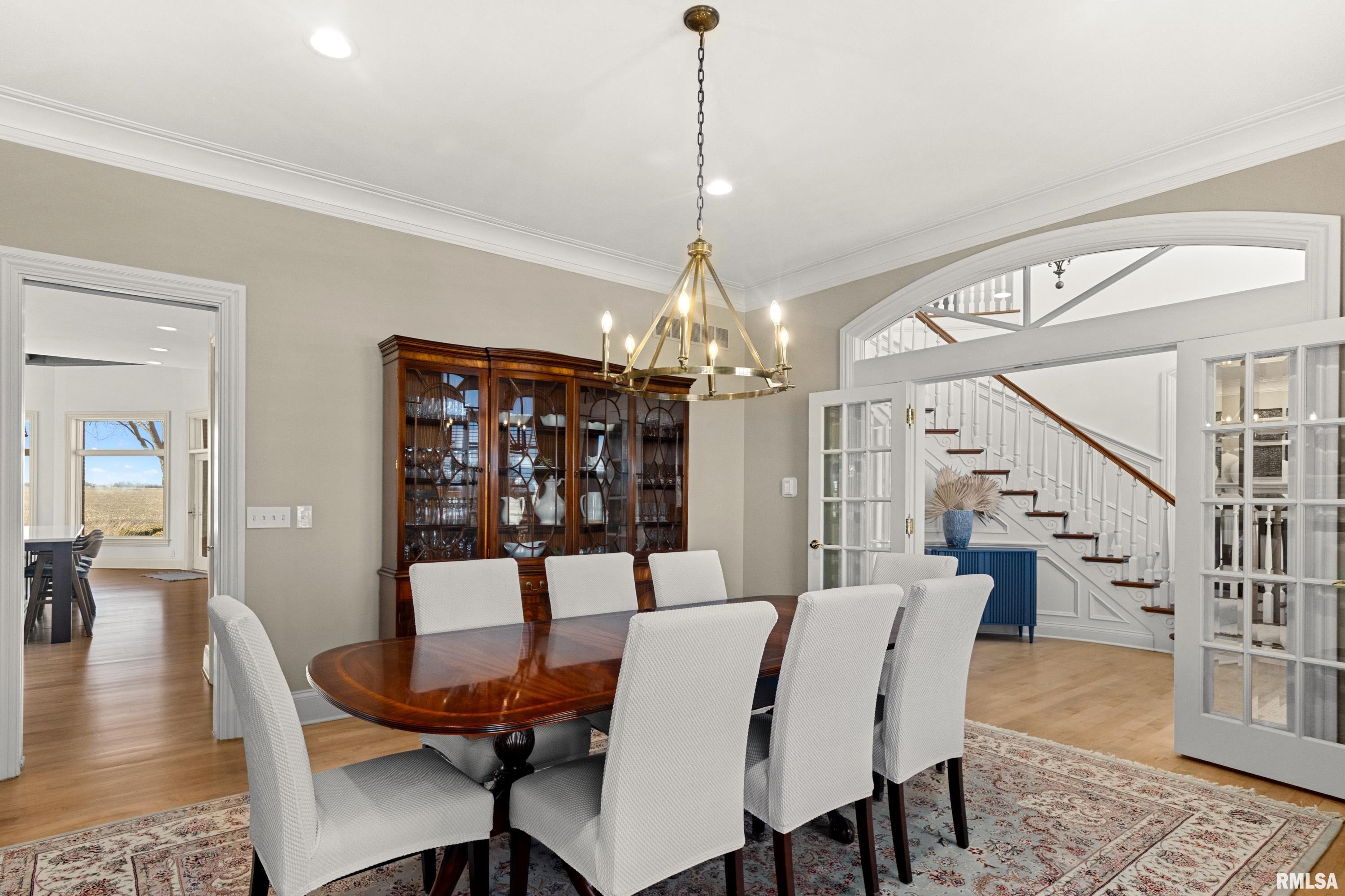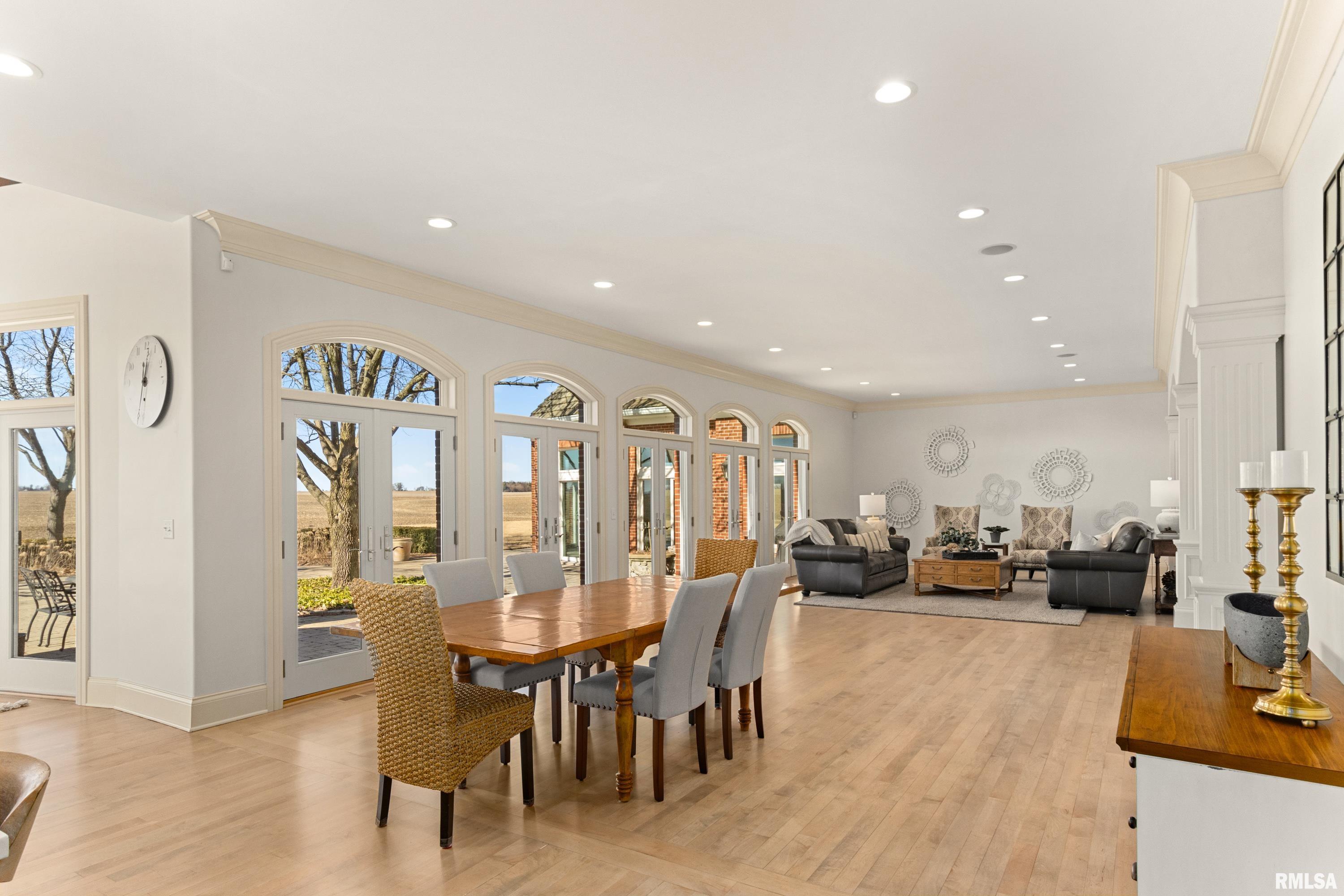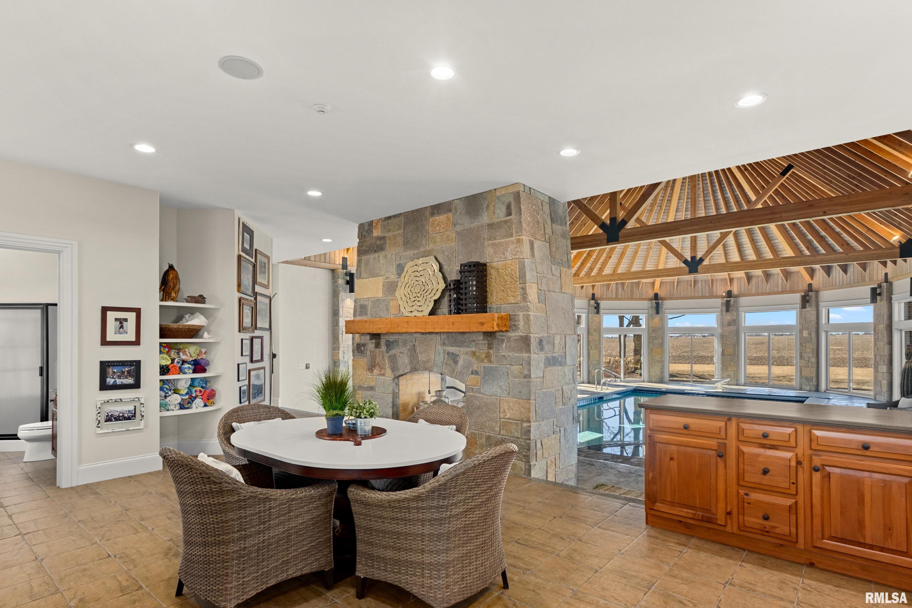A rare opportunity to own this one owner custom built Georgian Colonial Estate offering refined craftsmanship, architecture, design & exceptional scale on 5.2 private acres! Meticulously maintained all brick residence w/cedar accents features 4 full masonry fireplace & chimney systems, over 10,000 sq ft finished living space incl. finished basement, extensive custom millwork, Andersen windows, many recent updates, open flr plan yet inviting cozy spaces to enjoy! Solid Mahogany front dr opens to a grand 2-story foyer w/sweeping curved staircase setting the tone for the quality found throughout. Main level showcases refinished maple hardwood flrs, 10 ceilings w/12 ceilings in hearth rm w/exposed wood beam tongue & groove ceiling, frpl, expansive views of backyard w/access to back patio areas. Completely renovated Chefs Kitchen in 24 w/custom cabinetry, quartz countertops, high end appl, lg island w/seating, pantry, all centered between great rm, dining areas & hearth rm! Formal living/piano rm w/frpl is another beautiful space to enjoy! Very inviting climate controlled indoor pool rm to be enjoyed year around w/30 vaulted ceiling, 2nd kitchen, dining/gathering space, 2 full BA & laundry. 2nd story features 9 ceilings, primary suite w/attached study/office, 2 ensuites, 4th BR shares full BA, lg laundry rm & bonus rm above garage w/charming dormers & flexible living space. 3rd level offers future expansion potential! Ideal location between Peoria & Bloomington!