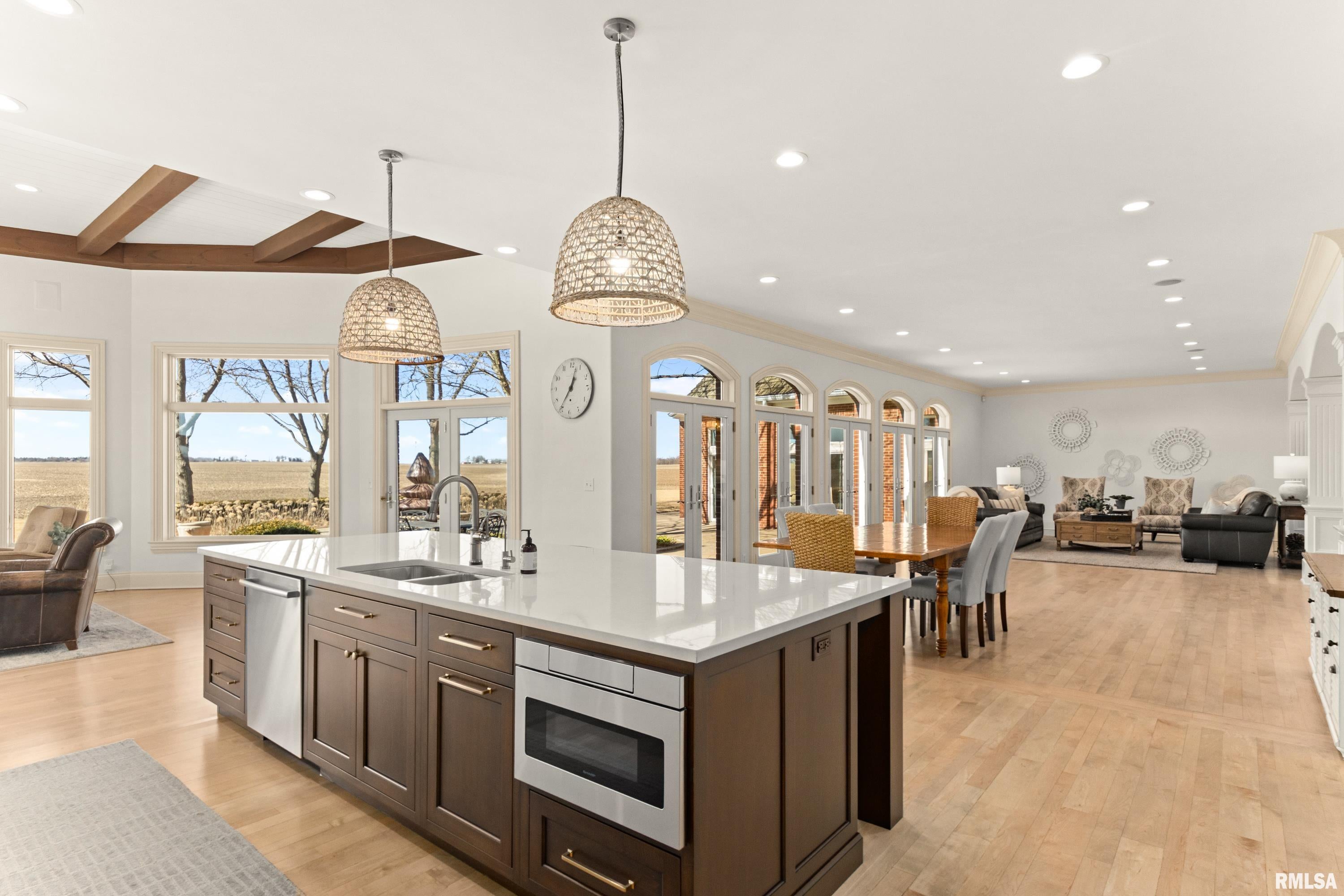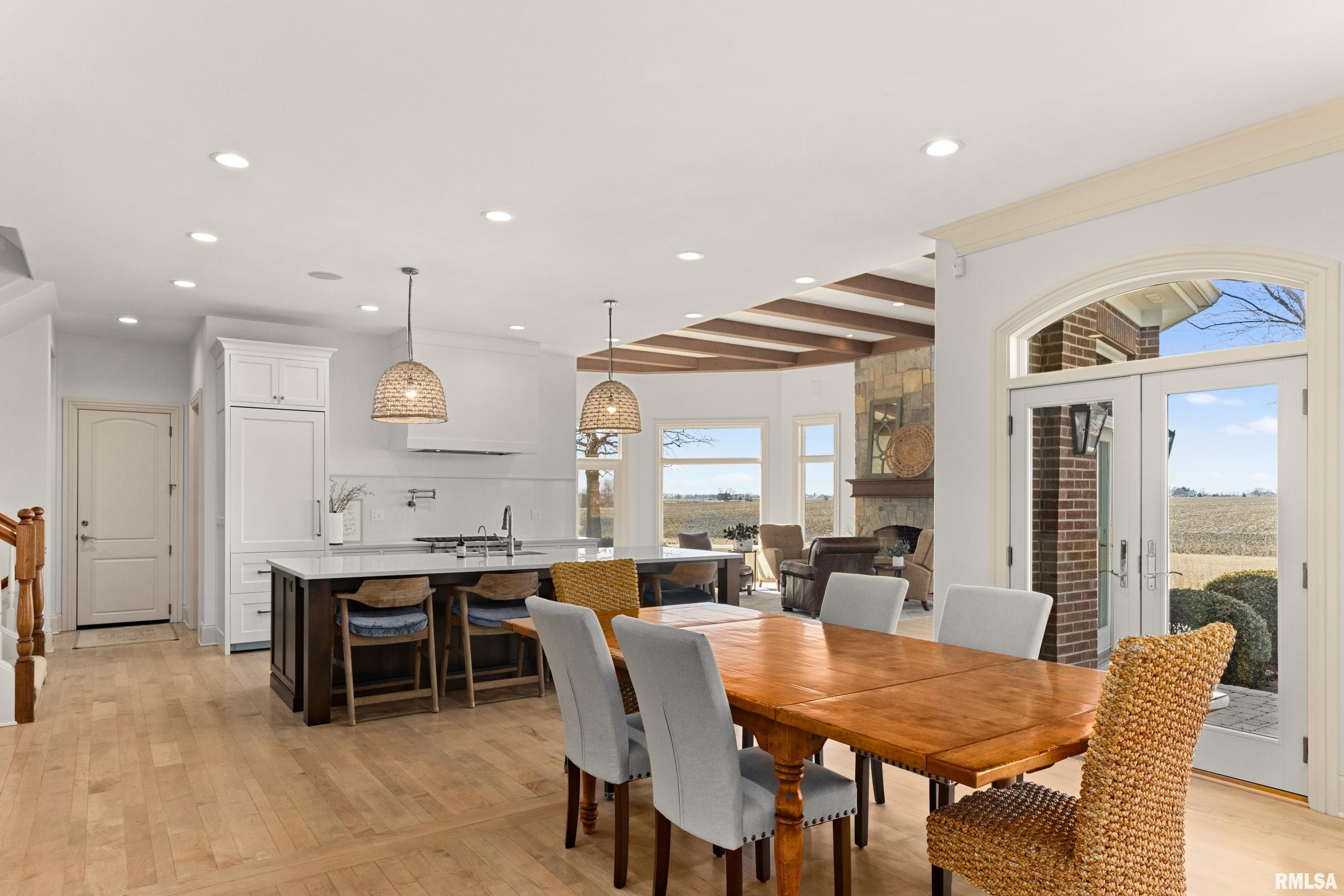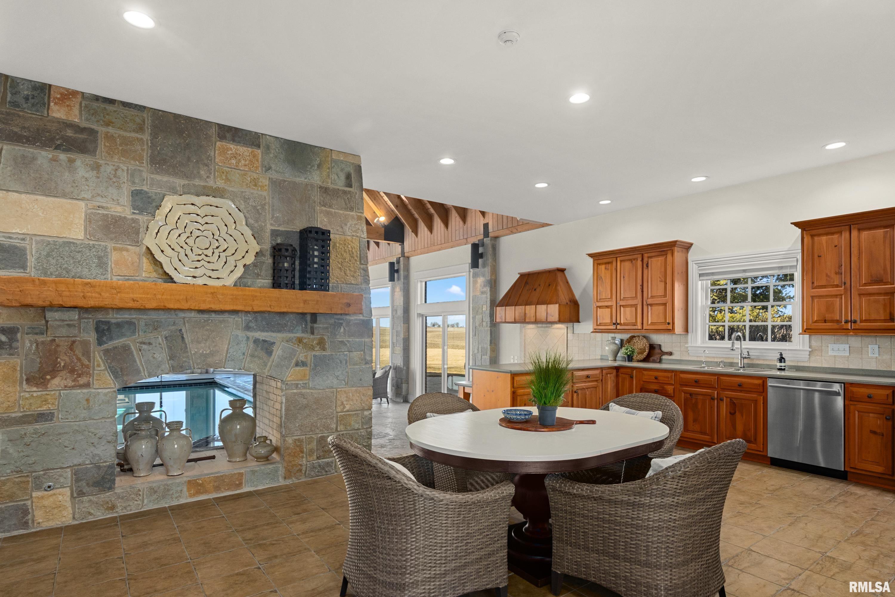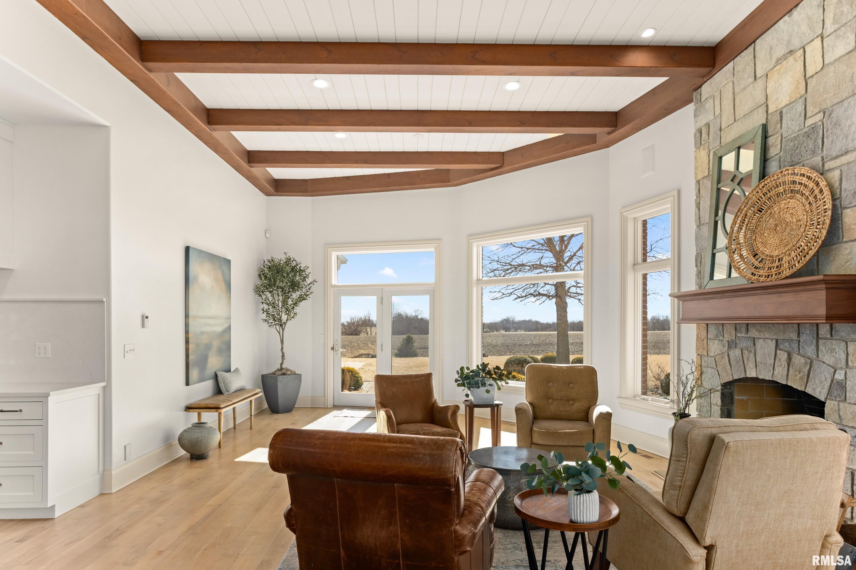 A rare opportunity to own this one owner custom built Georgian Colonial Estate offering refined craftsmanship, architecture, design & exceptional scale on 5.2 private acres! Meticulously maintained all brick residence w/cedar accents features 4 full masonry fireplace & chimney systems, over 10,000 sq ft finished living space incl. finished basement, extensive custom millwork, Andersen windows, many recent updates, open flr plan yet inviting cozy spaces to enjoy! Solid Mahogany front dr opens to a grand 2-story foyer w/sweeping curved staircase setting the tone for the quality found throughout. Main level showcases refinished maple hardwood flrs, 10 ceilings w/12 ceilings in hearth rm w/exposed wood beam tongue & groove ceiling, frpl, expansive views of backyard w/access to back patio areas. Completely renovated Chefs Kitchen in 24 w/custom cabinetry, quartz countertops, high end appl, lg island w/seating, pantry, all centered between great rm, dining areas & hearth rm! Formal living/piano rm w/frpl is another beautiful space to enjoy! Very inviting climate controlled indoor pool rm to be enjoyed year around w/30 vaulted ceiling, 2nd kitchen, dining/gathering space, 2 full BA & laundry. 2nd story features 9 ceilings, primary suite w/attached study/office, 2 ensuites, 4th BR shares full BA, lg laundry rm & bonus rm above garage w/charming dormers & flexible living space. 3rd level offers future expansion potential! Ideal location between Peoria & Bloomington!