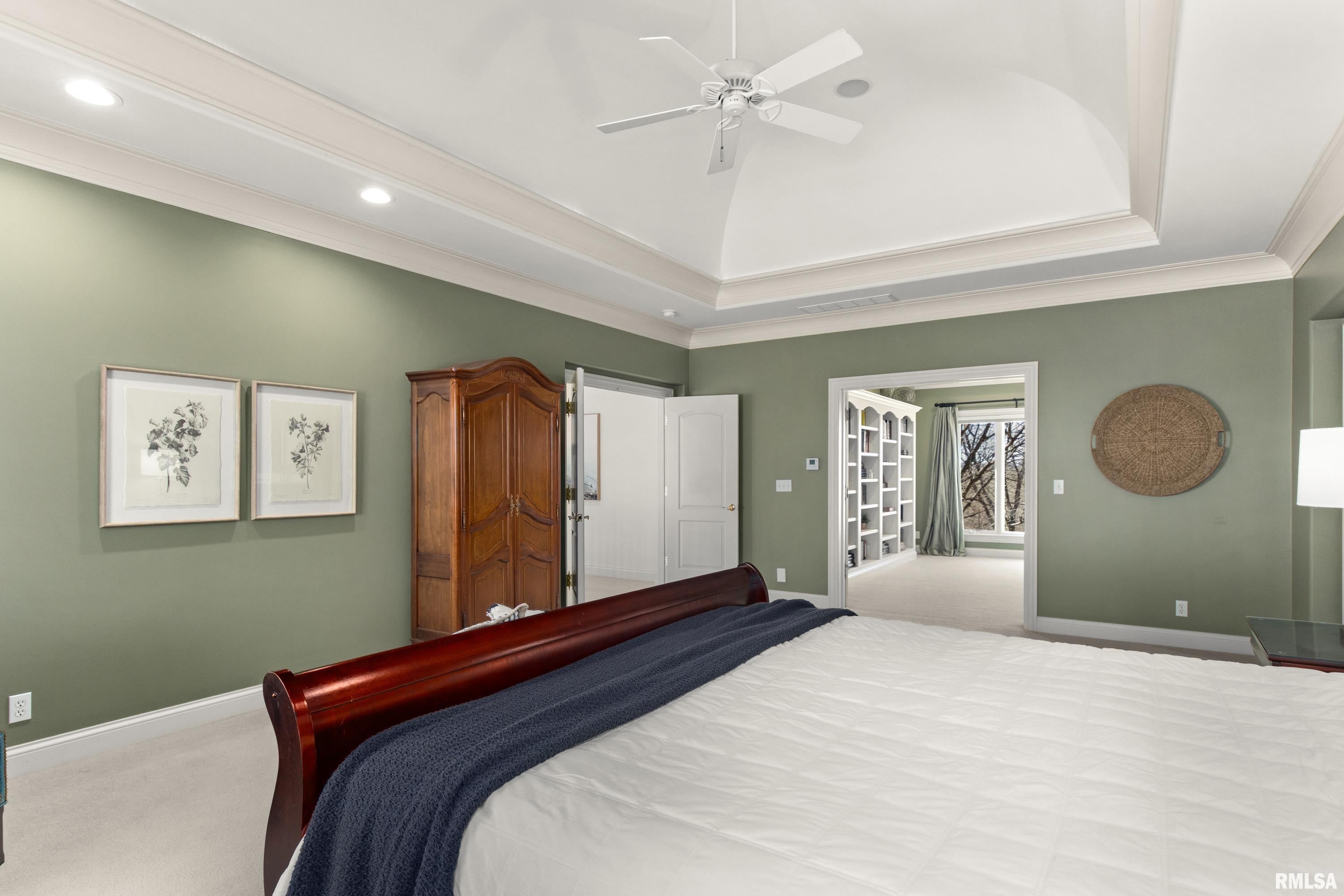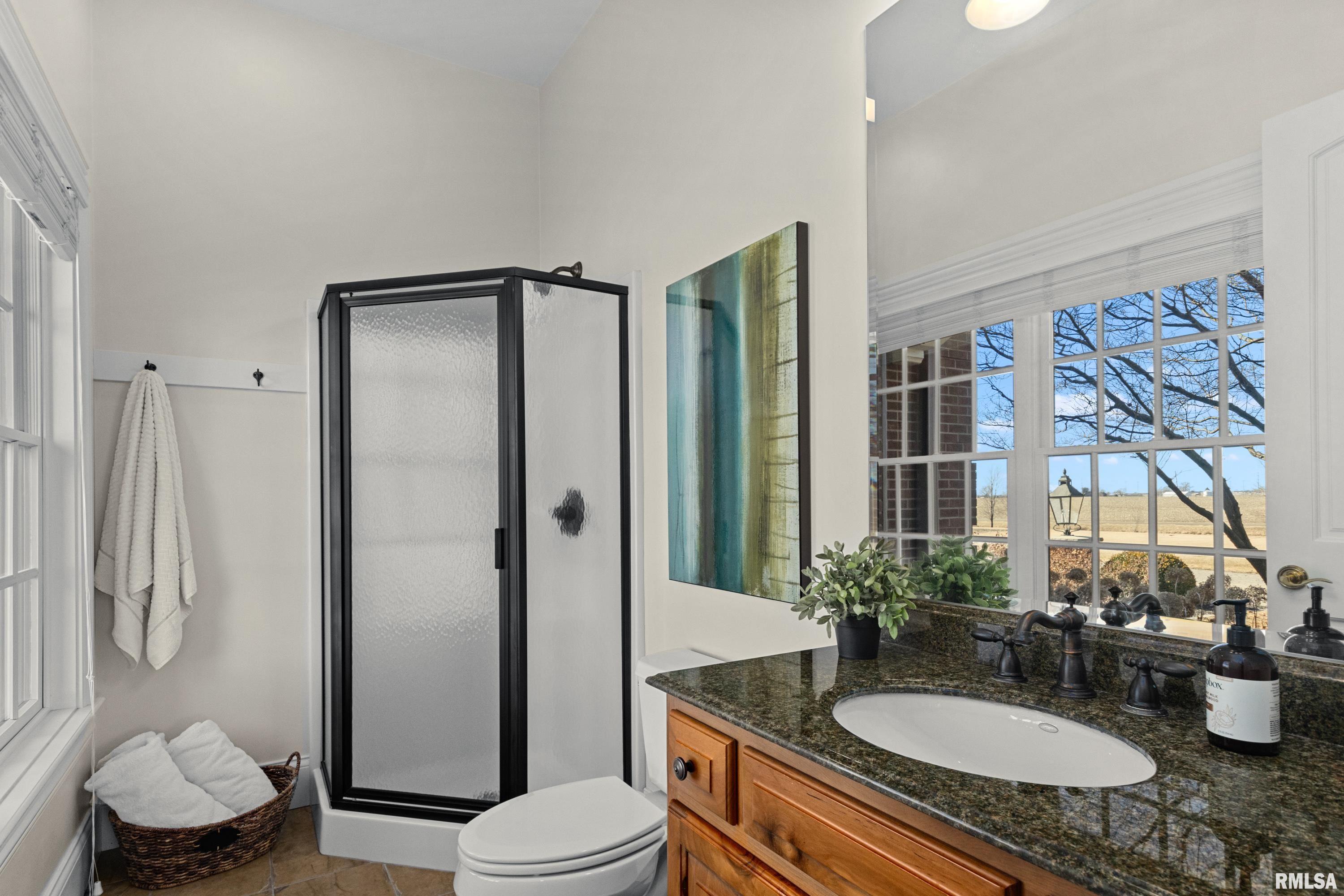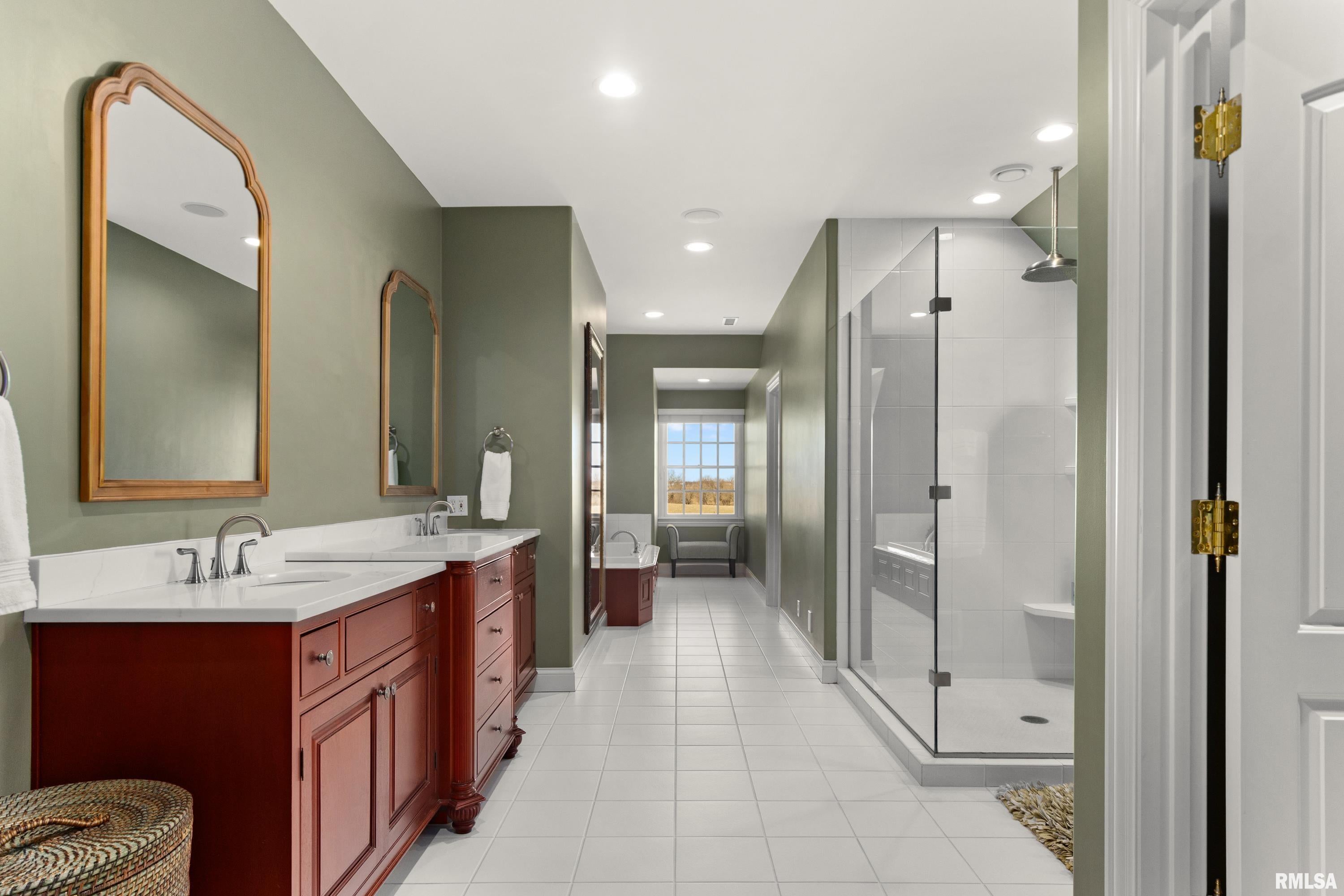 Discover refined living in this stunning brick estate, privately nestled on 1.2 beautifully landscaped acres in the prestigious Hawthorne Acres subdivision. With over 9,500 sq ft of exceptionally designed living space, this 5-bedroom, 5 full bath, 2 half bath residence offers the perfect balance of everyday comfort and elevated entertaining with Majestic design. A grand two-story foyer with a sweeping curved staircase sets the tone upon entry. The main living room features vaulted ceilings, custom built-ins surrounding the fireplace, and a dramatic wall of windows framing serene views of the grounds. Nearby, the inviting south-facing sunroom, finished in elegant travertine, provides a warm and relaxing space to enjoy every season. Designed for those who appreciate both function and beauty, the gourmet kitchen includes abundant cabinetry, a large island with a 6-burner cooktop, double ovens, a Sub-Zero refrigerator, tiled backsplash, and a walk-in butlers pantry with built-in desk space. The adjoining family room, brick-surround fireplace, and main floor laundry enhance the ease of daily living. The main-floor primary suite serves as a private retreat, offering a spacious walk-in closet and a spa-inspired bathroom with dual vanities, a whirlpool tub, and a travertine-tiled shower with a new glass enclosure. Upstairs, a private back staircase leads to three generous bedrooms, each with their own en-suite bathroom and walk-in closet, as well as a large bonus room offering flexible use for study, play, or quiet relaxation. The full walkout lower level is thoughtfully designed for hosting and leisure, featuring a spectacular wet bar, a comfortable family/theater room, a steam shower bath, a dedicated exercise room with cushioned flooring, and a bright recreation or office space that opens directly to a peaceful patio and backyard setting. Storage throughout the home is abundant, and the four-car attached garage provides both convenience and capacity. Notable recent updates further enhance the homes value and peace of mind, including a CertainTeed impact-resistant 50-year roof (2021), hot water heater (2021), a 24 kW natural gas whole-house generator (2022), and all three central AC units and the main furnace replaced in 2022, along with fresh paint, new carpet, and updated window treatments in the primary suite. This exceptional property built by Ross Campbell, offers luxury, privacy, and timeless design-an extraordinary opportunity in one of Bloomingtons most sought-after neighborhoods.