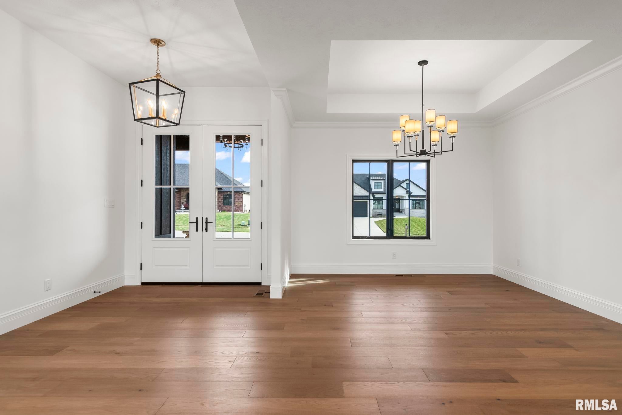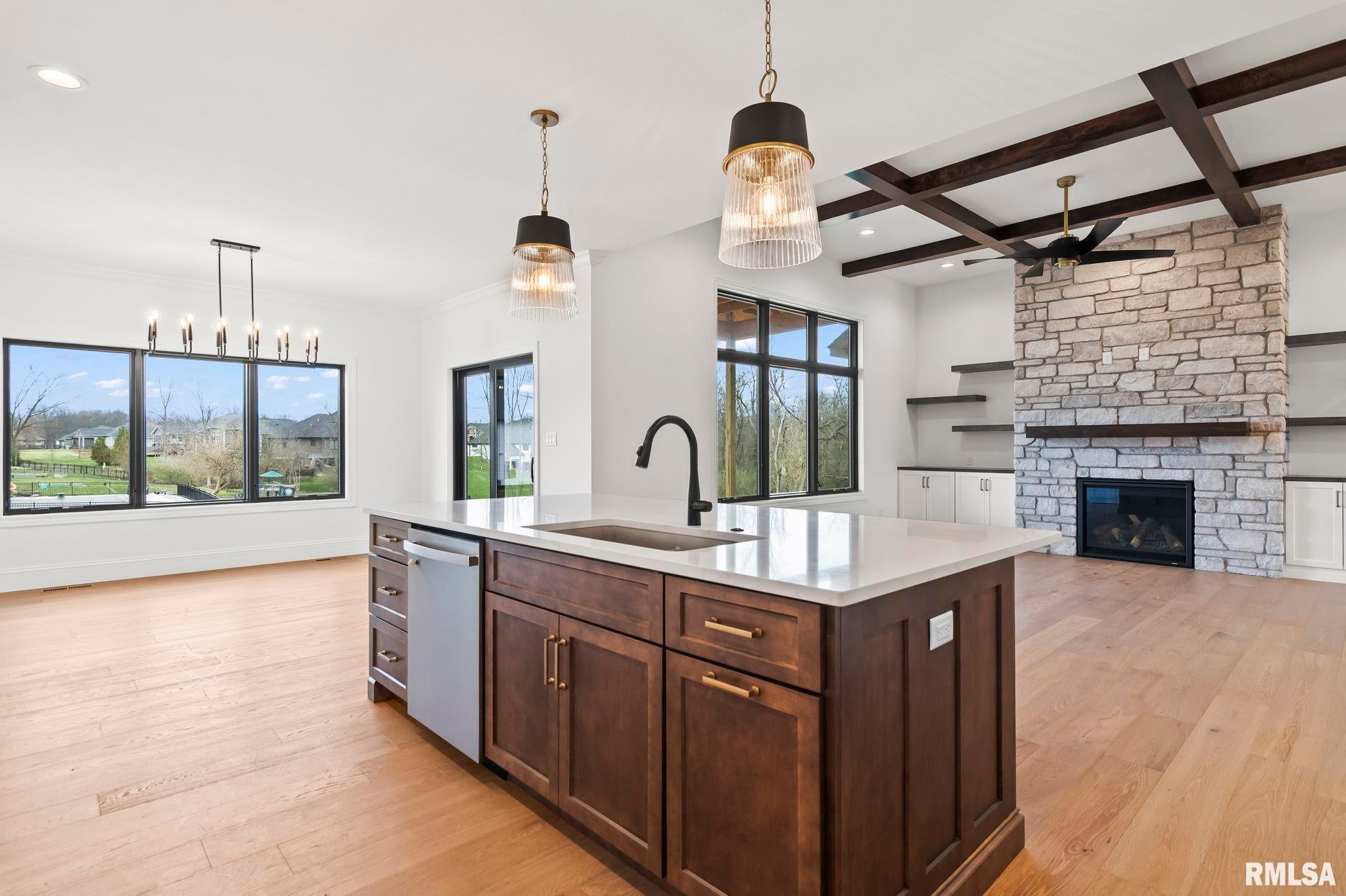 Wait to be impressed! Rare opportunity to own a truly exceptional lakefront retreat on Lake Springfield! This stunning custom-built 5-bedroom, 3.5-bath ranch w/ fully finished walkout basement is perfectly positioned on a beautifully landscaped .88-acre wooded lot tucked away on a quiet culd-e-sac. From the moment you arrive, youll appreciate the peaceful setting along with direct water access featuring a private dock&boat lift-ideal for embracing the ultimate lake lifestyle. Step inside to discover soaring ceilings, rich hardwood flooring, & impeccable attention to detail throughout. The showpiece of the home is the beautifully redesigned (2026) chefs kitchen featuring elegant quartz countertops, a spacious center island, oven, gas range, and an oversized walk-in pantry. The bright & inviting eat-in kitchen flows seamlessly to an expansive deck, creating the perfect space for entertaining or enjoying quiet mornings overlooking the water. Addtl highlights include Pella windows, whole-house audio, & a fully irrigated lawn, all enhancing the homes comfort & convenience. The thoughtfully designed main level offers a stylish drop zone, private office, & a luxurious primary suite w/ expansive walk-in closet. The fully finished walkout basement is equally impressive, offering a second full kitchen, expansive recreation area, family room, craft room & 5th bedroom. This one of a kind property offers the perfect blend of luxury, privacy & lakefront property.