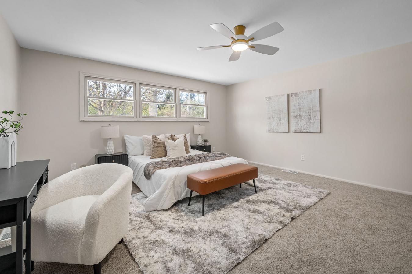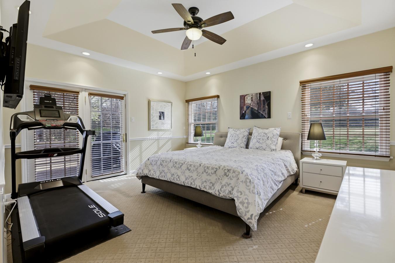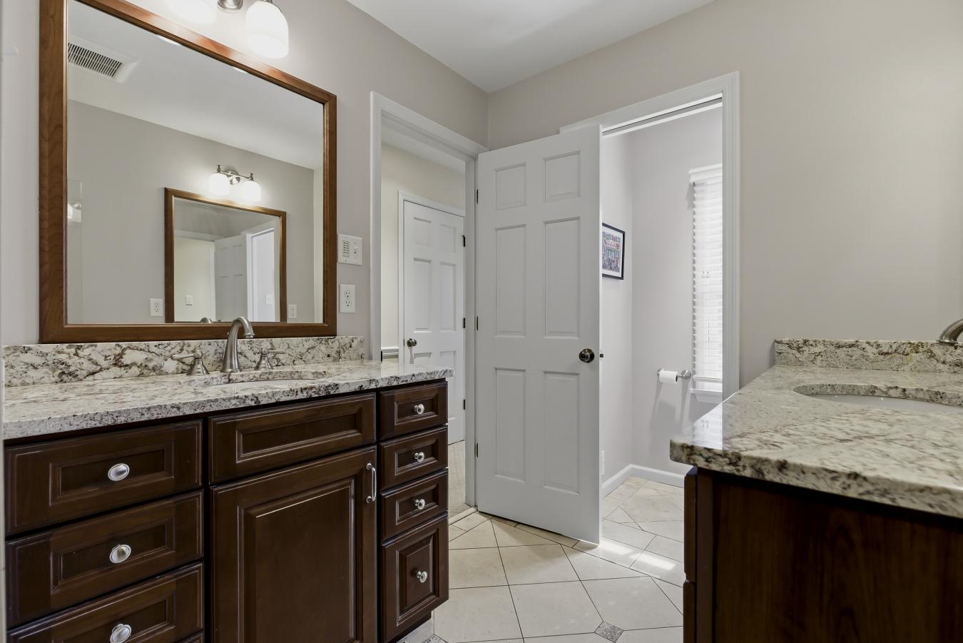 Situated on a1-acre estate lot within a coveted lake and park community, this newly renovated full-brick residence offers over 4, 800 finished square feet of exceptional design, craftsmanship, and generational versatility. Timeless original millwork blends seamlessly with custom architectural details, creating warmth and sophistication throughout. The gourmet kitchen is a true showpiece, appointed with high-end appliances, quartz countertops, custom cabinetry, designer tile backsplash, a statement range hood, and a striking custom butlers arch crafted for both elevated entertaining and refined everyday living. Designed for flexibility, the home features dual primary suites on the main and upper levels, ideal for multigenerational living or private guest accommodations. The main-floor primary suite is complete with a private sitting area, full-wall closet, and en-suite bath. Upstairs, a second primary suite provides a true retreat with private balcony access plus a dedicated dressing room with closet space for effortless organization. Two additional upper-level bedrooms also feature balcony access, enhancing architectural interest and natural light. The finished lower level expands the living experience with a wet bar, half bath, expansive recreation room, and abundant storage. Exterior features include a stately brick porch and walkway, a sweeping circle drive, oversized two-car garage with built-in storage closets, and a distinctive half-moon patio with garden walkwayperfect for intimate evenings or larger gatherings. Three fireplacesincluding a gas focal point and two original surround electric-ready add architectural character and ambiance. A full-home electrical rewire ensures modern reliability behind its timeless aesthetic. With exclusive resident access to a private lake and park, this property delivers not simply upscale square footage but also lifestyle, legacy, and enduring value.