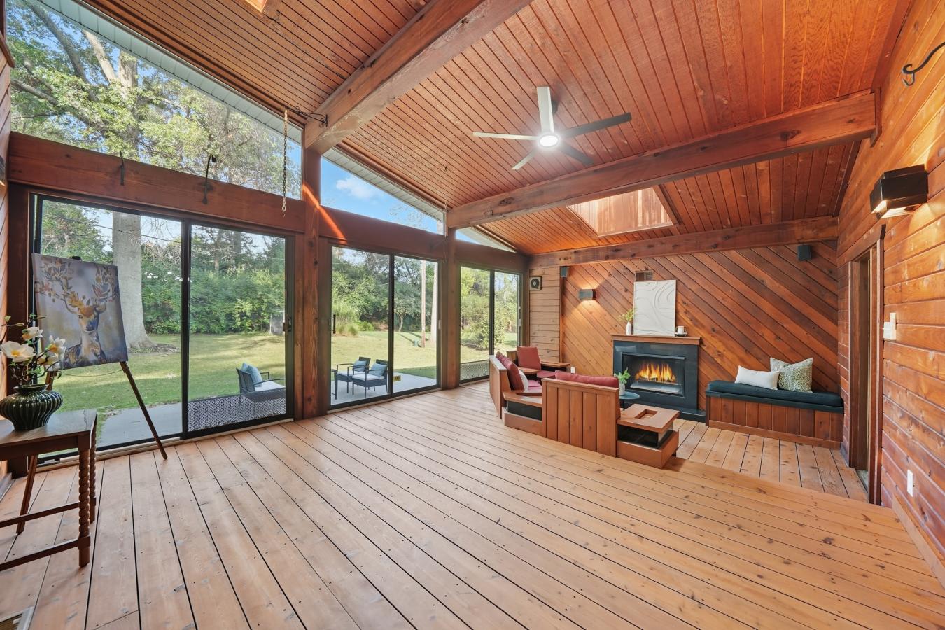 Tucked at the end of a private cul-de-sac on 1.87 acres, this 4,600 square foot mid-century modern residence delivers an exceptional blend of architectural sophistication, privacy, and scale, all within the award-winning Ladue School District. Designed with intention, the home offers four bedrooms, four-and-a-half baths, and a gracious, flowing floor plan that effortlessly accommodates both intimate daily living and elevated entertaining. Recent enhancements - including fresh paint throughout, like-new carpet, upgraded lighting, and newer blinds - lend the interiors a crisp, contemporary feel. The dramatic vaulted living room is anchored by a cozy fireplace and framed by a striking wall of windows that captures views of the patio and pool beyond. Stunning kitchen is a true design statement, featuring flagstone flooring, rich hardwood cabinetry, marble and stainless-steel countertops, and a curated suite of designer appliances. Two additional living spaces provide exceptional flexibility for gathering and entertaining, each offering direct access to the rear patio and pool. The main-floor primary suite serves as a private retreat, complete with dual full baths, walk-in closets, a spacious sleeping area, and direct access to a secluded patio. Additional modern upgrades include whole-home Legrand switches and outlets, smart thermostats, and fully updated hardwired and wireless networking. The lower level now features a newly added egress window, while the remodeled pool bathroom enhances convenience for outdoor living. Outdoors, the property unfolds into multiple patios, a beautiful in-ground pool, and meticulously landscaped grounds-ideal for both quiet relaxation and entertaining at scale. Additional amenities include a large laundry room, three-car garage, generator, and inground sprinkler system. A rare offering of refined luxury in one of Frontenacs most coveted settings!