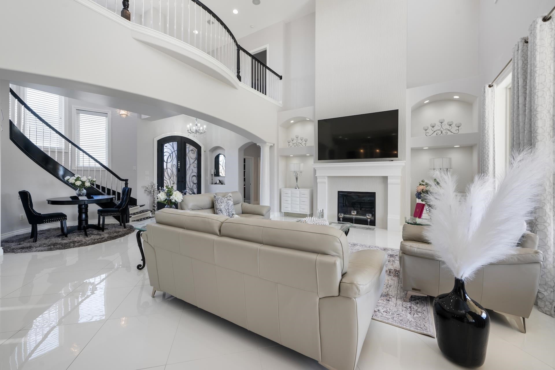 Looking for an exquisite living experience? This completely custom home has a grand entrance and a great room with soaring 25 ceilings, a magnificent fireplace and a one of a kind wrap around staircase.