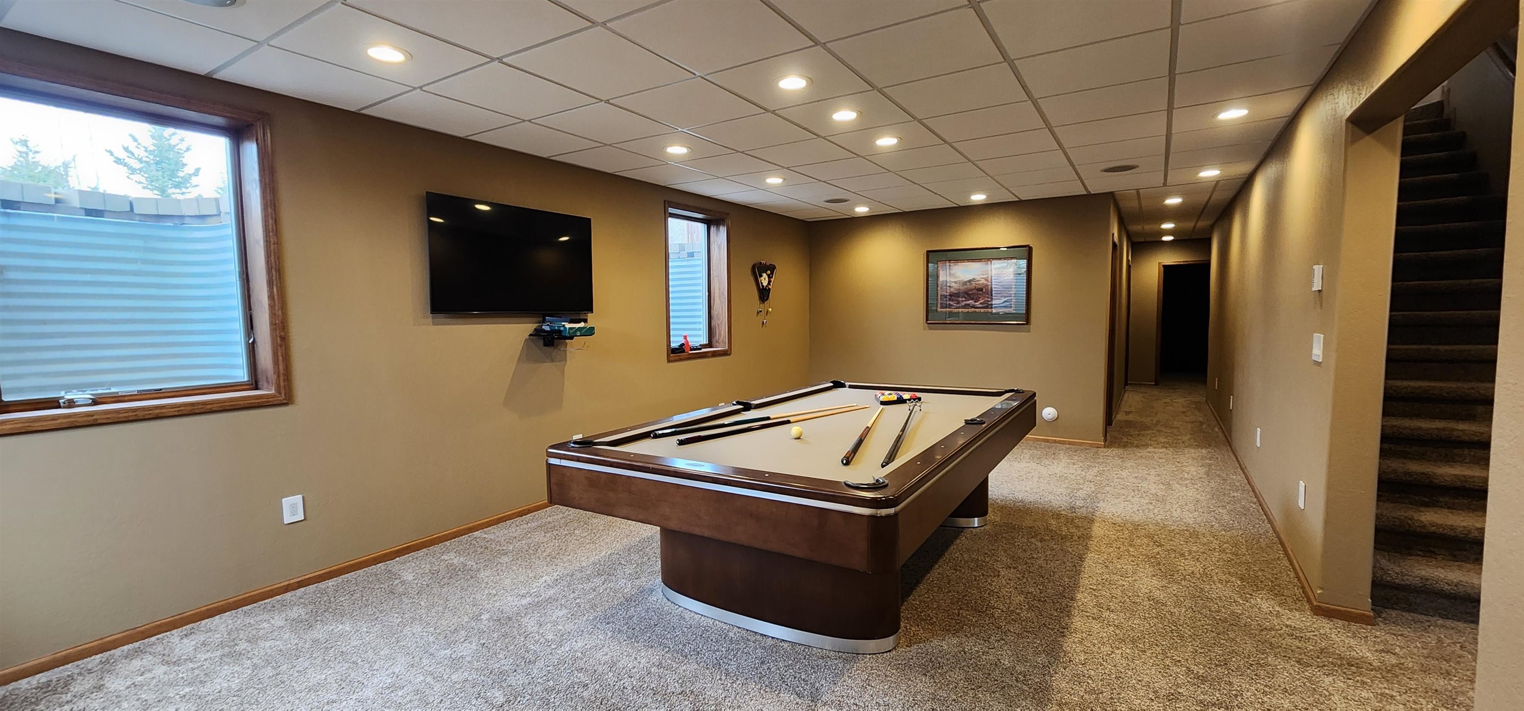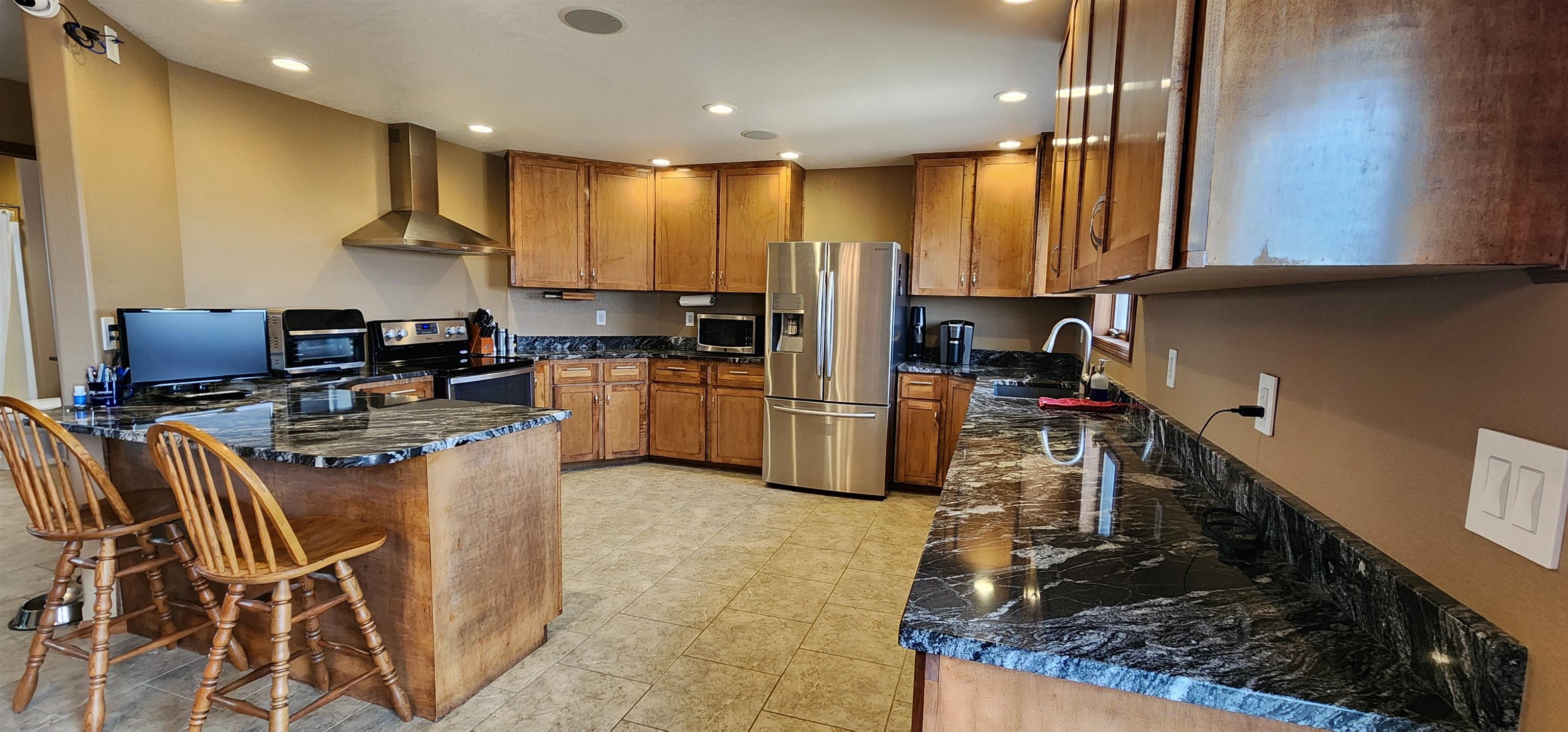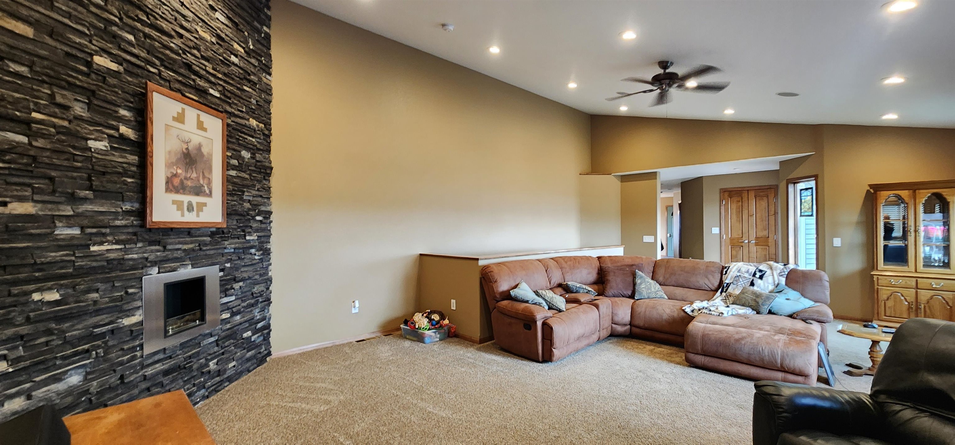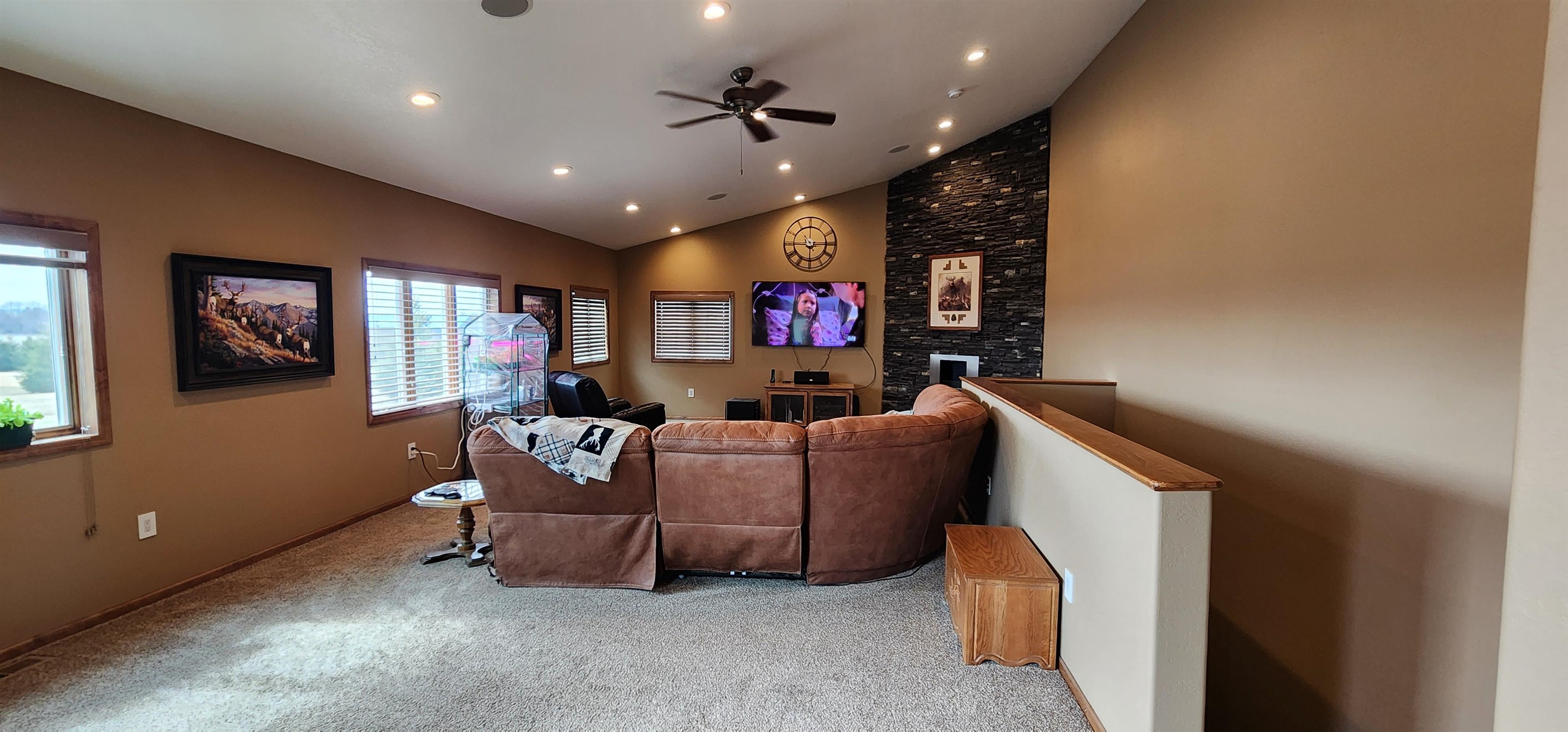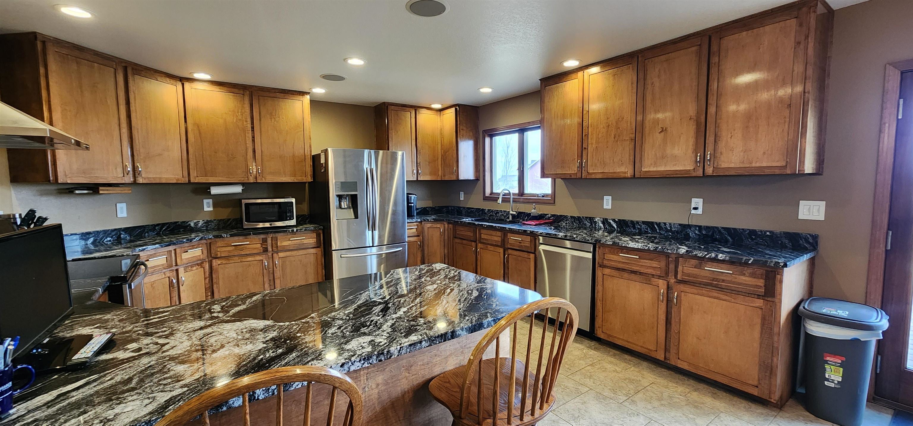 Introducing a truly special property that combines stunning lakefront views with the perfect blend of luxury and comfort. Situated on 10 acres, this 4, 268 sq ft home offers panoramic lake views from every east-facing window, making every sunrise a sight to behold.As you drive up the private driveway, youll immediately notice the peaceful surroundings and the sense of privacy this property offers. The stamped concrete walkway leads you to a welcoming front entrance, where youll step inside to find tall ceilings, abundant natural light, and thoughtfully chosen finishes throughout.The heart of the home is the kitchen, designed with attention to detail and quality in mind. Handcrafted Knotty Alder cabinetry, under-cabinet lighting, granite countertops, and Thermador appliances come together to create a space where cooking and gathering feel effortless. The kitchen flows seamlessly into the living room, anchored by a beautiful double-sided stone fireplace--perfect for cozy evenings and lively gatherings alike.The main floor also features a versatile office (or additional bedroom), a laundry room, and two bedrooms, including a spacious primary suite. The primary suite is a retreat in itself, with custom built-ins, motorized shades, and an ensuite bathroom that feels like a personal spa--complete with quartz countertops, a jetted tub, and heated marble floors.The finished basement adds even more living space, with three additional bedrooms, a bathroom, a large utility room, and a generous family room thats ready for movie nights, game days, or simply relaxing with friends. A wet bar with a SodaStream fridge and wine cooler adds a touch of fun and practicality to this versatile space.The propertys outdoor amenities are just as impressive. A large deck overlooks the lake, perfect for enjoying the views with a cup of coffee or hosting summer barbecues. The 60x120 shop is ideal for any hobbyist or entrepreneur, equipped with insulated service doors and floor drains.This home is also outfitted with modern conveniences like an air purification system, Control 4 smart home automation, and surround sound throughout--including on the deck. With plenty of storage space, a four-stall heated garage, and lush landscaping, this property is designed for easy living and making the most of every moment.All thats left is for you to move in and start enjoying everything this incredible property has to offer.
