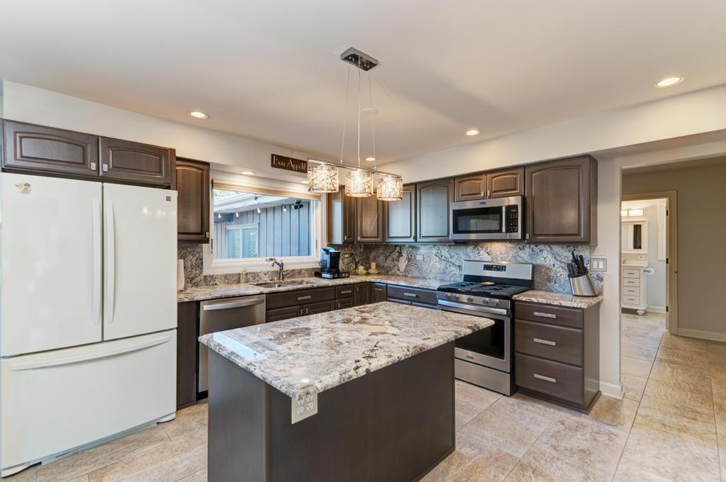 Welcome to this well-maintained home in the Wallin Woods subdivision, offering approximately 2,633 square feet of living space. The main level features a functional layout with a private office, a 4-season sunroom, and connected living areas that provide flexibility for everyday living. The kitchen was remodeled in 2020 and includes granite countertops, updated cabinetry, and stainless steel appliances, including a 6-burner cooktop and double built-in oven. The adjacent family room features a gas fireplace and natural light from rear-facing windows. The second level includes a primary suite with a cathedral ceiling, an oversized closet, and a private bath with double sinks, a soaking tub, and a separate shower. Three additional bedrooms provide ample space along with a full hall bathroom. The unfinished basement offers additional space for storage or future finishing. Recent updates include Marvin windows and French doors (2023), a tankless water heater (2021), and a radon mitigation system. The exterior features a landscaped yard with mature trees, a paver patio with a dedicated grill area, and a fully fenced backyard (2023). The property also includes an attached 2-car garage and concrete driveway. Located within walking distance to Downtown Plainfield, with access to local dining, retail, parks, and trails, and convenient access to Route 59, I-55, and I-80.