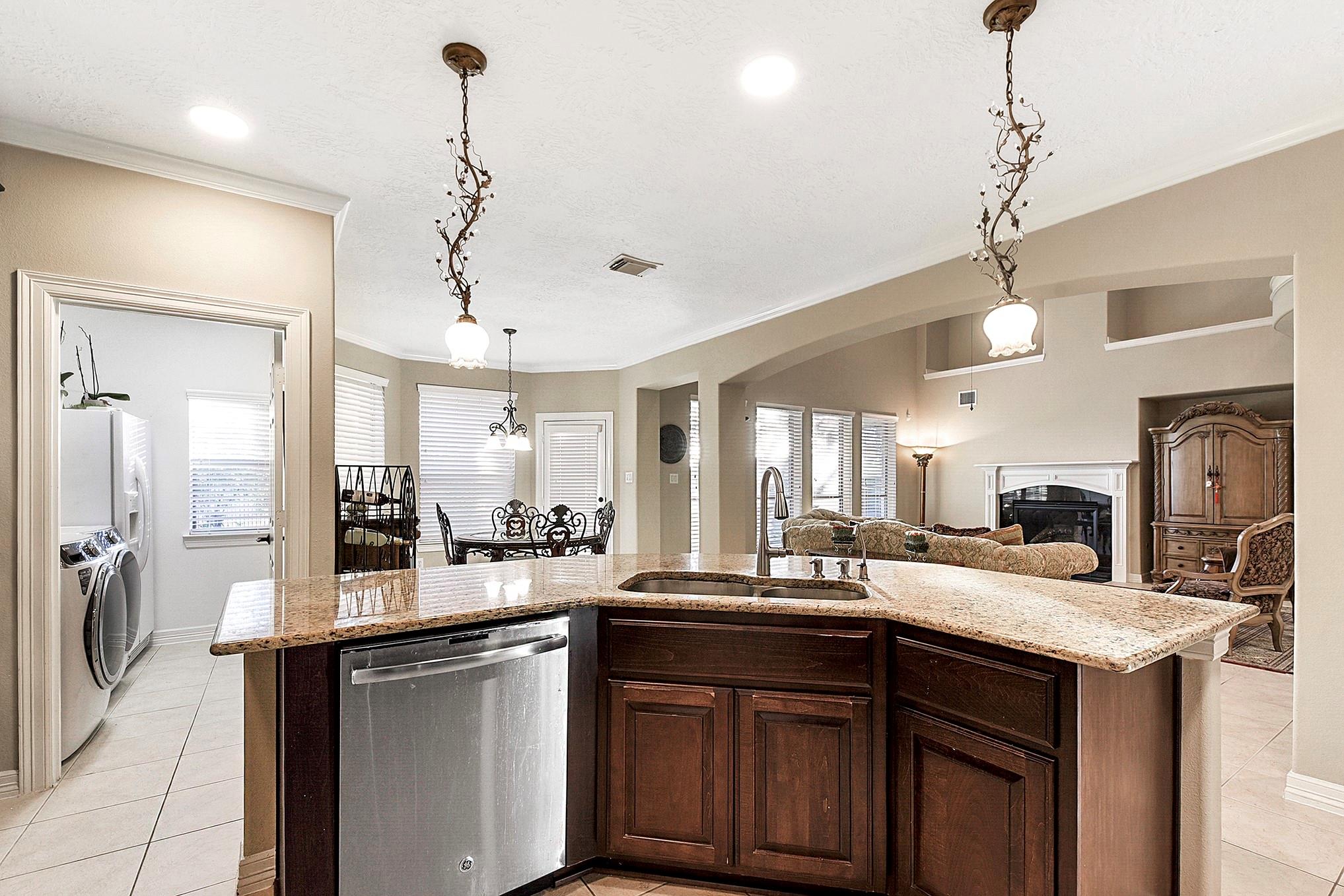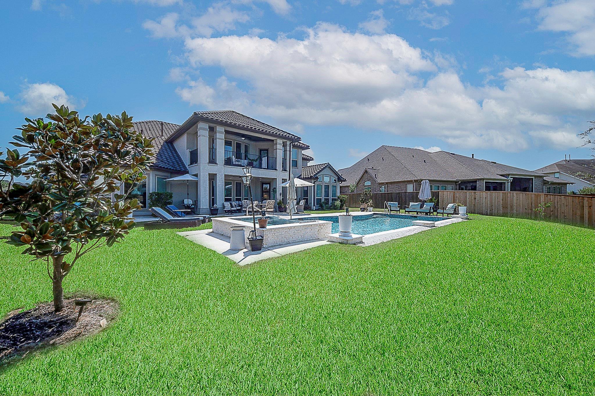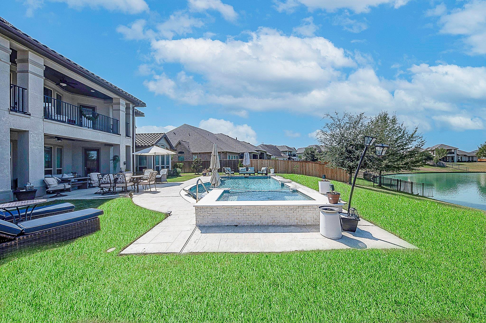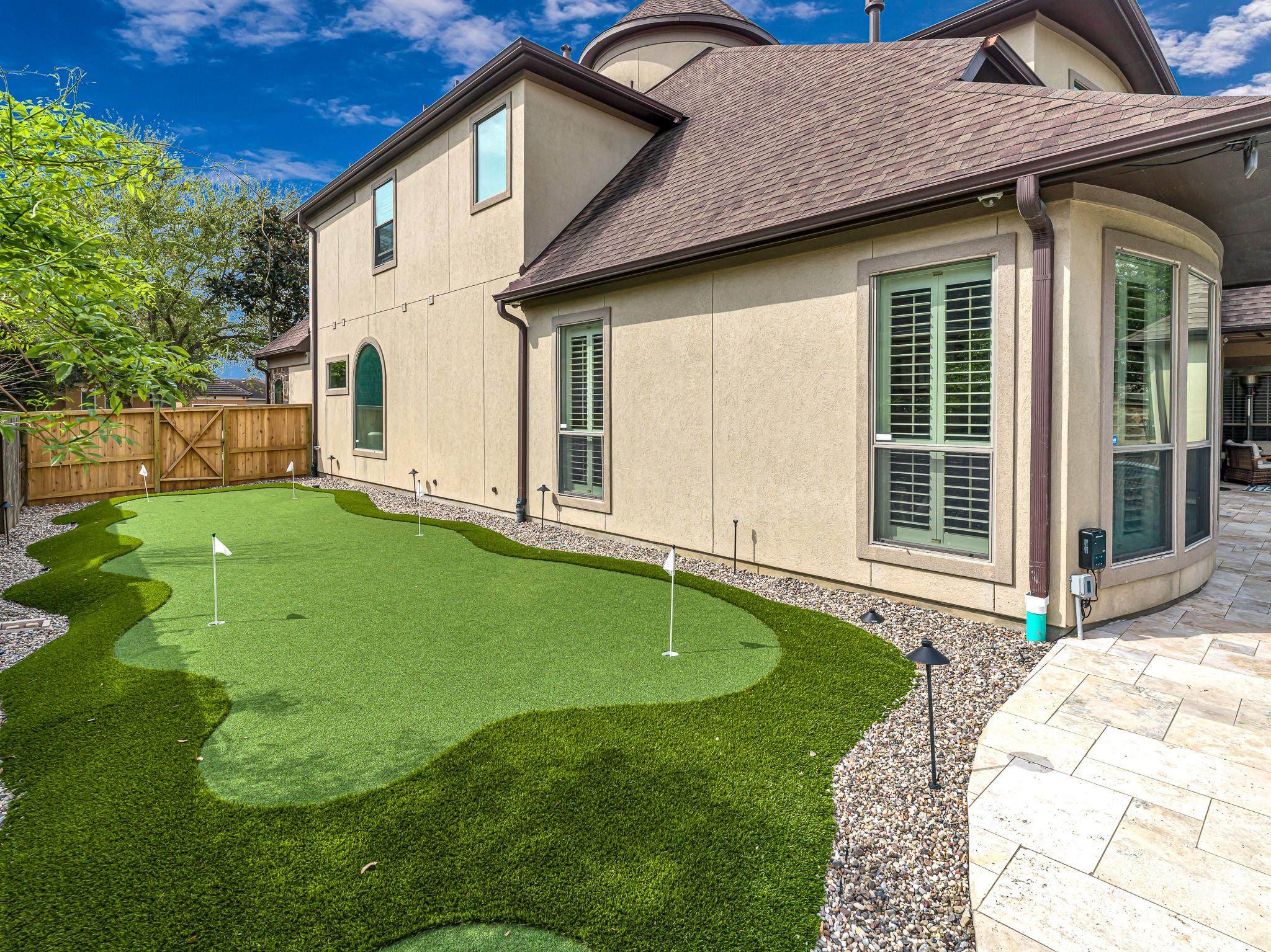 Experience LUXURIOUS living in this stunning Ronnie Carroll CUSTOM HOME located in the exclusive GATED COMMUNITY of The Reserve at Spring Lake in Cinco Ranch. Designed for both relaxation & entertaining, this home features a one-of-a-kind OUTDOOR OASIS complete w/a sparkling POOL/SPA, travertine decking, a large COVERED SOCIAL AREA w/ dining, 2-livings, a cozy FIREPLACE, OUTDOOR KITCHEN, PUTTING GREEN, gas FIRE PIT, & an outdoor bath.The 1-floor showcases SOARING CEILINGS, a grand staircase, service staircase, formal dining, and an open-concept layout connecting the kitchen, family room, and breakfast area. The spacious kitchen includes a large island with bar seating, VIKING range & SUB-ZERO ref. Additional first-floor highlights include a secluded HOME OFFICE huge GAME ROOM w/patio access, and TWO BEDROOMS DOWNSTAIRS.2-floor features a SECONDARY PRIMARY SUITE, two bedrooms connected by a Jack/Jill bathroom, MEDIA ROOM, and a 2nd office. ***MUST SEE***LIST OF UPGRADES ATTACHED***