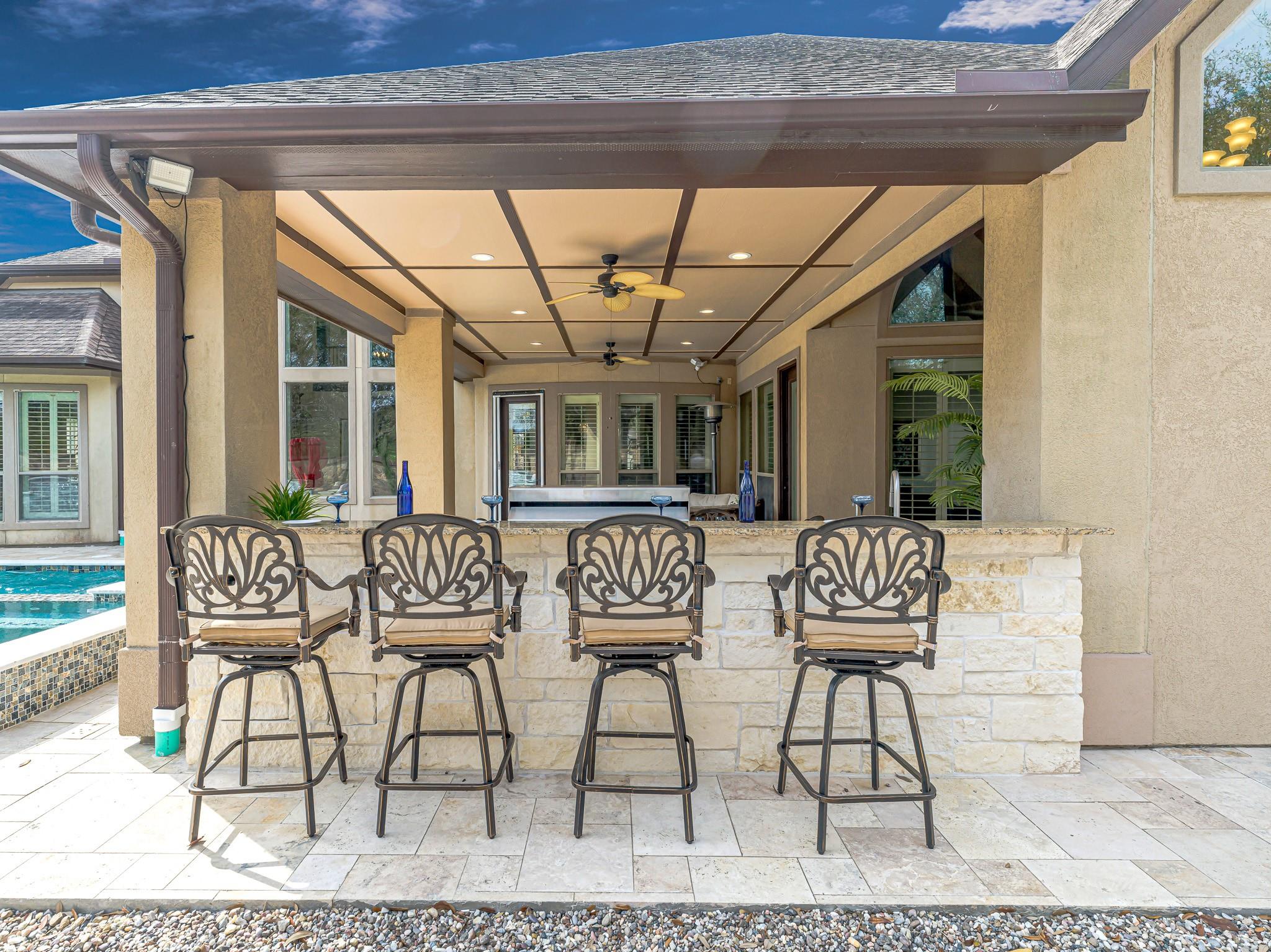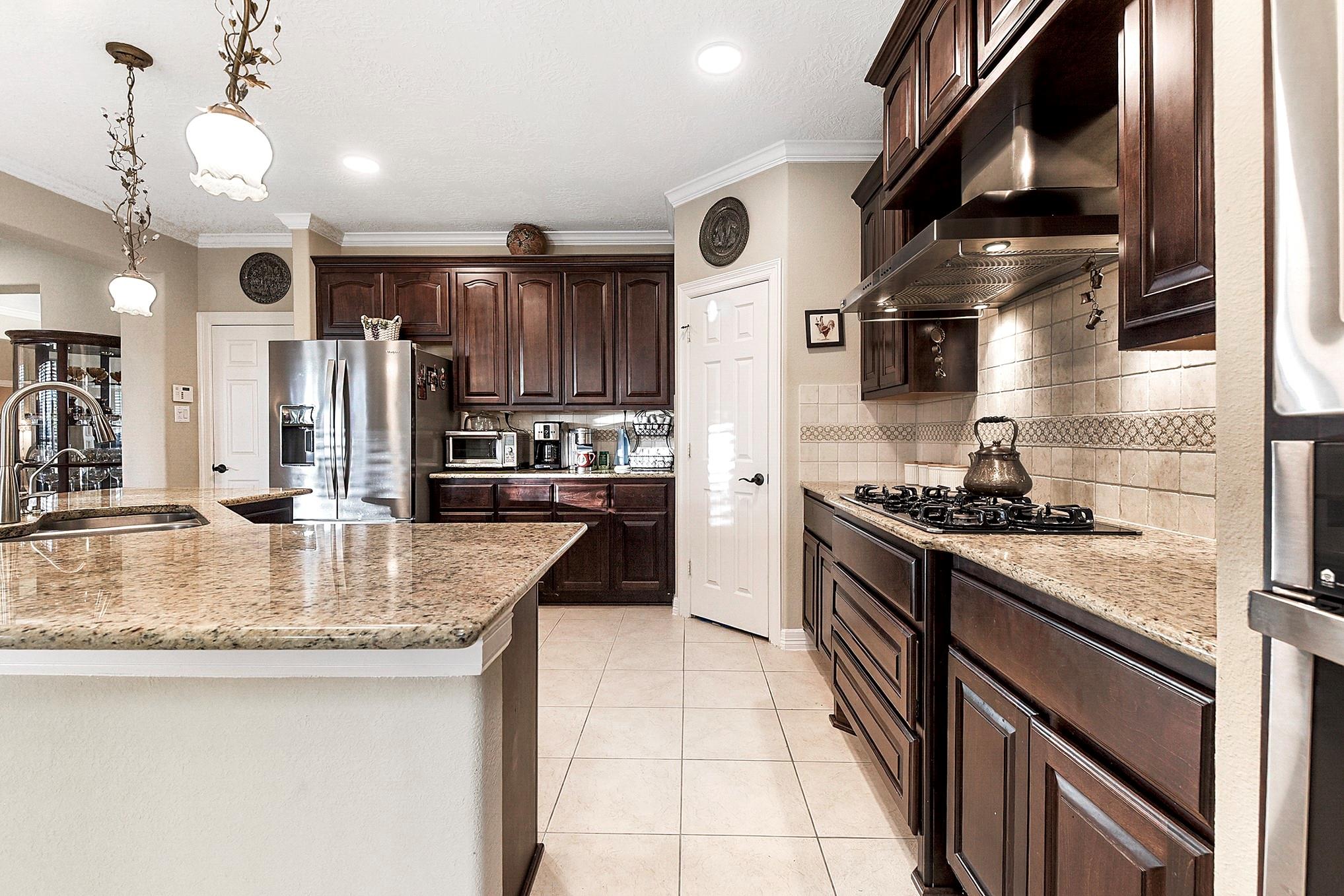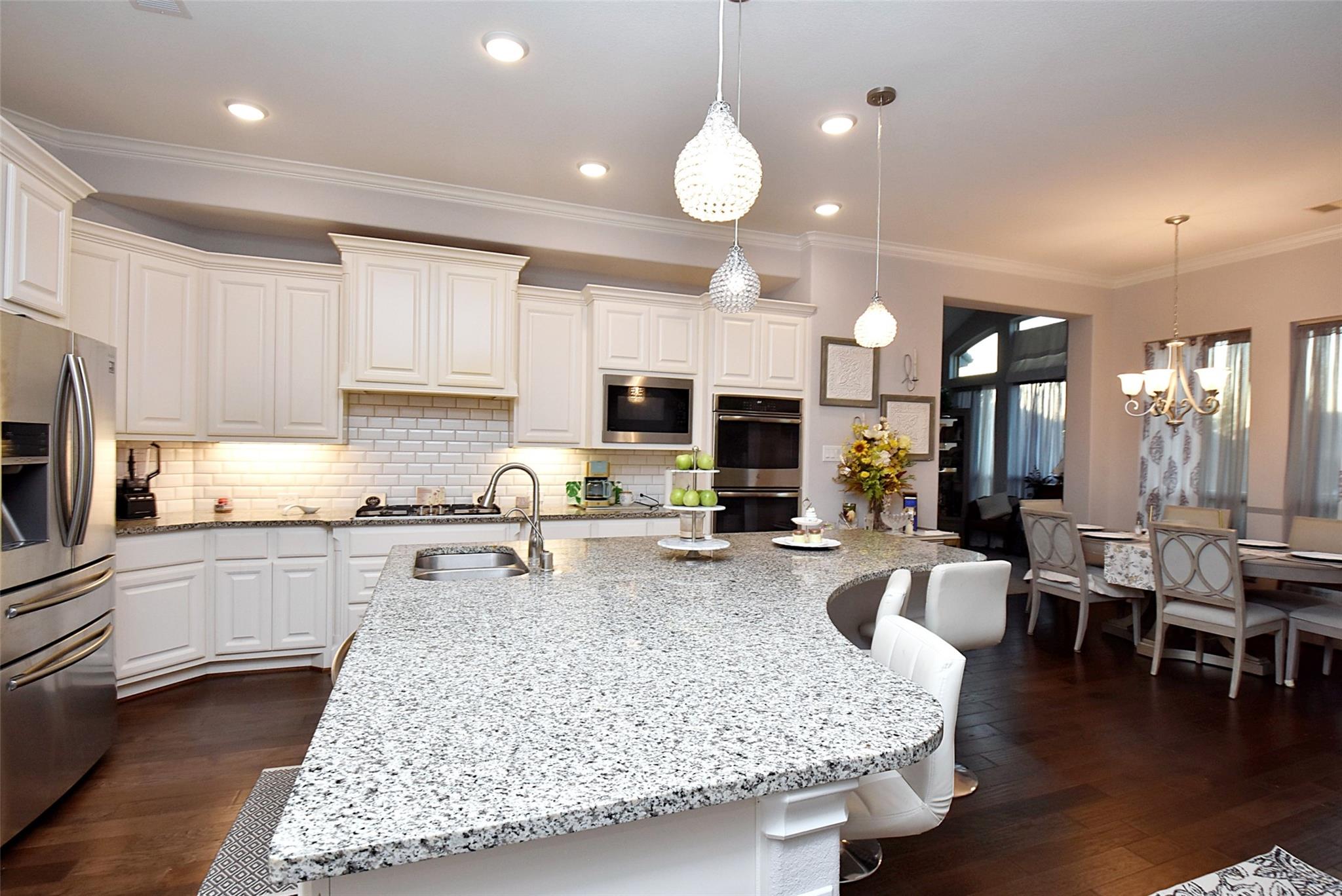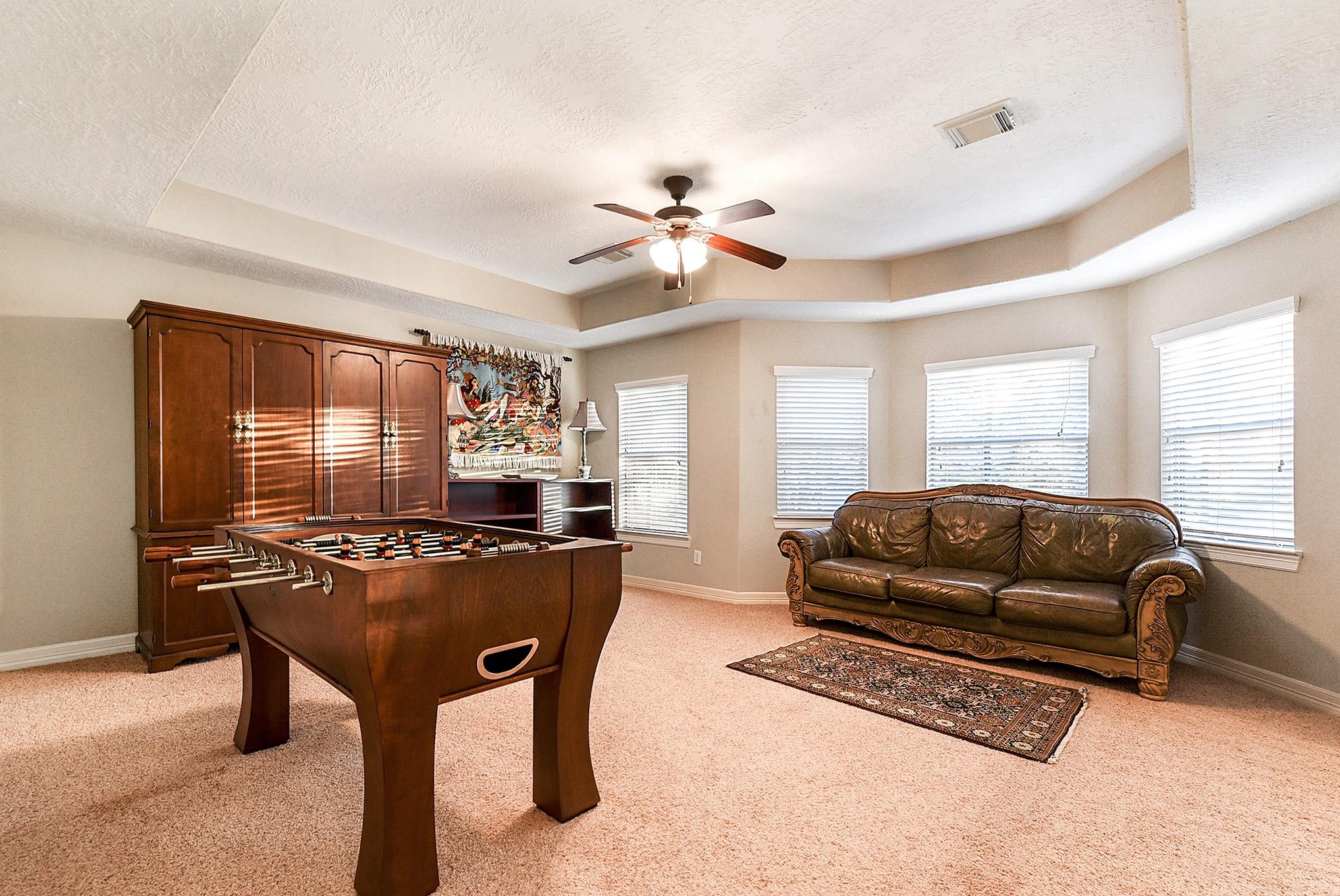 Experience LUXURIOUS living in this stunning Ronnie Carroll CUSTOM HOME located in the exclusive GATED COMMUNITY of The Reserve at Spring Lake in Cinco Ranch. Designed for both relaxation & entertaining, this home features a one-of-a-kind OUTDOOR OASIS complete w/a sparkling POOL/SPA, travertine decking, a large COVERED SOCIAL AREA w/ dining, 2-livings, a cozy FIREPLACE, OUTDOOR KITCHEN, PUTTING GREEN, gas FIRE PIT, & an outdoor bath.The 1-floor showcases SOARING CEILINGS, a grand staircase, service staircase, formal dining, and an open-concept layout connecting the kitchen, family room, and breakfast area. The spacious kitchen includes a large island with bar seating, VIKING range & SUB-ZERO ref. Additional first-floor highlights include a secluded HOME OFFICE huge GAME ROOM w/patio access, and TWO BEDROOMS DOWNSTAIRS.2-floor features a SECONDARY PRIMARY SUITE, two bedrooms connected by a Jack/Jill bathroom, MEDIA ROOM, and a 2nd office. ***MUST SEE***LIST OF UPGRADES ATTACHED***