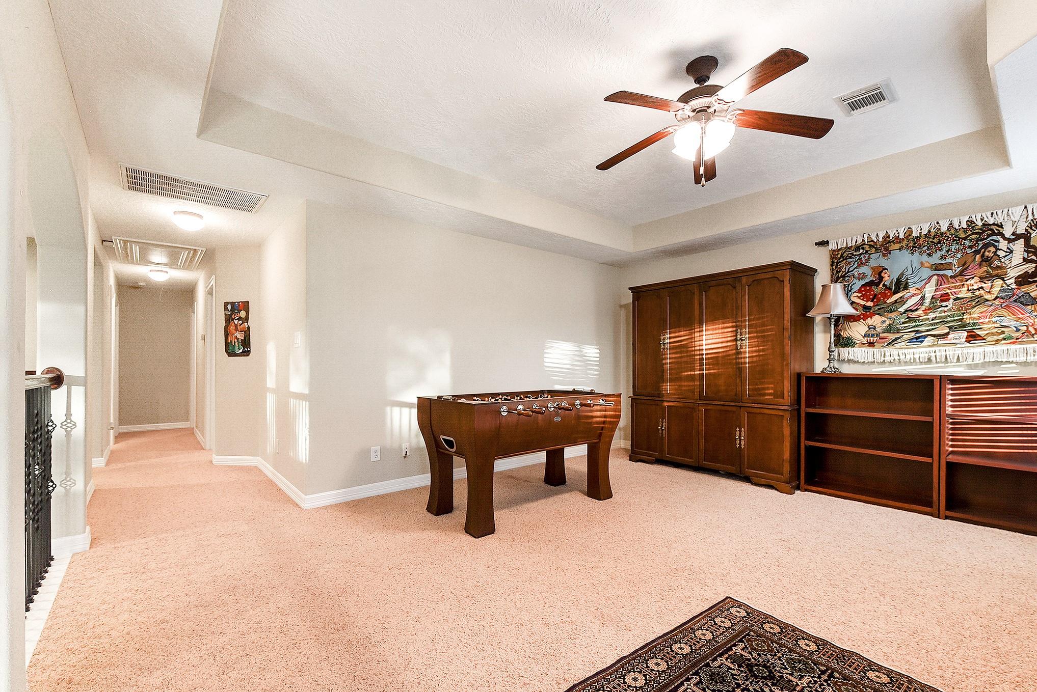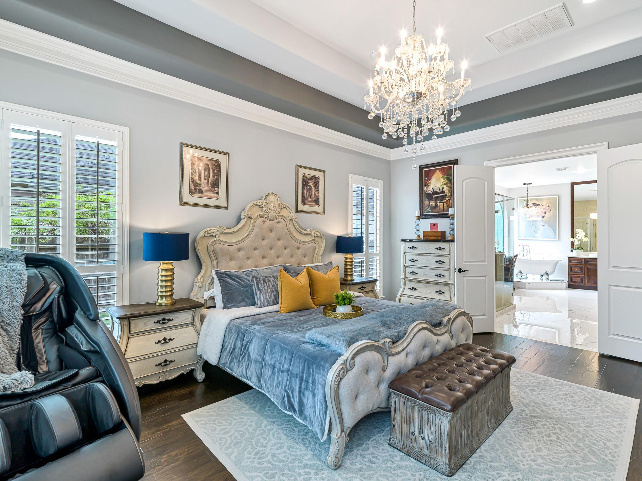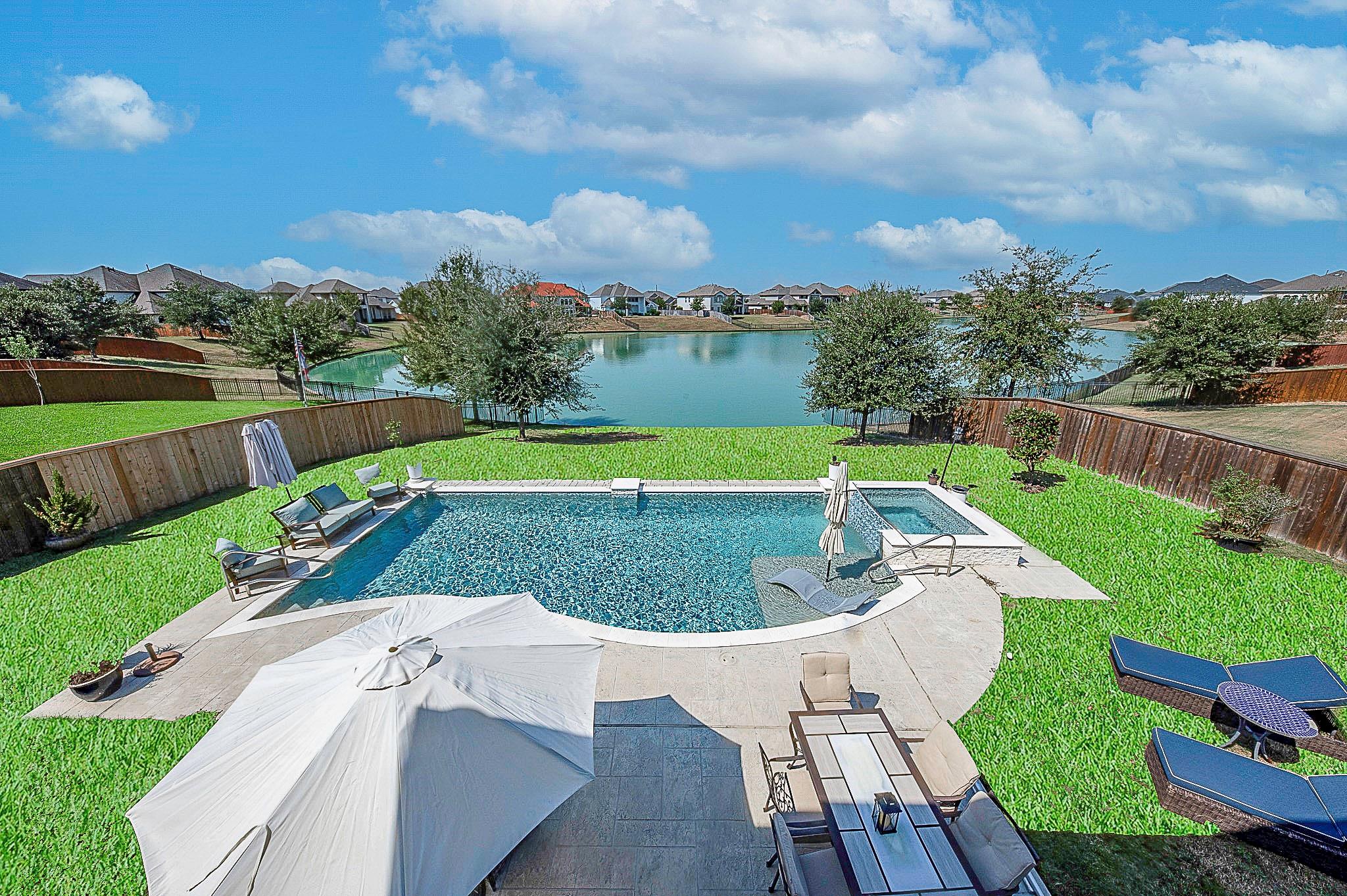 This grand two-story home offers breathtaking lake views. The extended foyer offers a warm welcome, featuring French doors that lead to a private home office and a formal dining room. The island kitchen seamlessly opens to a spacious living room with soaring ceilings, while the bright breakfast area is filled with natural light from numerous windows. The main level features a luxurious owners suite with a seating room and a junior en suite bedroom with a private bath. Upstairs, discover three generously sized guest bedrooms and two full bathrooms, along with a cozy office nook, media room and a spacious game room complete with a dry bar. Youll also find a versatile bonus room that leads out to the expansive balcony overlooking the lakeview. The backyard is an entertainer’s dream, complete with a covered patio, grilling station, basketball court and a heated pool and spa. Don’t miss your opportunity to make this stunning lakeview retreat your home schedule your private showing today!