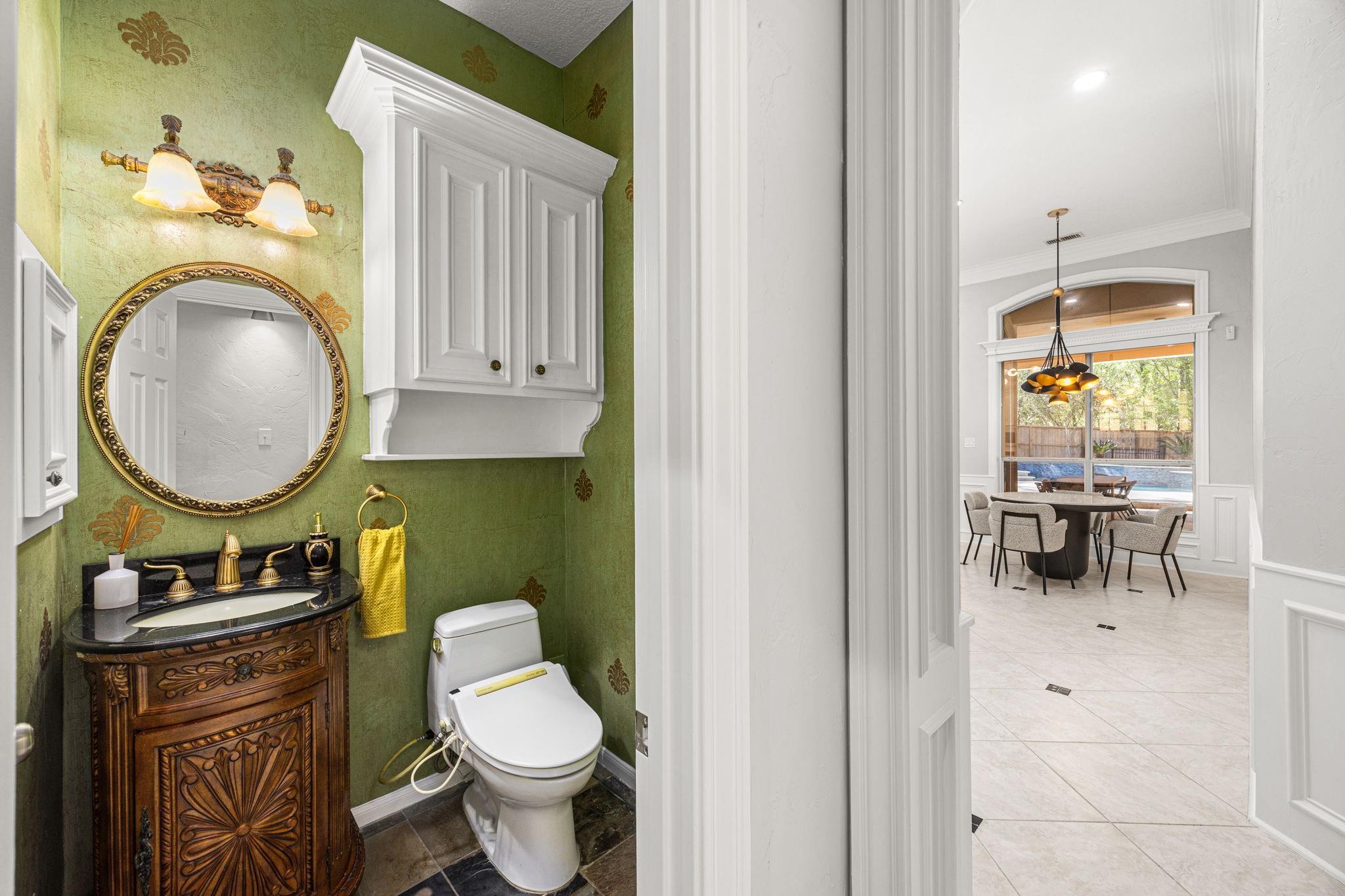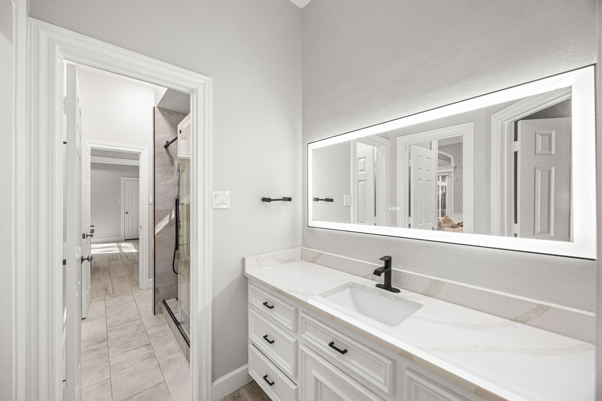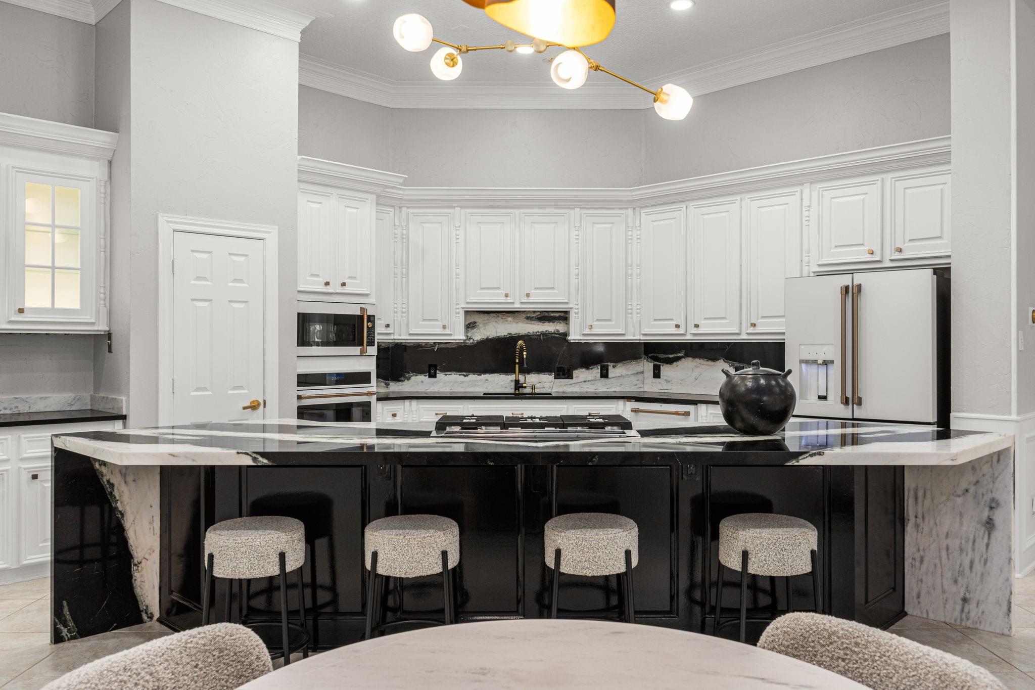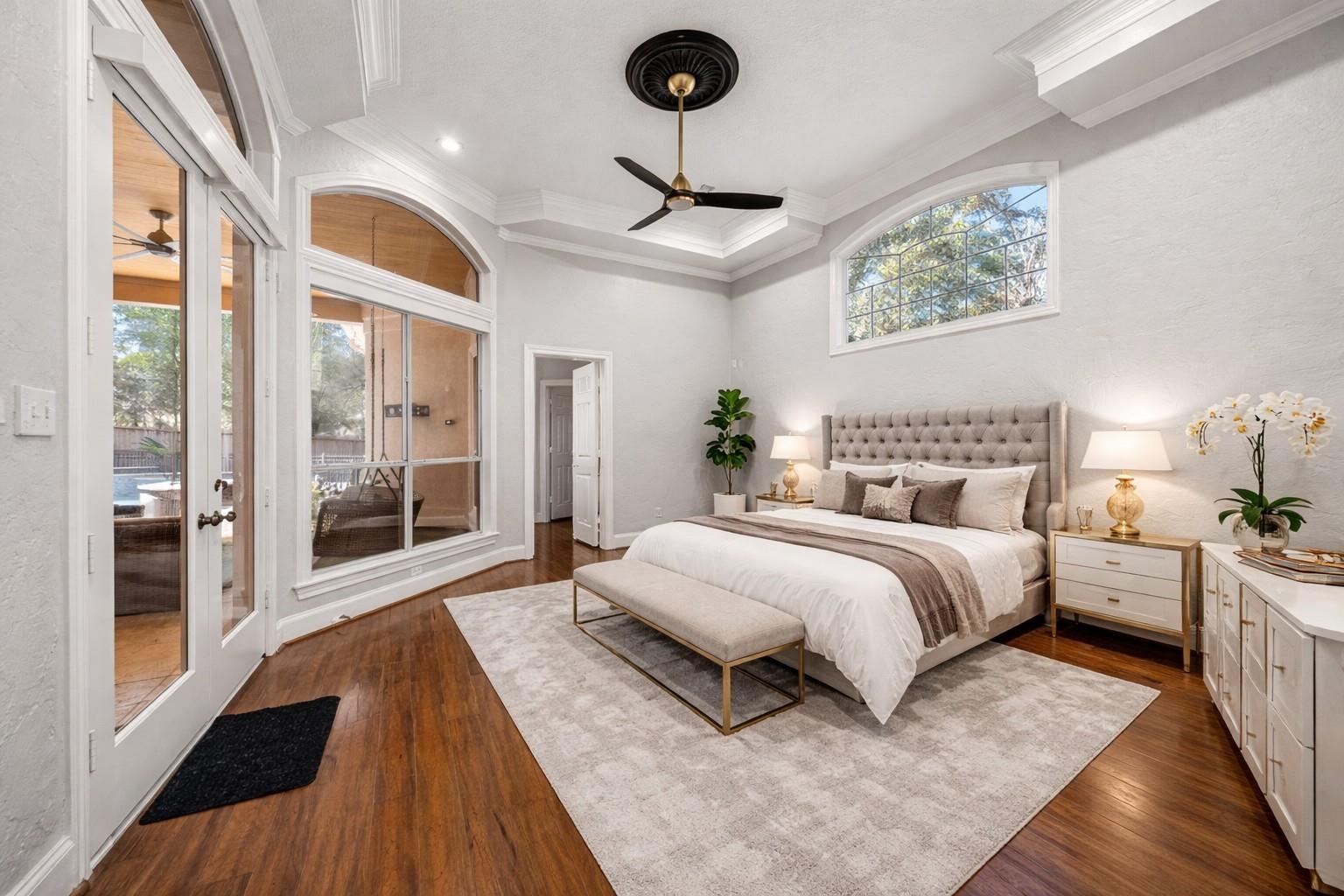 Completely remodeled custom home in Cochrans Crossing! Located in the heart of The Woodlands, this home features a brand new roof and gutters, 2 new Trane a/c units, 2 new water heaters, a new whole-house water softener and filtration system, all new engineered wood floors, new interior doors, designer light fixtures, sky-high ceilings, all new soft-close cabinetry and drawers, a 3-car garage w/epoxy floor and porte-cochere, and much more! Both formals open to one another, with a marble fireplace and coffered ceiling; the study is stunning with custom built-ins and faces the front of the home. Spectacular open kitchen with Taj Mahal leathered counters, a huge island, all new appliances (fridge included), a pot filler, and a warming drawer. Primary bedroom suite down with customized closet and breathtaking bath; 3 bedrooms with 2 remodeled baths and game room up with beverage fridge. The screened-in porch with a new summer kitchen overlooks the beautiful pool.