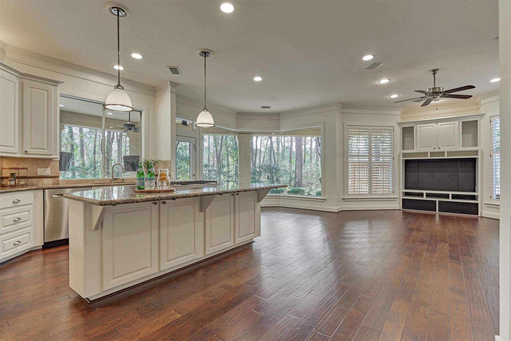A rare find in Woodlands Waterway! This 3 bed/3.5 bath fabulous residence features all the rooms youd need in a home, but in a low-maintenance condo. Painted reclaimed wood floors, decorative brick, and a Savant system for lighting, shades, and music. The kitchen is the heart of this home, pairing high-end finishes with thoughtful functionality, offering an ideal setting for everyday living and hosting. With 3 quartz islands, a Blue Star 6-burner gas range, soft-close cabinetry and drawers, theres room for many chefs! The living/dining/game room and kitchen are open to one another, with panoramic views through the enormous windows. The primary suite is tucked away, with 2 huge walk-in closets and an elegant bath. Study with pocket doors; media room with projector and screen is located by the 2 large guest suites and 2nd game room; 6 parking spaces & additional storage. Amenities include a pool & spa, grilling area & key FOB building access. Walk to endless restaurants & shops in this lock-and-leave location!