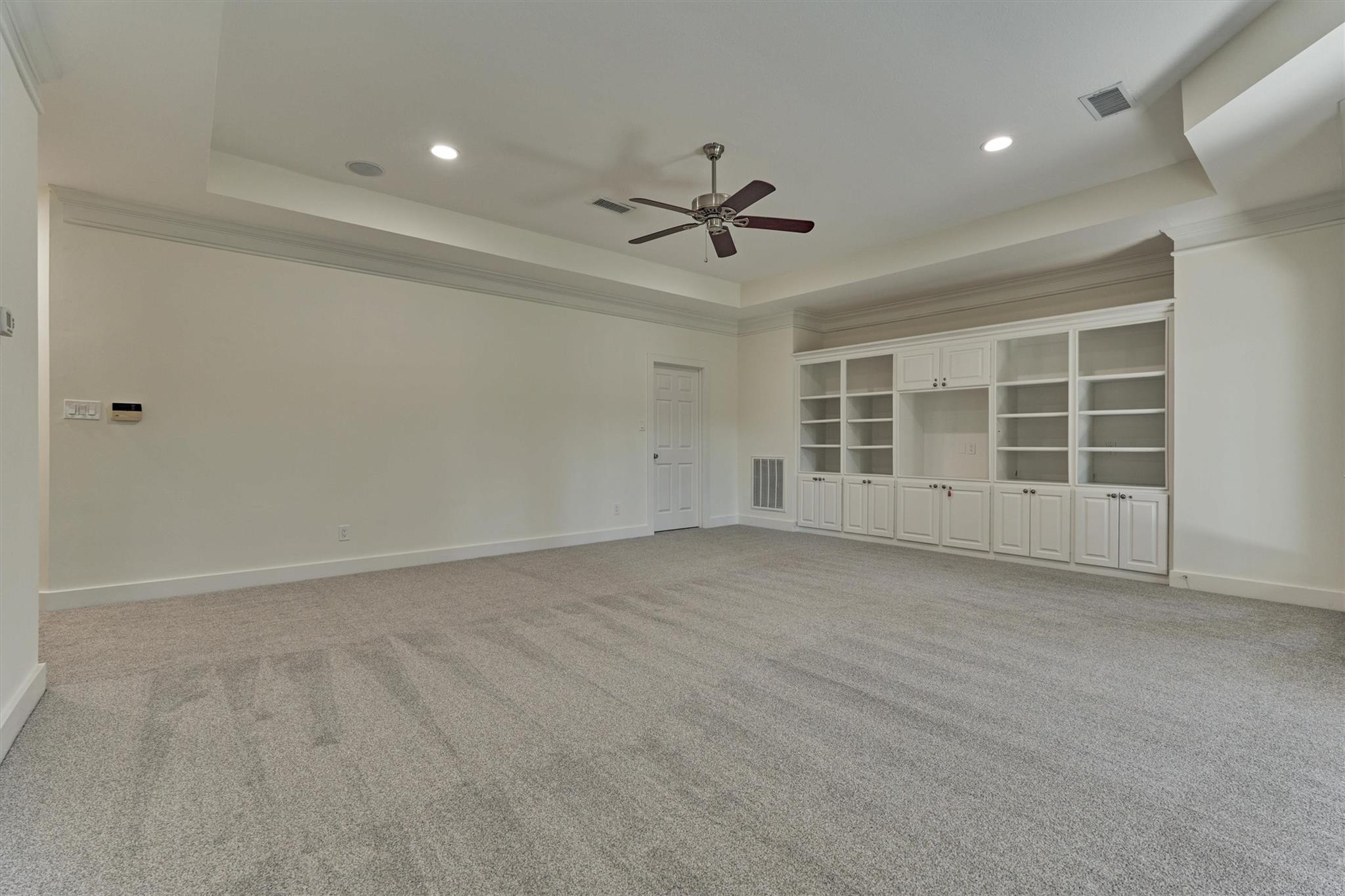 Meticulously maintained custom home on a .80-acre lot in prestigious Grogans Point with no rear neighbors! Located at the front of the Woodlands & close to I-45, shops & fine dining at Market Street and Woodlands Waterway, and zoned to exemplary schools. This home features an oversized 4-car garage and 2-car porte-cochere, circular drive, 2 Texas basements & 11 walk-in closets for storage! Two-story formal living room with a beautiful fireplace, wood-paneled study, and a formal dining room that can accommodate many guests. The kitchen is the heart of the home with granite counters, a gas cooktop, a breakfast bar with under-cabinet lighting, & it opens to the breakfast and family rooms. Primary bedroom suite with 2 closets and 2 additional bedrooms downstairs. Upstairs youll find 2 more bedrooms, a living room, a bonus room & a game room. The private backyard provides a park-like setting with a beautiful pool and spa, outdoor kitchen, covered patio & plenty of grassy area to play, surrounded by mature shade trees.