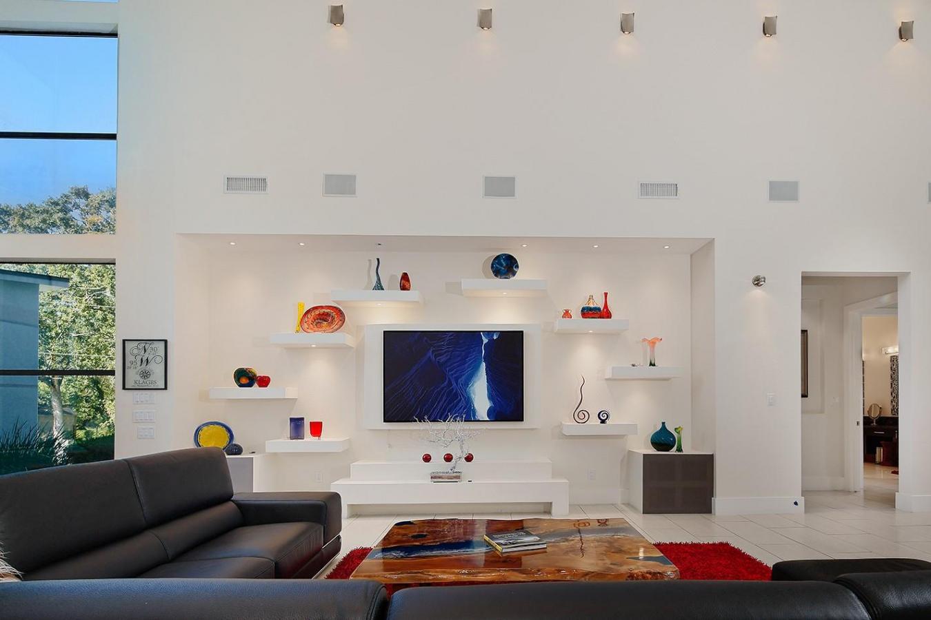 Spectacular contemporary masterpiece in the gated enclave of McDonald Estates! The climate-controlled 7-car capacity garage with 5 bays, 2 car lifts, and epoxy flooring will entice any car enthusiast, and a circular drive ensures plenty of parking. A covered portico leads you to the dramatic entry, where youll find a modern curved staircase, sky-high ceiling heights, enormous windows, a Control4 home automation system, hardwood and tile flooring, incredible light fixtures, and an open-concept space that lives like a 1-story. The sleek island kitchen with breakfast bar, Thermador gas cooktop, dual ovens, built-in fridge, and auxiliary prep space for catering overlooks the family room with floating shelves and views of the private backyard. Home theater with 120" screen and Sony projector, fully equipped gym, private study, owners retreat and 2nd bedroom suite downstairs, two bedrooms up, and backyard oasis featuring a stunning pool, spa, and outdoor kitchen with a canopy of trees as the backdrop.