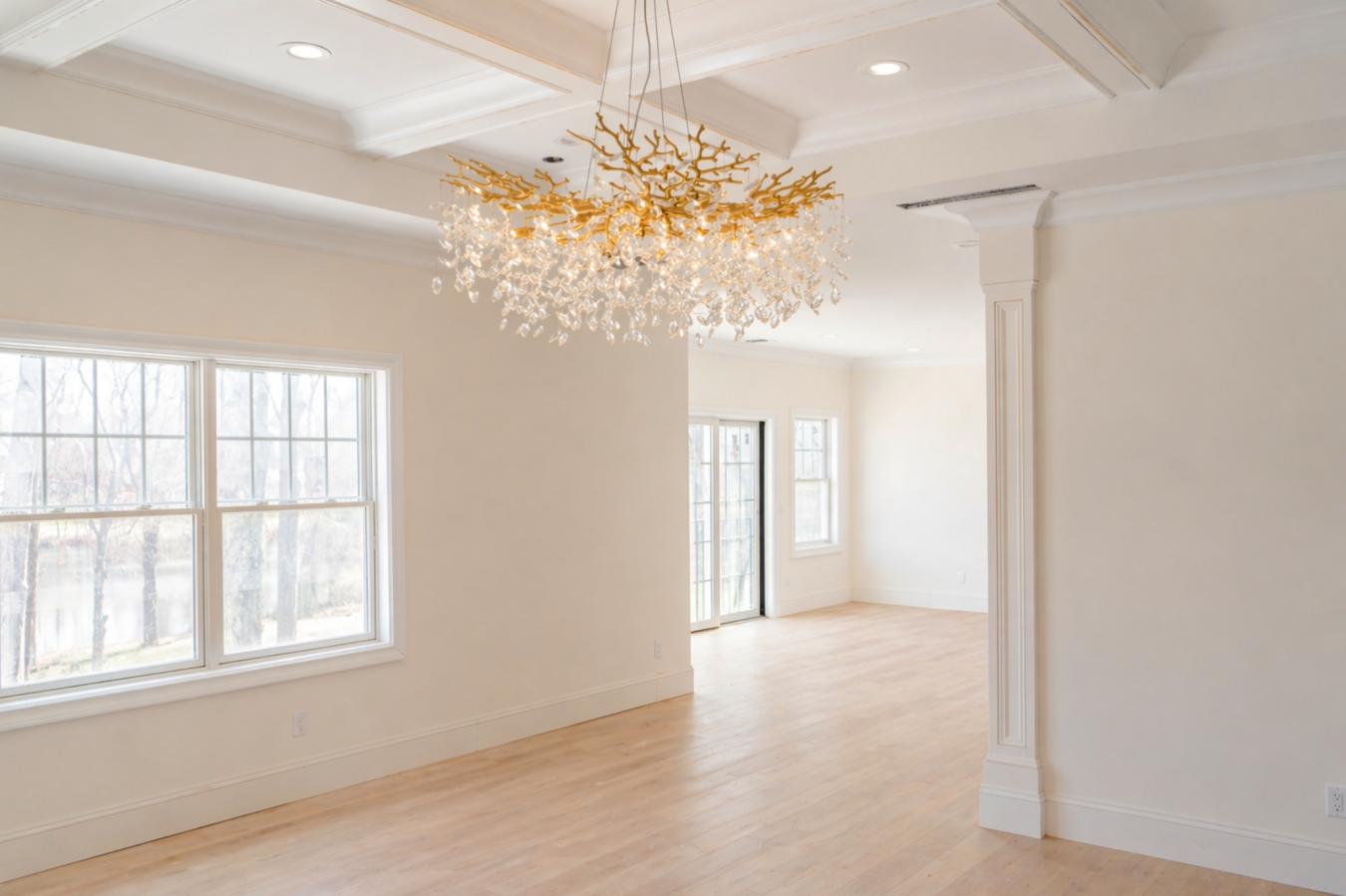 Set on a quiet dead-end street in Franklin Lakes, this fully renovated colonial offers privacy, scale, and standout design. A double French door entry opens to a welcoming foyer that leads into a true great room with double-height ceilings, exposed beams, and a full brick wood-burning fireplace wall.
