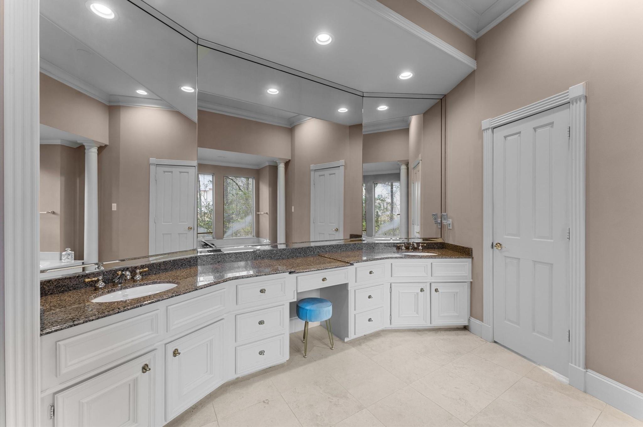 Luxury Single-story on a private ½-acre with pool, spa, and 5-car garage in a quiet friendly community. This 4 bed/3.5 bath home offers flexible options for two primary suites, a guest suite, or multi-generational living. The chef’s kitchen WOWS with built-in Dacor column refrigerator & freezer, Thermodor wine fridge, 36 GE Cafe gas range, wall oven, 10 island, and new zellige backsplash. Entertain effortlessly in the open-concept family, kitchen, & breakfast areas, or work intentionally in the private home office with French doors. Outdoors, enjoy resort style living w/ a covered patio plumbed for gas, saltwater pool & hot tub (with new equipment in 2024), a large fenced backyard & no back neighbors. The detached 2-car garage (currently a gym) joins an attached 3-car garage behind an automatic gate. Generac generator, low taxes, no flooding, Conroe ISD schools & close to I-45 & The Woodlands amenities. Quiet, friendly community offers nature trail & parks for active lifestyles.