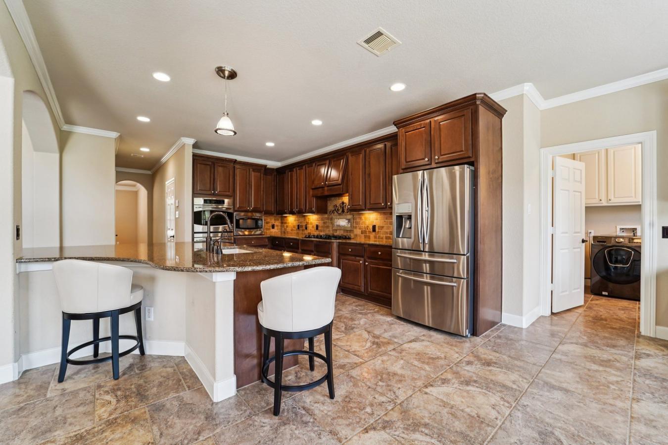 Luxury Single-story on a private ½-acre with pool, spa, and 5-car garage in a quiet friendly community. This 4 bed/3.5 bath home offers flexible options for two primary suites, a guest suite, or multi-generational living. The chef’s kitchen WOWS with built-in Dacor column refrigerator & freezer, Thermodor wine fridge, 36 GE Cafe gas range, wall oven, 10 island, and new zellige backsplash.