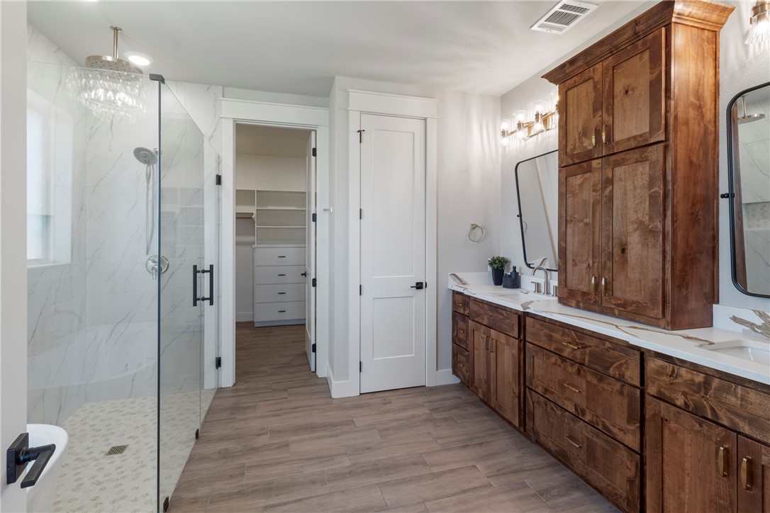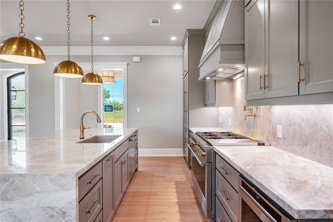 Welcome to 4605 River Valley Drive in the sought-after Greenbrier subdivision—this is the kind of home that feels inviting before you even step inside. From the moment you walk through the door, you're met with warm flooring, soft natural light, wider doors, and a living space centered around a beautiful stone fireplace that instantly feels like the heart of the home. The kitchen is designed for real life—granite countertops, a large island for gathering, gas cooktop, built-in oven and microwave, and a walk-in pantry—opening into the breakfast and living areas where conversations carry and memories are made. Just off the main spaces, a private study and formal dining room offer flexibility for quiet mornings, workdays, or hosting. The primary suite is tucked away and truly feels like a retreat, with a spacious bath, soaking tub, separate shower, double vanities, and a walk-in closet that actually works for you. Upstairs, a full bedroom with its own en-suite bath and walk-in closet creates the perfect space for guests or a little extra privacy when you need it. Out back is where this home really settles in—a covered patio with a wood-paneled ceiling, outdoor kitchen setup, and room to unwind or entertain, all overlooking a large, tree-lined yard that gives you space to breathe. Extra wiring installed for a future pool and hot tub. This is the kind of home that feels just as good at the end of the day as it does when you first walk in.