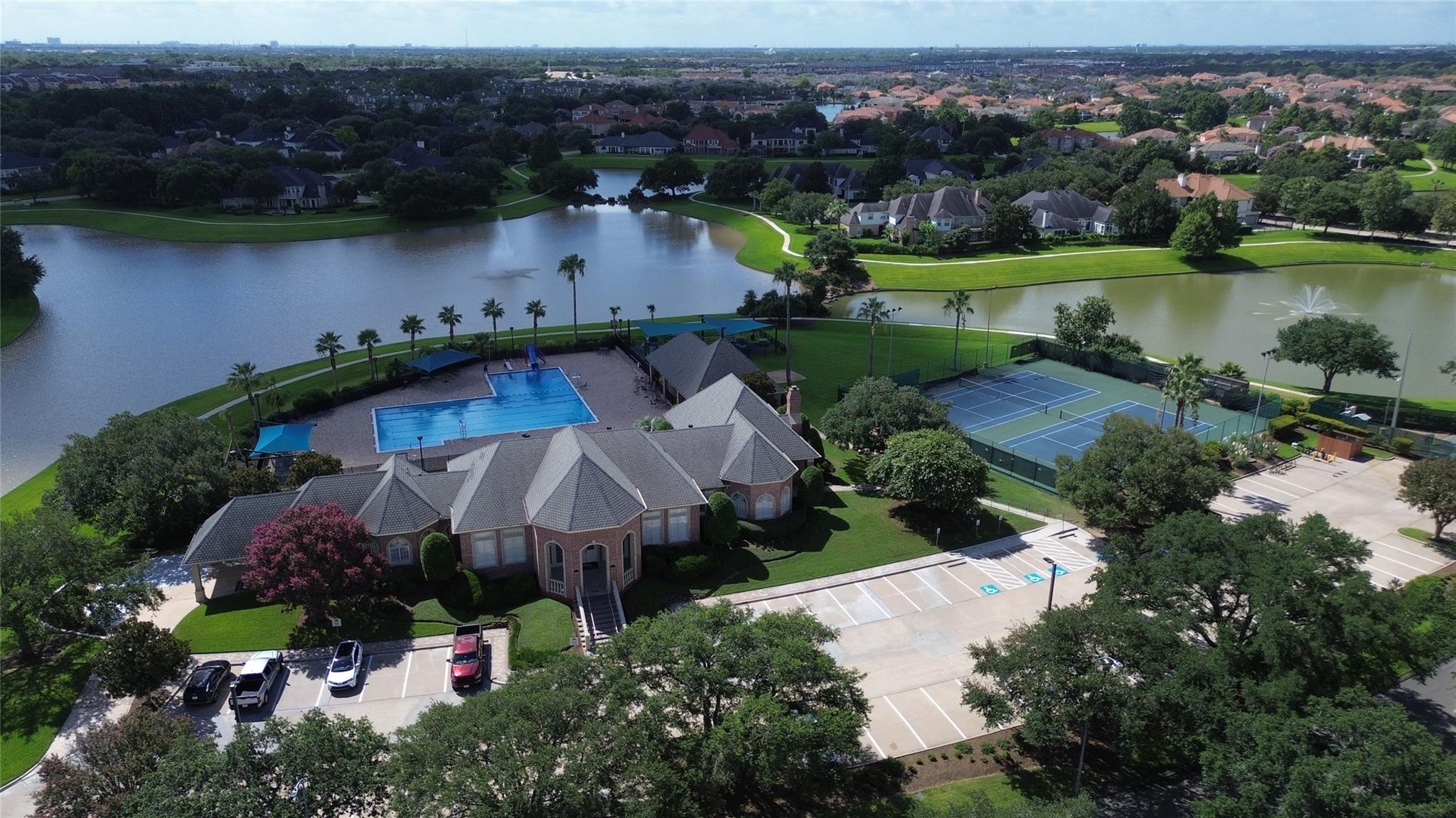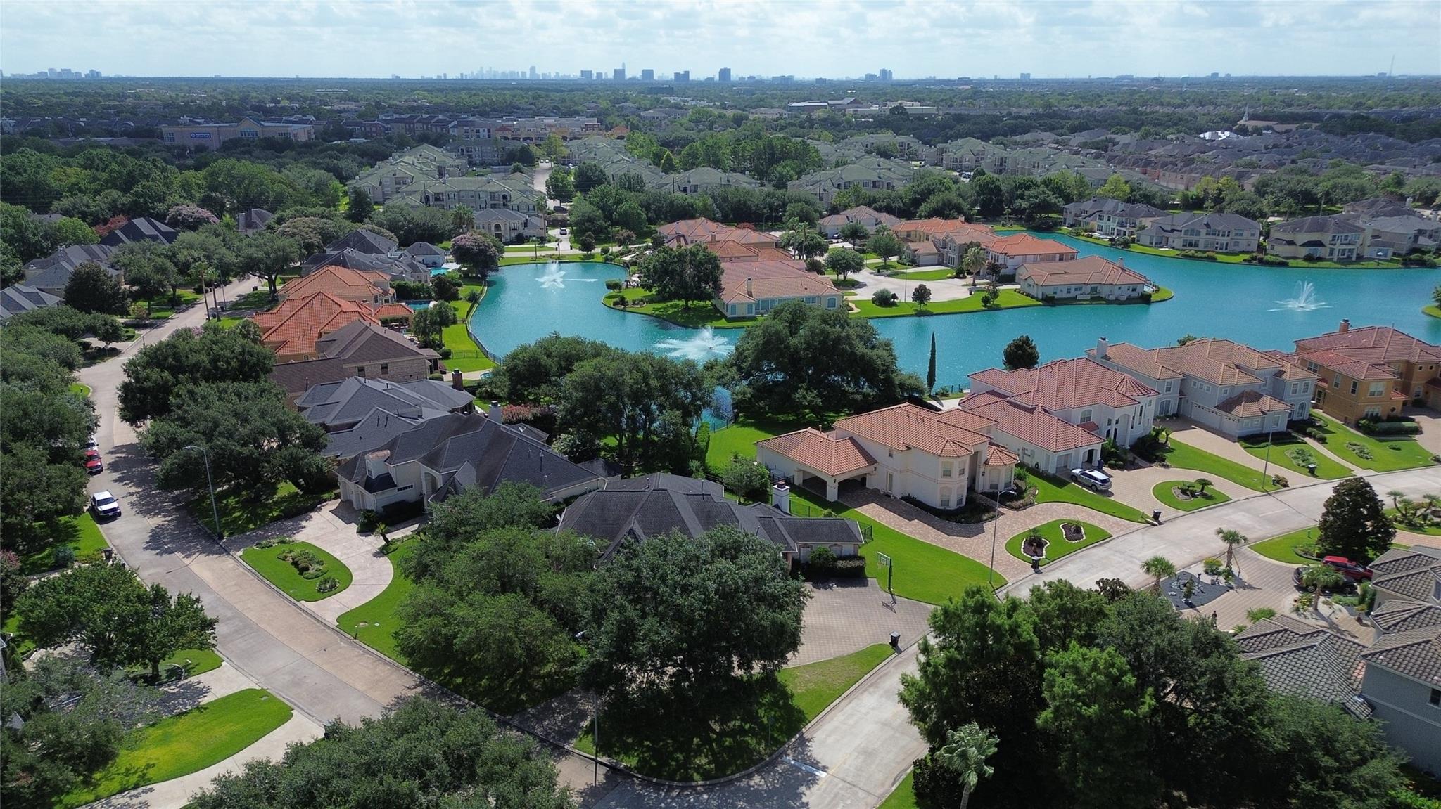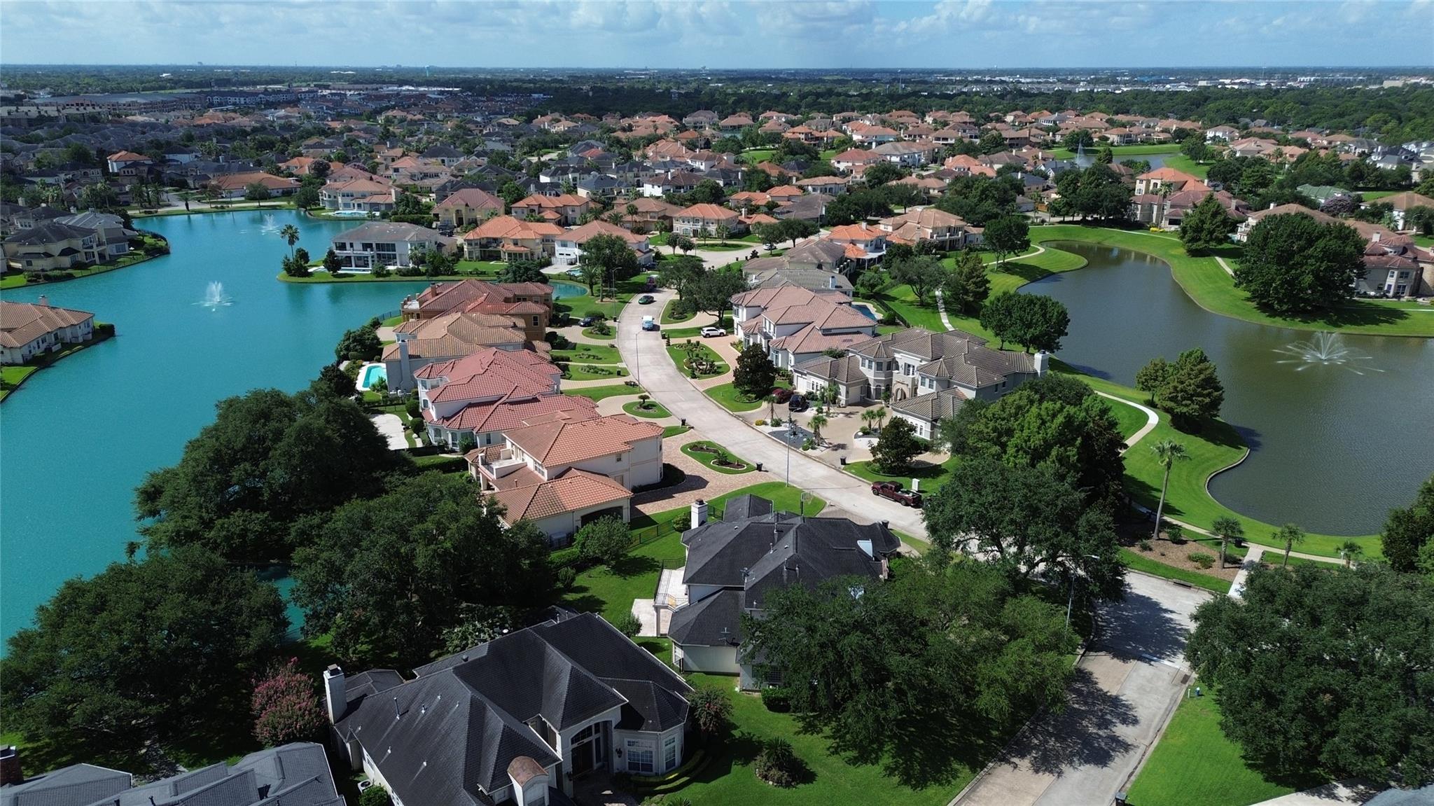 Step into this stunning home in a manned-gated community! Entry through a wide mahogany door leads to a grand rotunda with an impressive chandelier that should please your eyes! Built by Kickerillo, Lakes of Parkway, this luxurious corner-lot residence features a horseshoe driveway and attached three-car garage. The kitchen boasts modern remodeling while maintaining luxury. Inside, find a Home Office/study, formal living and dining rooms, a family room opening to the kitchen and backyard with lake views. With five bedrooms including a ground-floor primary suite and secondary bedroom, upstairs offers three bedrooms, two baths, and a spacious game room with balcony with a serene view of the lake with fountains! Enjoy landscaped grounds with yards enough for your private Pool. Perfect place for luxury living at its finest, with entertainment in a peaceful, & serene environment & 24/7 patrols.