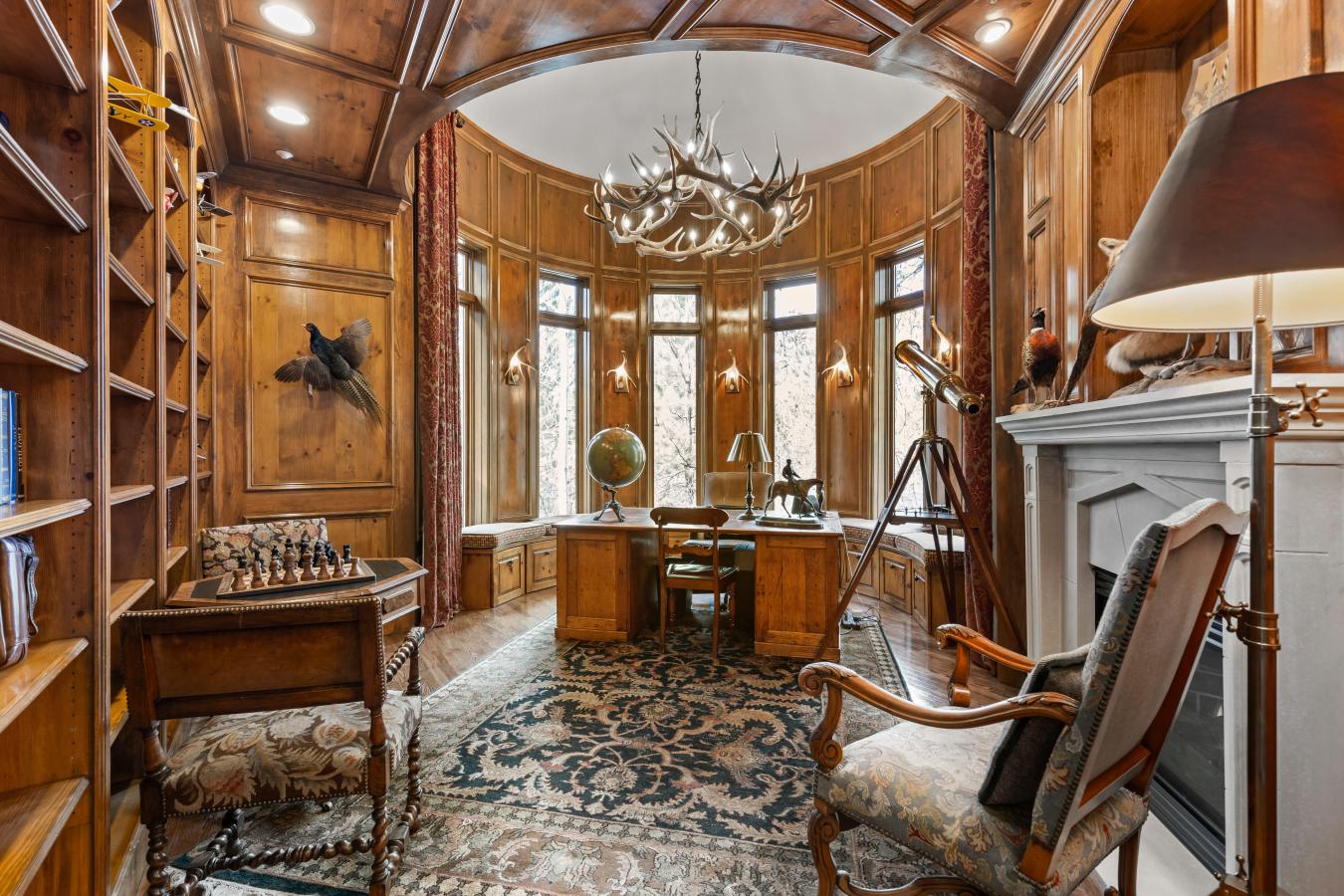 A European cottage quietly hidden among the pines of Castle Pines. Set among mature trees in the gated community of The Village at Castle Pines, this 8,920 sq ft European-inspired estate blends architectural character, privacy, and refined Colorado living in one of the most sought-after neighborhoods in Castle Pines and the greater Castle Rock area. The Library A true standout space, the wood-paneled library features rich timber walls, a fireplace, and its own private bath. With views of the surrounding pines, it evokes the charm of an English countryside study-perfect as an executive office, reading retreat, or quiet sanctuary. The Great Room Soaring beams and a dramatic fireplace anchor the great room, where expansive windows frame woodland views and doors open to the patio and water feature, creating seamless indoor-outdoor living. The Kitchen Designed for gathering, the spacious kitchen offers generous prep space, a cozy sitting area, and an inviting dining nook that flows naturally into the homes main living spaces. Private Retreats The main-level primary suite is tucked away for privacy, while each additional bedroom features its own en-suite bath for comfort and independence. Entertaining Spaces The lower level includes a traditional theater room, guest suite, bar area, billiards space, and climate-controlled wine room. A versatile bonus room above the garage offers space for a studio, craft room, or study. Residents of The Village at Castle Pines enjoy premier amenities, including 24/7 roving security, over 12 miles of scenic trails, tennis and pickleball courts, pools, and a fitness center, making it one of the most desirable gated communities in Castle Pines and Castle Rock. The Village is also home to two Jack Nicklaus-designed private clubs, the exclusive Castle Pines Golf Club and The Country Club at Castle Pines. A rare home where architecture, nature, and privacy live in perfect harmony.