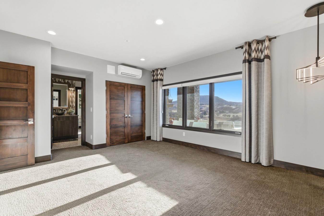 Set deep within the rolling hills of Keene Ranch, this private contemporary estate offers true Colorado luxury without the noise or visibility of I-25. Situated on 7.64 acres with sweeping mountain and valley views, 3219 Castle Butte Drive delivers serenity, space, and sophisticated design just minutes from Castle Rock. Designed for effortless main-level living with a walkout lower level, this nearly 6,000-square-foot ranch-style home is ideal for aging in place, multi-generational living, or long-term guests. The open-concept main floor is filled with natural light and anchored by a dramatic great room featuring vaulted ceilings, a striking stone fireplace, and expansive windows framing breathtaking views. The chefs kitchen blends form and function with high-end appliances, oversized island, custom cabinetry, and seamless flow to the dining area and covered deck with a built-in grill, creating an exceptional indoor-outdoor entertaining experience. Throughout the home, automated, app-connected window coverings, whole-house smart lighting, and fully integrated TVs (all included) deliver modern convenience at every turn. The primary suite is a private retreat with its own fireplace, spa-inspired bath featuring heated floors, steam shower, soaking tub, and a custom walk-in closet. The fully finished lower level lives like a second residence, offering a spacious family room with fireplace, wet bar, additional bedrooms, remodeled baths, and walkout access to the backyard. Outdoor living is extraordinary. The infinity-edge pool with integrated spa feels as if it spills into the horizon-truly an edge-of-the-world experience-surrounded by multiple decks, patios, fire features, and mature trees for unmatched privacy. Additional highlights include one acre-foot of deeded water rights, a private well, three-car garage, low HOA, and Thrive fiber-optic internet directly to the home, making remote work seamless.