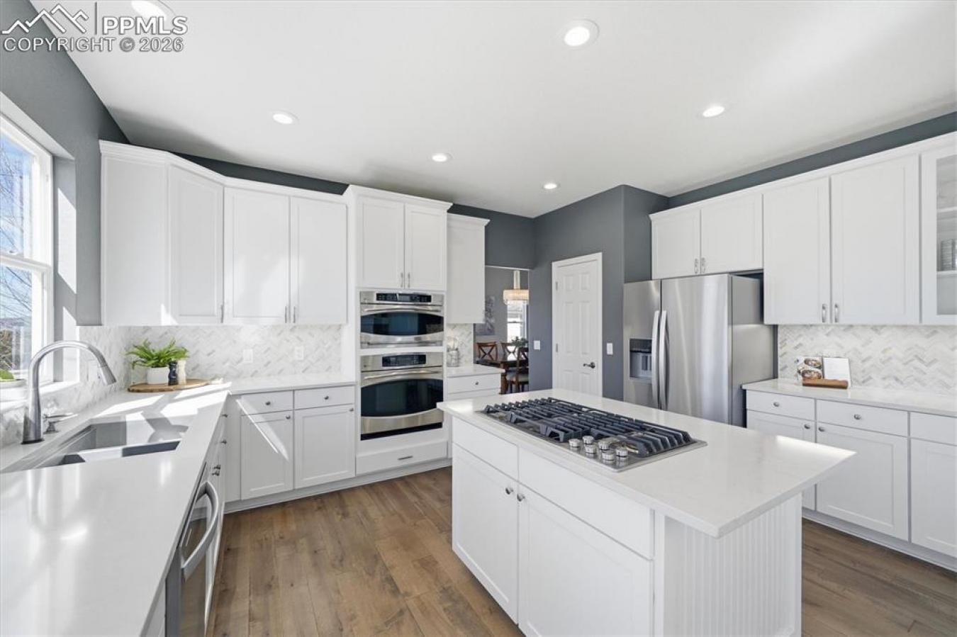 Nestled in the highly sought-after Homestead neighborhood, this impeccably maintained traditional two-story home exudes timeless charm. Positioned at the end of a tranquil cul-de-sac and bordered by open space, the residence boasts a meticulously landscaped yard adorned with mature trees, gardens, and a covered back patio a private oasis for relaxation and outdoor enjoyment. Hot tub is included along with a custom shed in the backyard. The interior reveals a seamless blend of classic elegance and modern updates, featuring four bedrooms on the upper level and a notably functional floorplan. The master suite is a sanctuary unto itself, offering a spacious seating area, a double-sided fireplace, and a lavish master bathroom, creating a haven of comfort and luxury. With its thoughtful design, lush surroundings, and updates, this home epitomizes both sophistication and functionality. The workshop has heat so you enthusiasts can work out there all winter long if you would like.