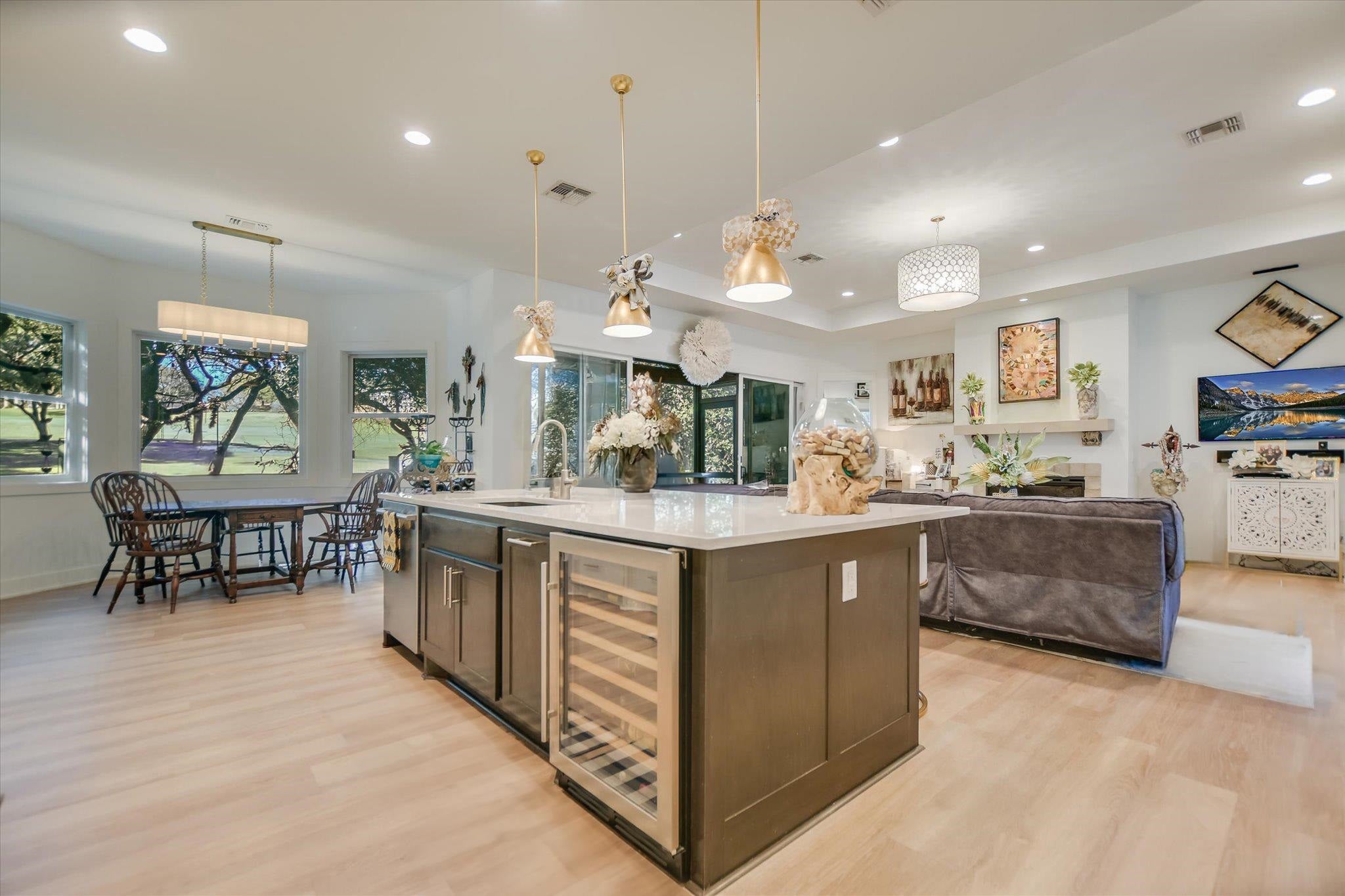 Welcome to refined Hill Country living in the prestigious Golden Bear gated enclave of Summit Rock. This contemporary single-story home blends sophisticated design with effortless comfort, ideal for both everyday living and elegant entertaining.