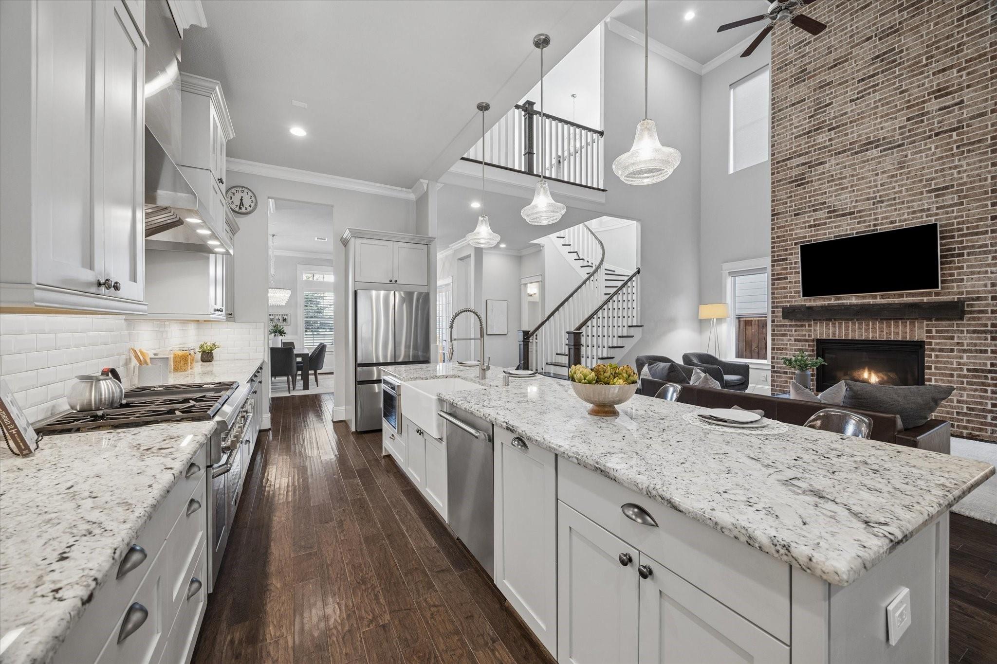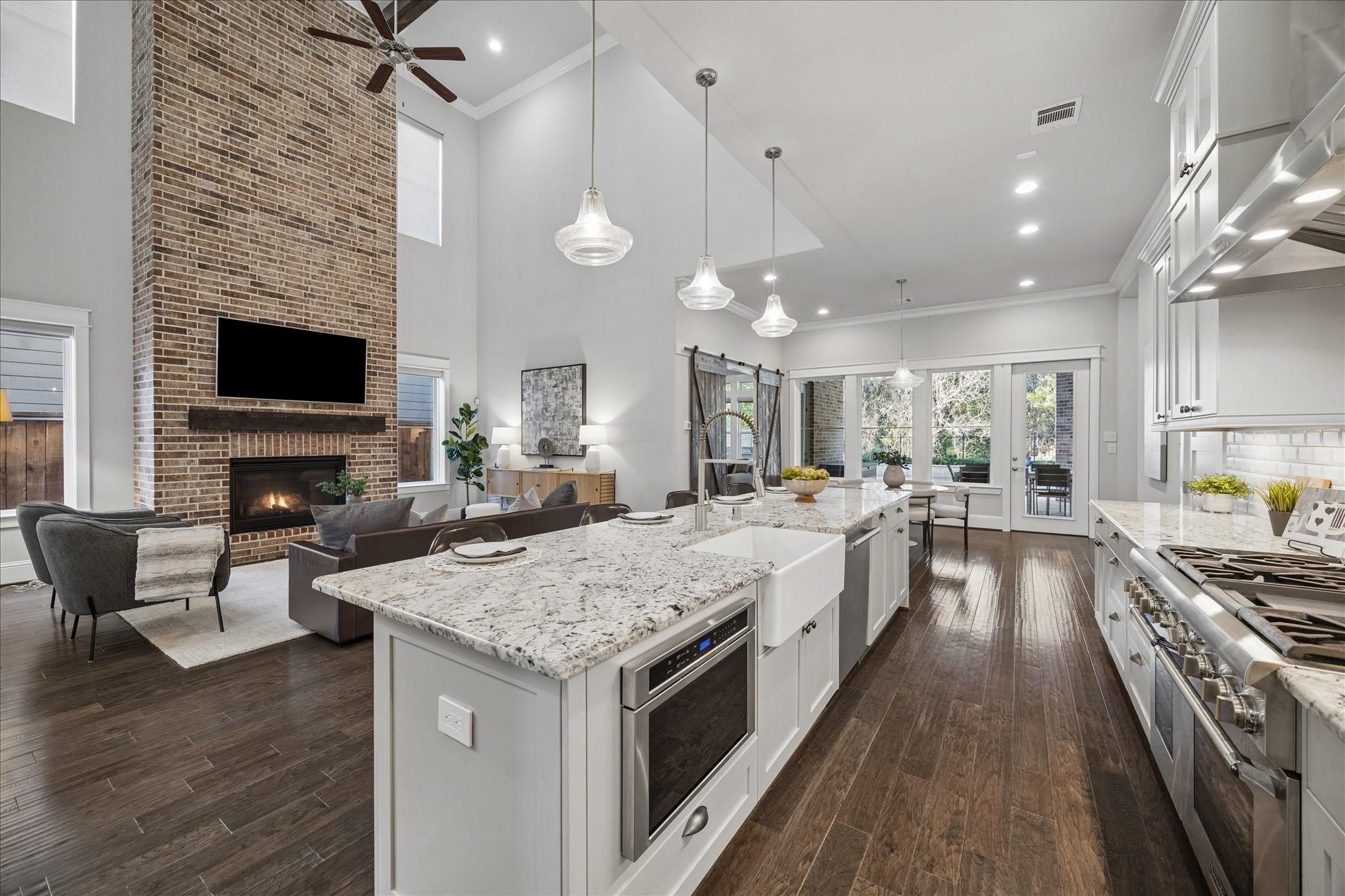 Stunning home in Stillwater, perfectly positioned on lush greenbelt lot with tranquil pond views and exceptional outdoor living area featuring sparkling Pebble Tec pool/spa, summer kitchen, wood-burning fireplace, extensive Travertine decking and spacious covered patio. Welcoming front porch introduces upscale finishes throughout, including hardwood flooring, high ceilings and extensive millwork.